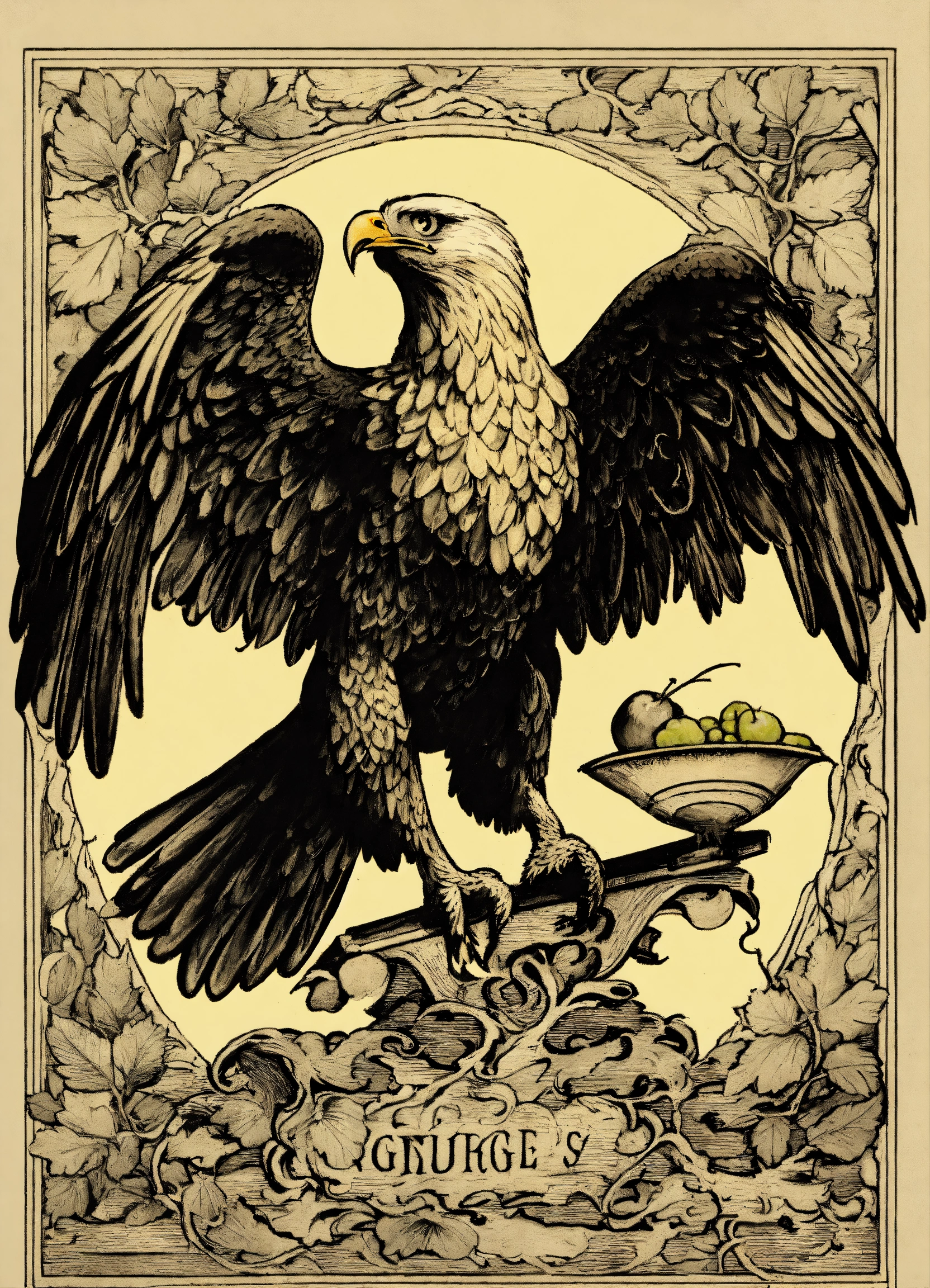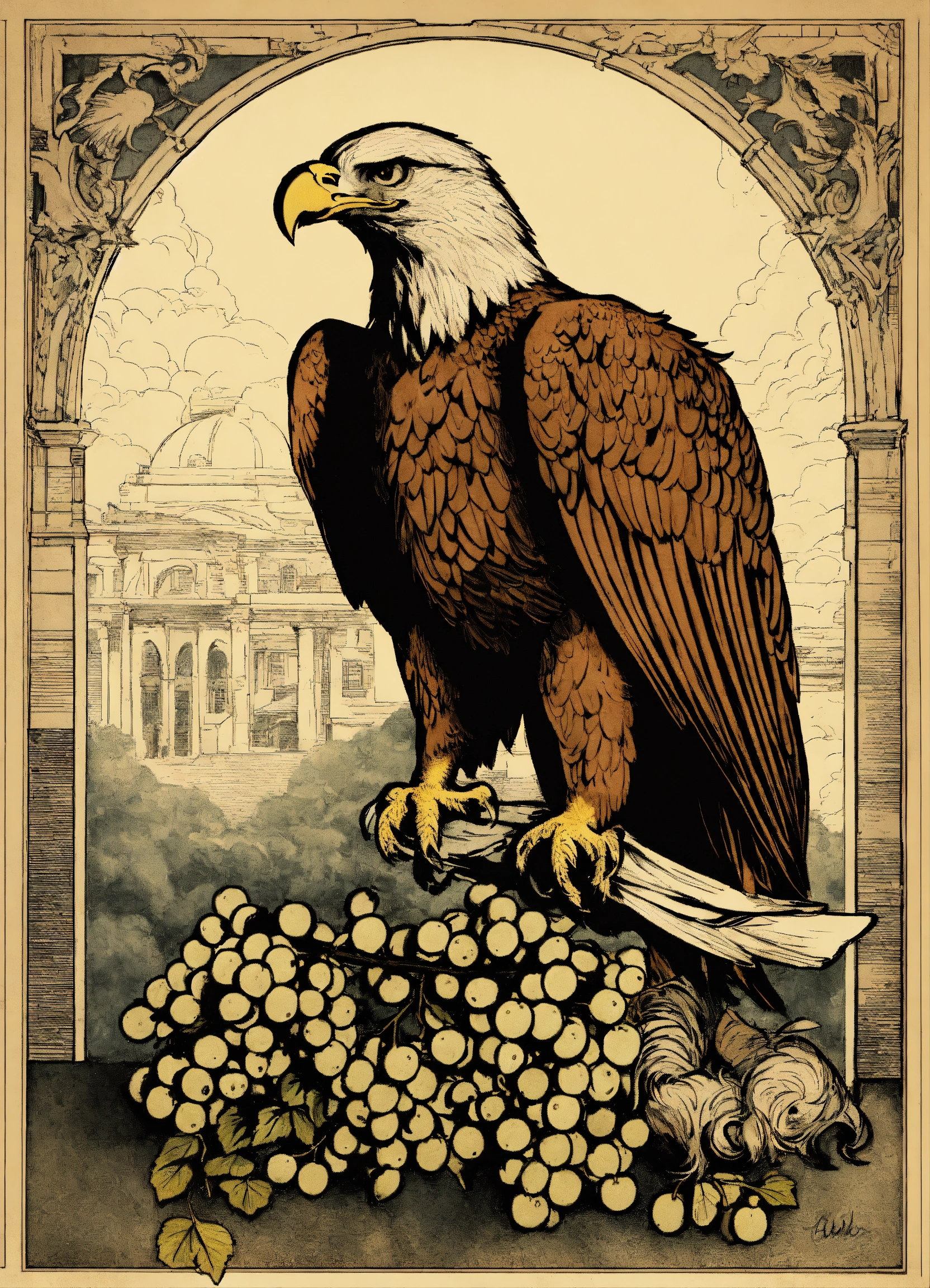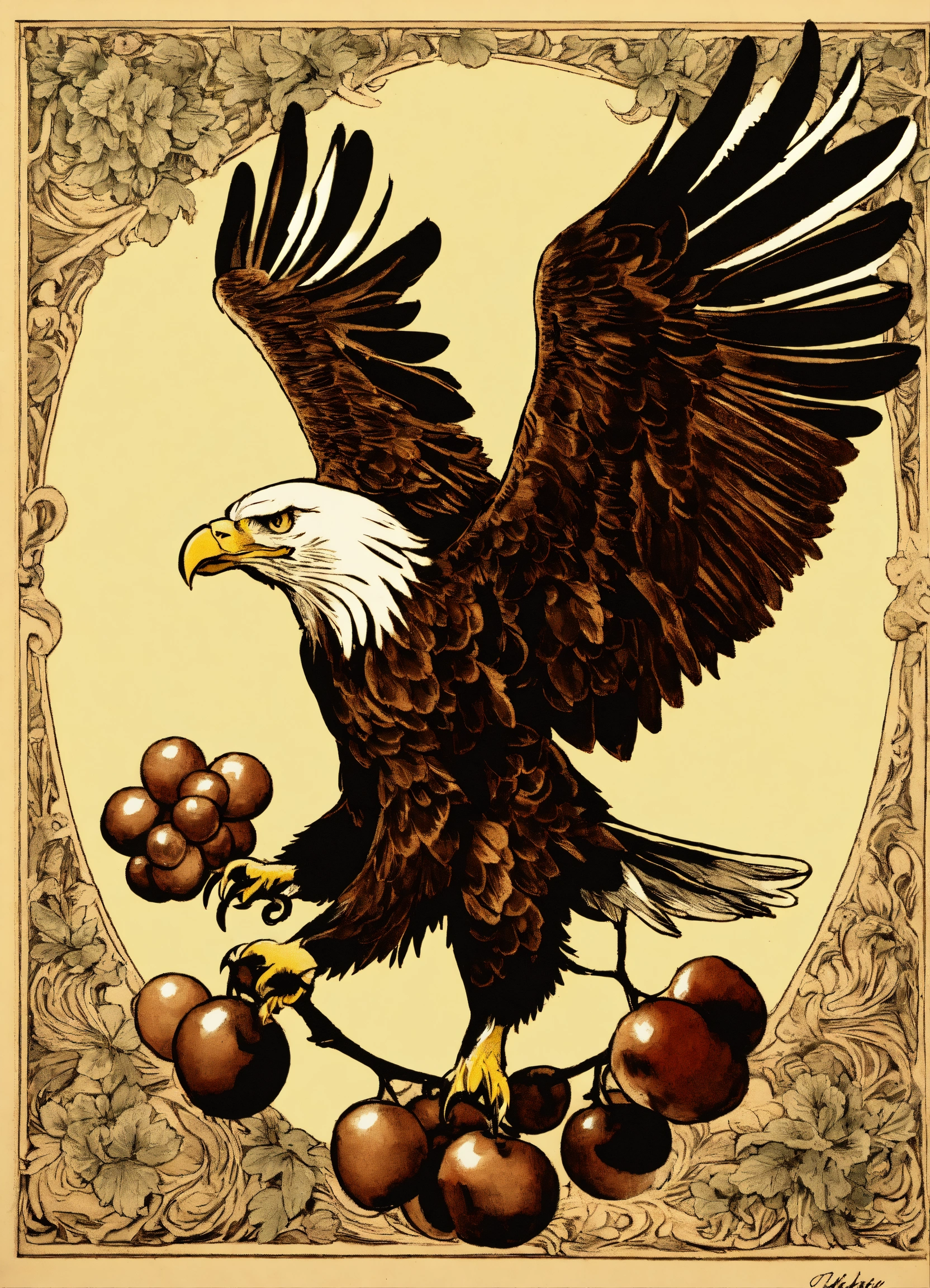 Eagle holding grapes