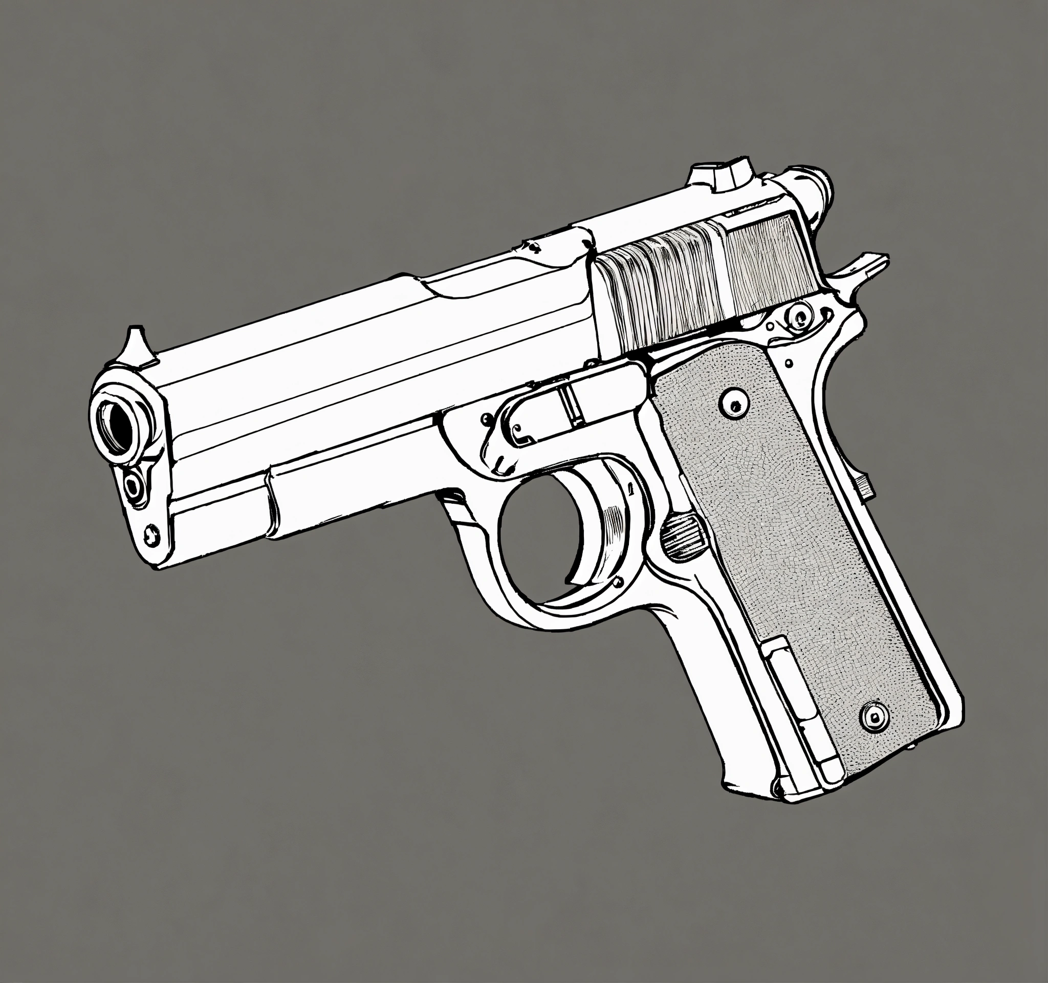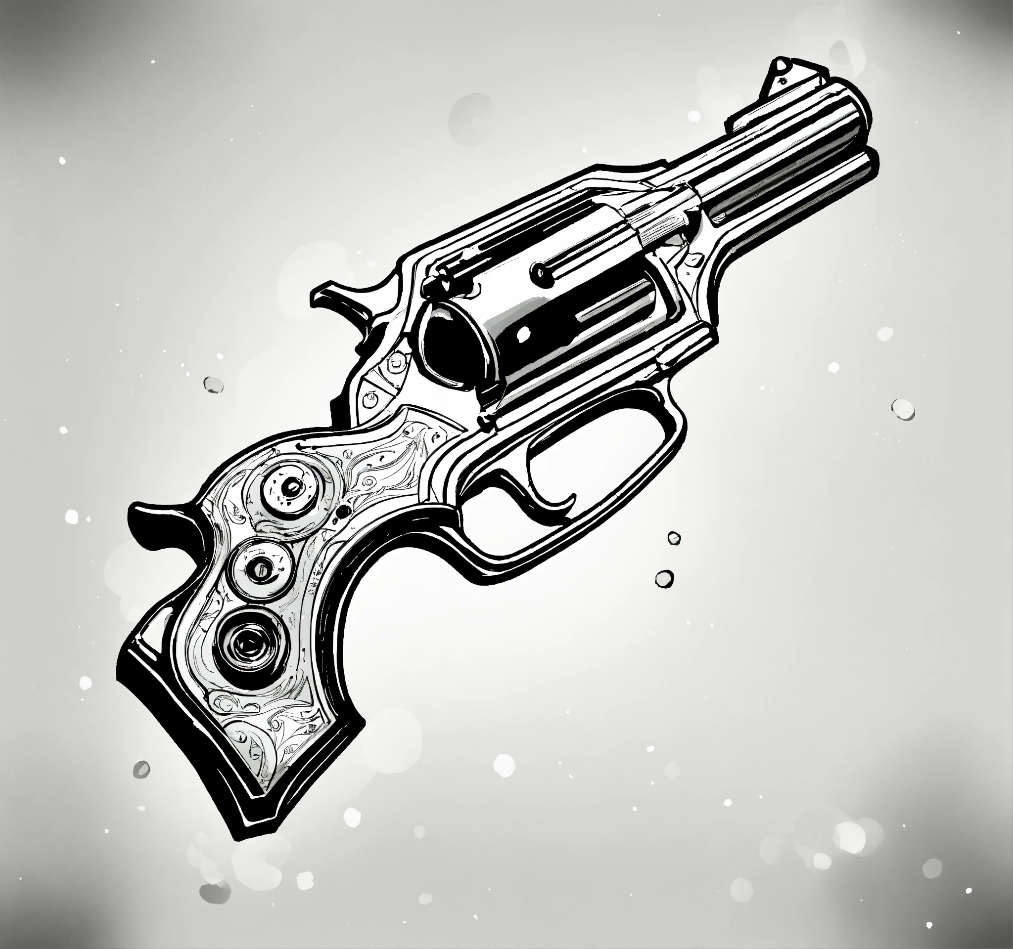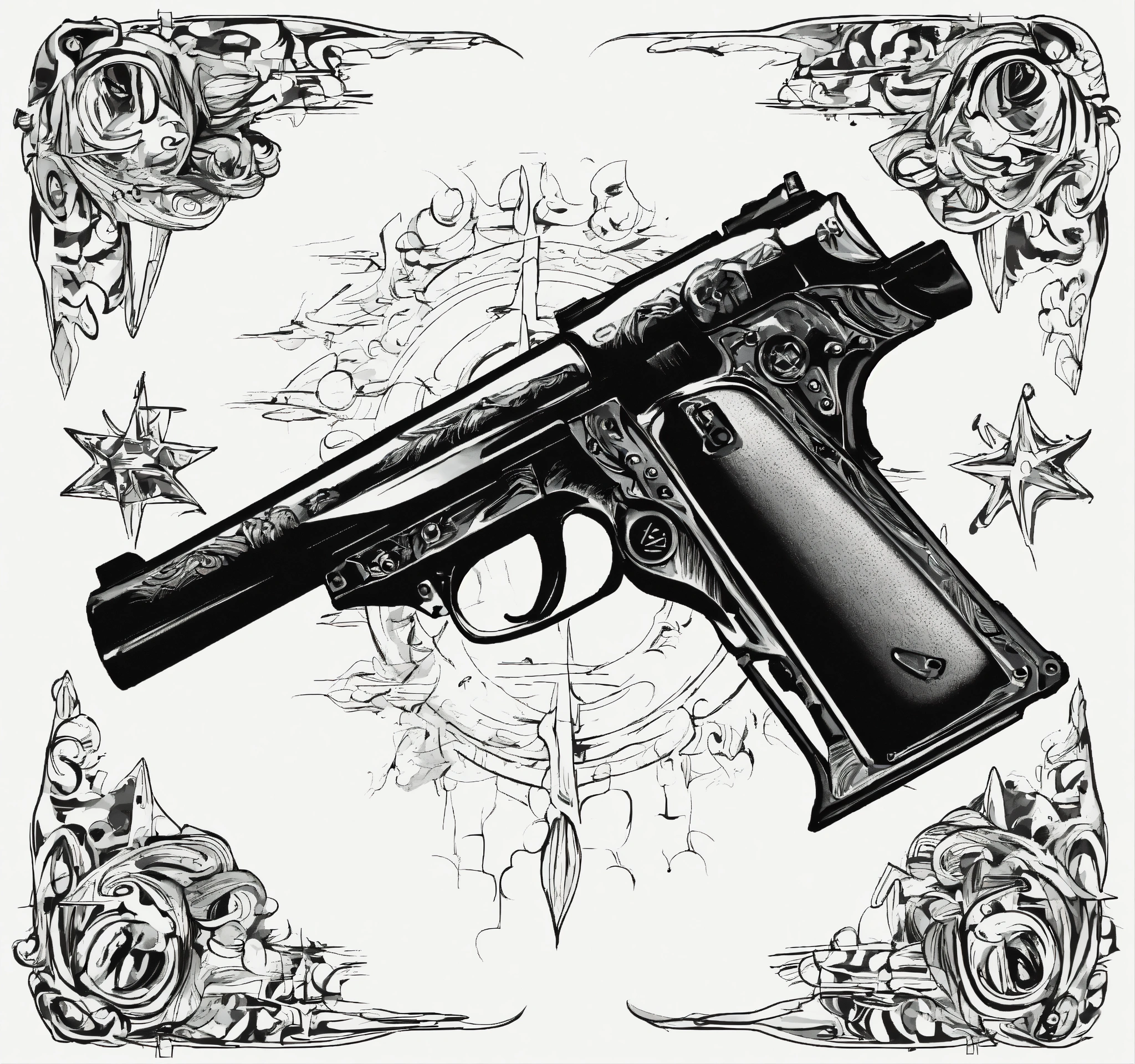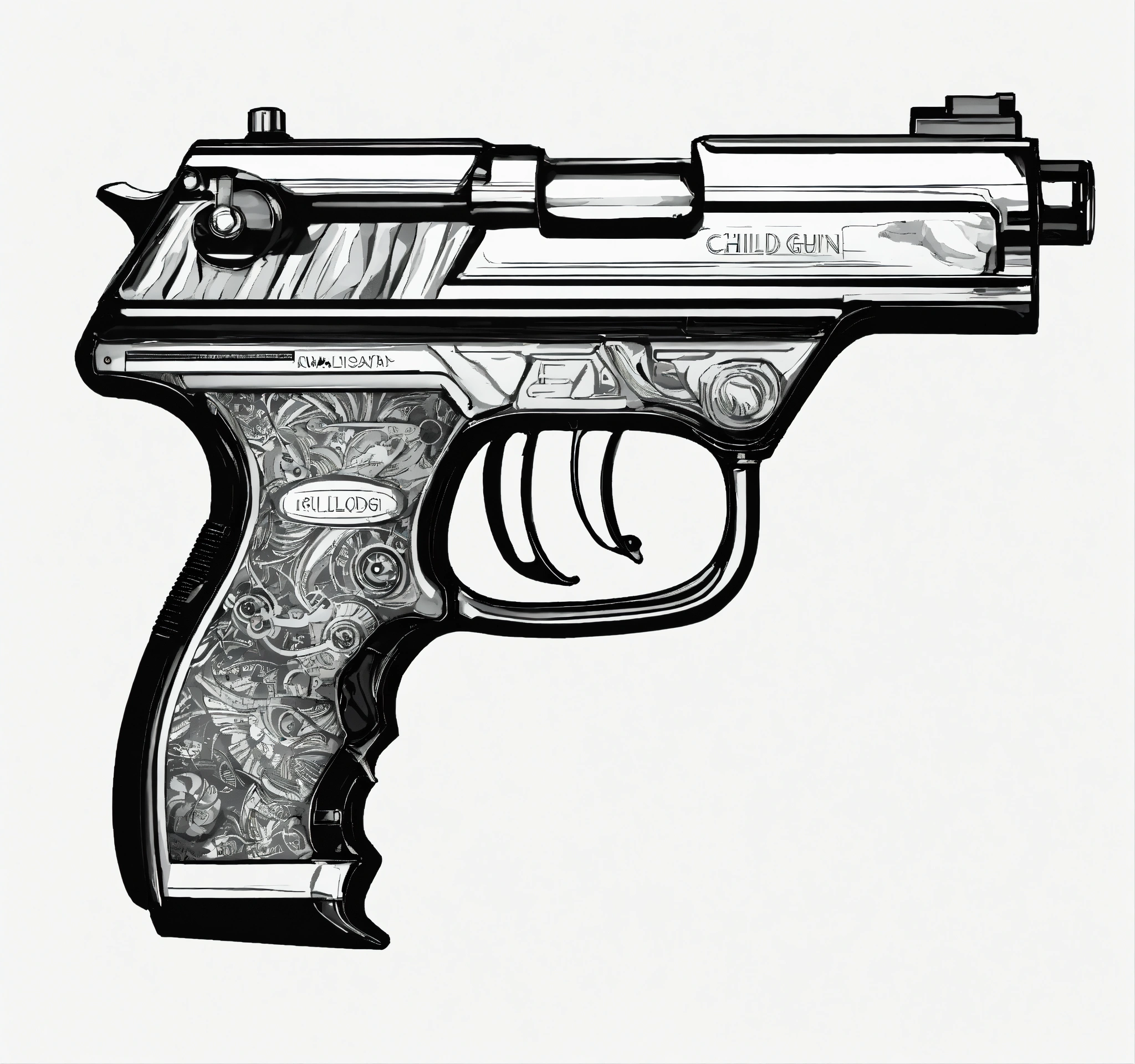 A child gun, black and white, white background, no background, ink fine line art stylized, vector, design for tattoo, ignorant style