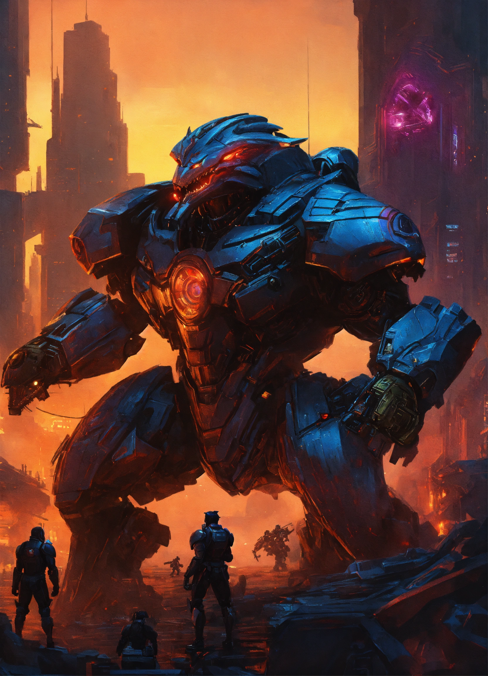 Golem-dragon, hybrid griffin-wolf, cyber werewolves\raven asgardians, thanagarians, dracula, vampire, super athletic cyborg men & women of 60th century dragon-like muscular hulk-buster humanoid body armor in scenes of blade runner mega city scenarios holding 5965 a.d. advanced star wars blasters, laser rifles & ancient h. r. giger, gears of war-like mega guns in a quetzal-like armored streamlined form fighting detailed advanced futuristic civilized back-drop densely or heavily populated worlds of metallic chrome, wolf & raven vampire dragons on land & in space vs rom the space knight, battlestar galactica meta-hybrid cylons vs alien cyborg kaiju, space predators in style of laurie greasley, ghibli, akira, akkadian, atlantis, kryptonian, megatron live movie, tomiyama, gene roddenberry, george lucas, james gilliard, genshin impact, nuke vfx, surreal acrylics, light sabers, 4k, chrome, vibrant dark colors, deviantart, artstation, rendered in highly detailed cinematic studio quality gci