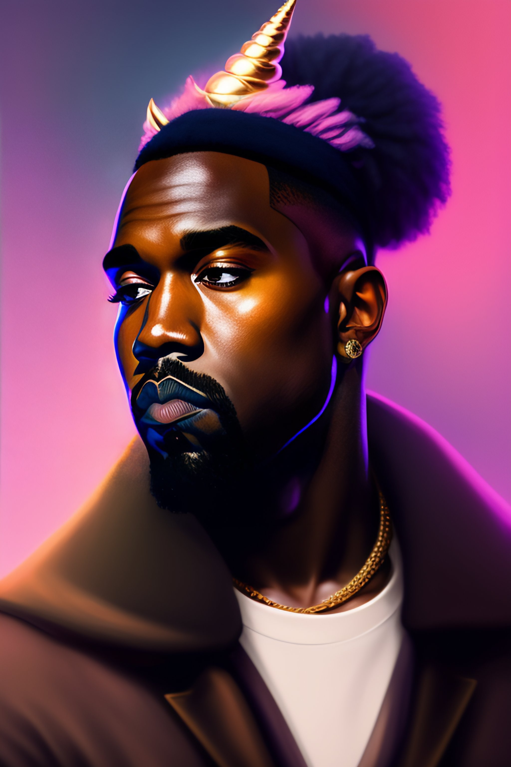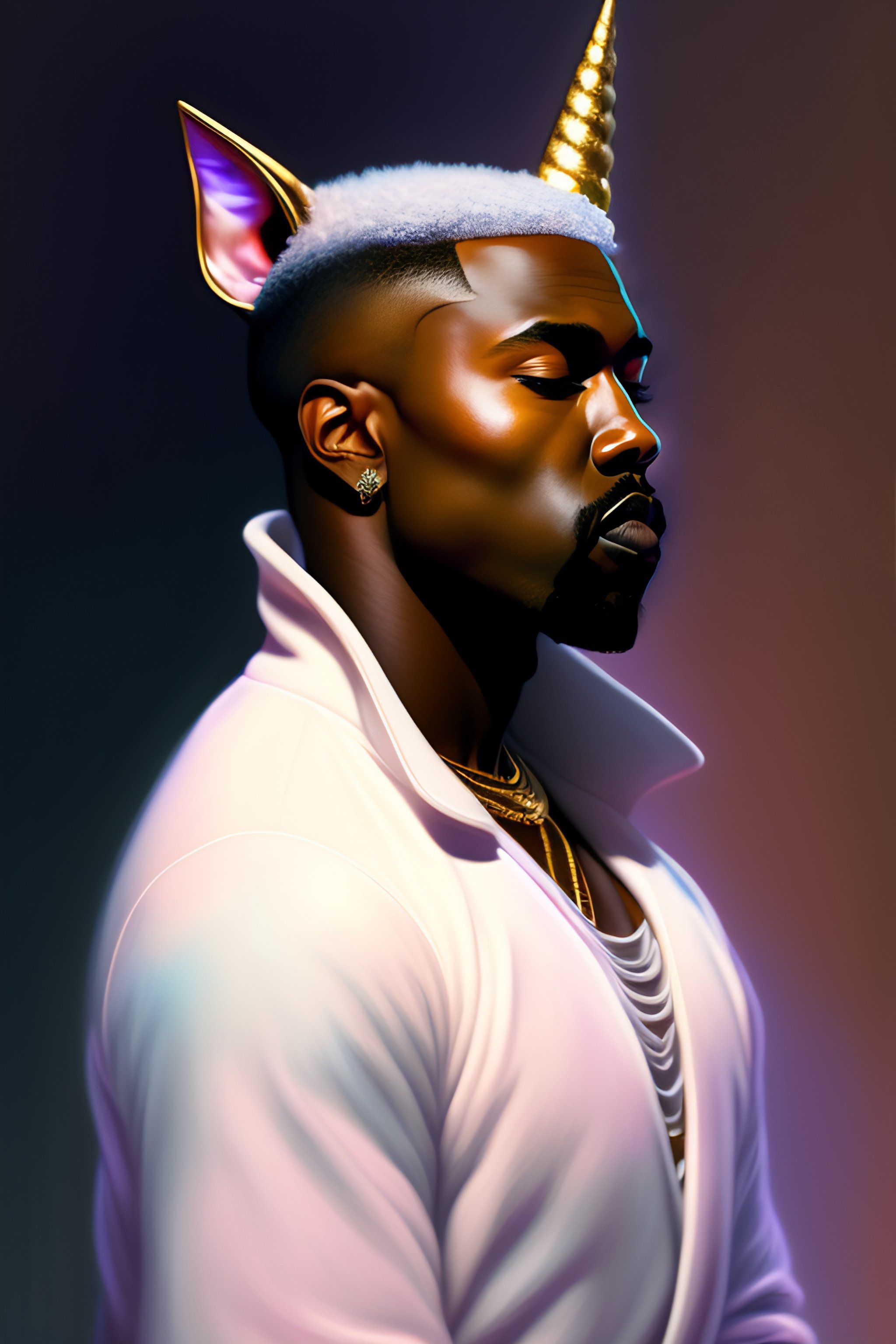 Kanye west as a magic unicorn creature, chibi, anime, flattened, squashed, shaded lighting poster by magali villeneuve, jeremy lipkin and michael garmash, rob rey and kentaro miura style, trending on art station