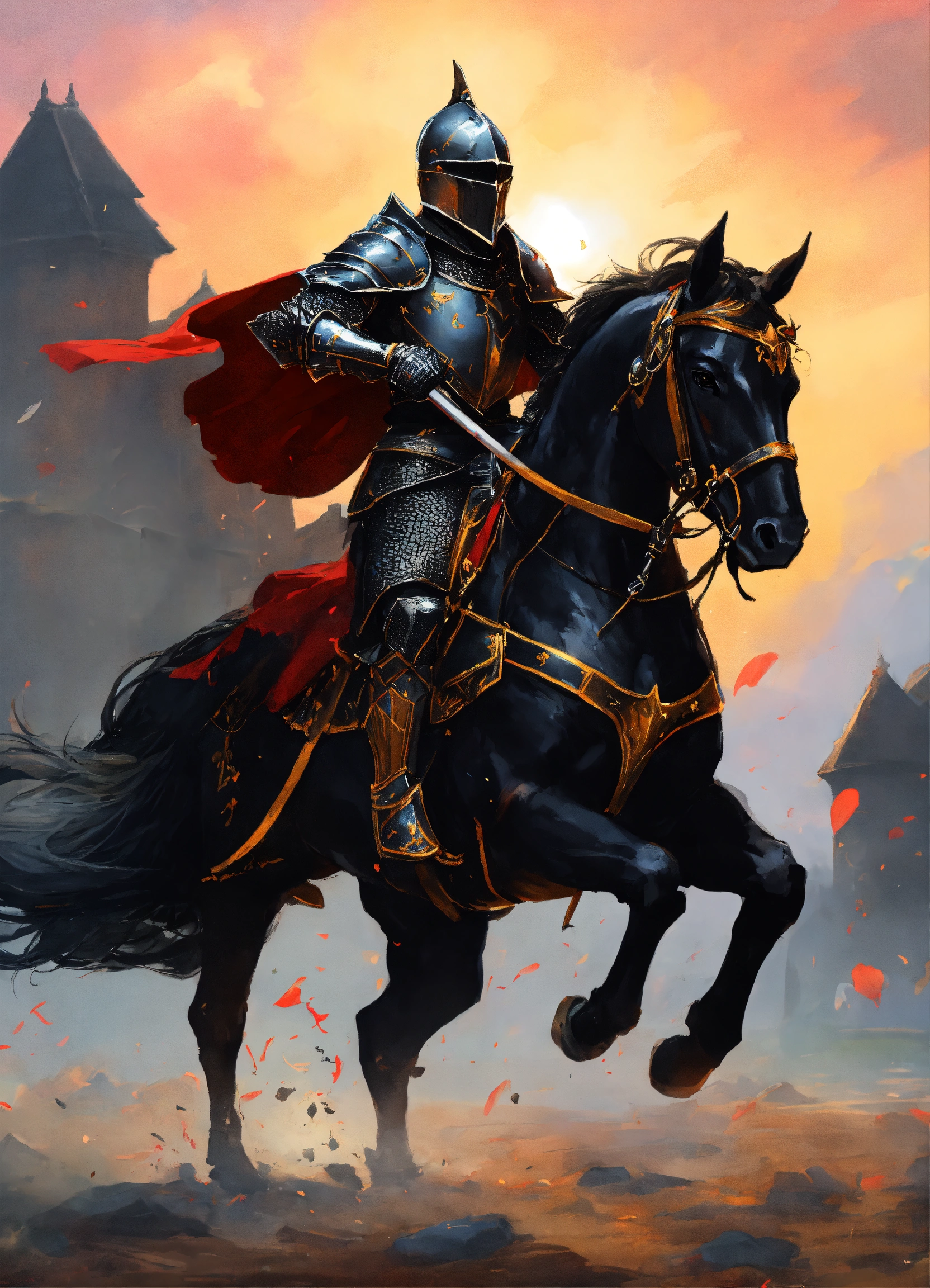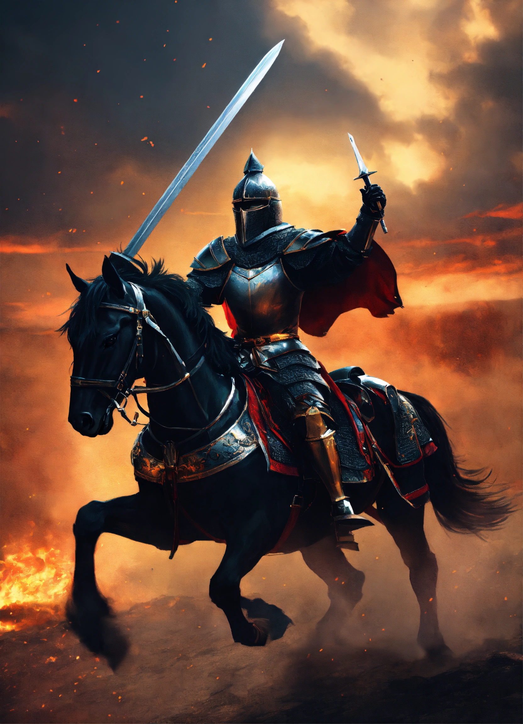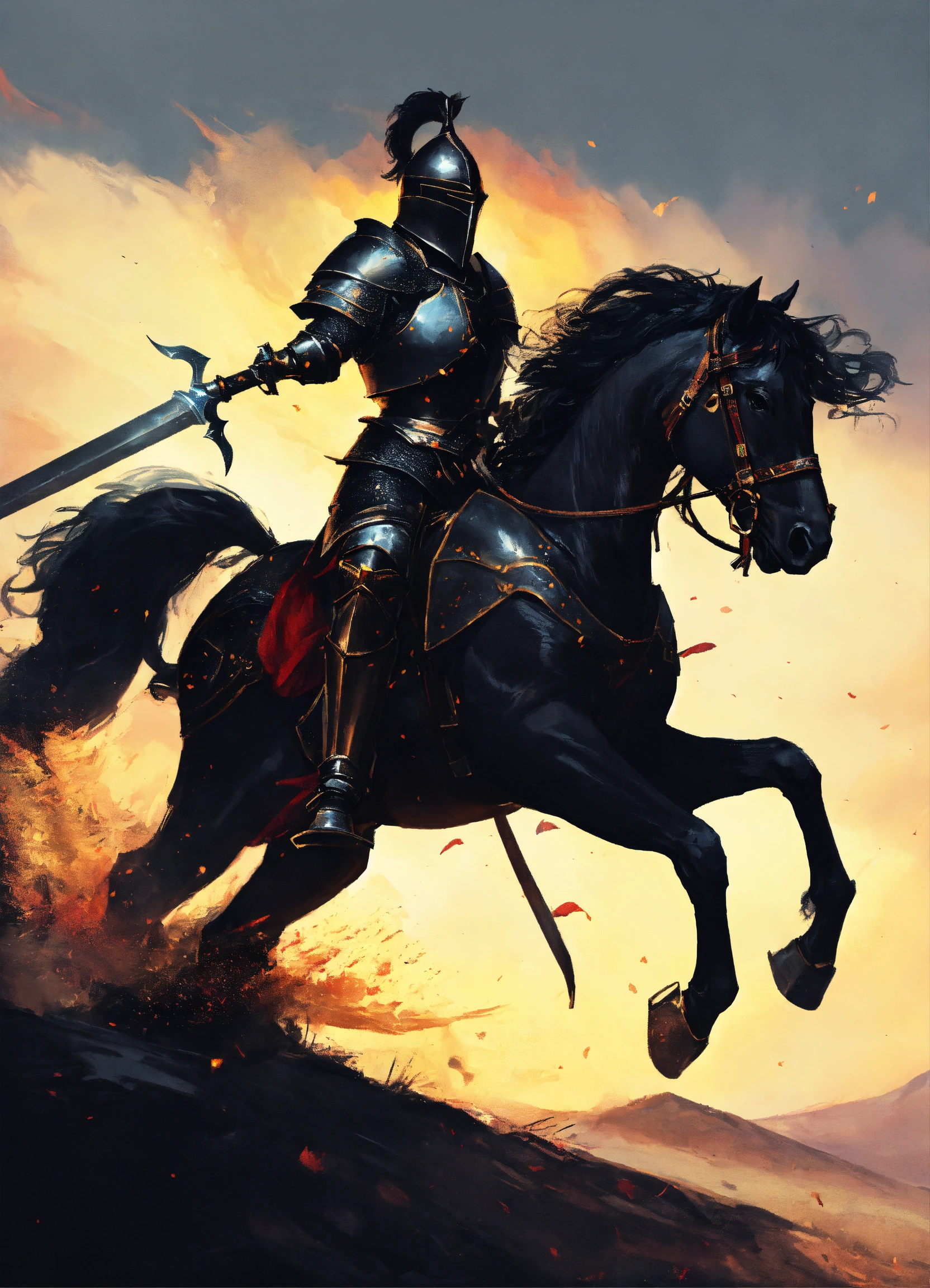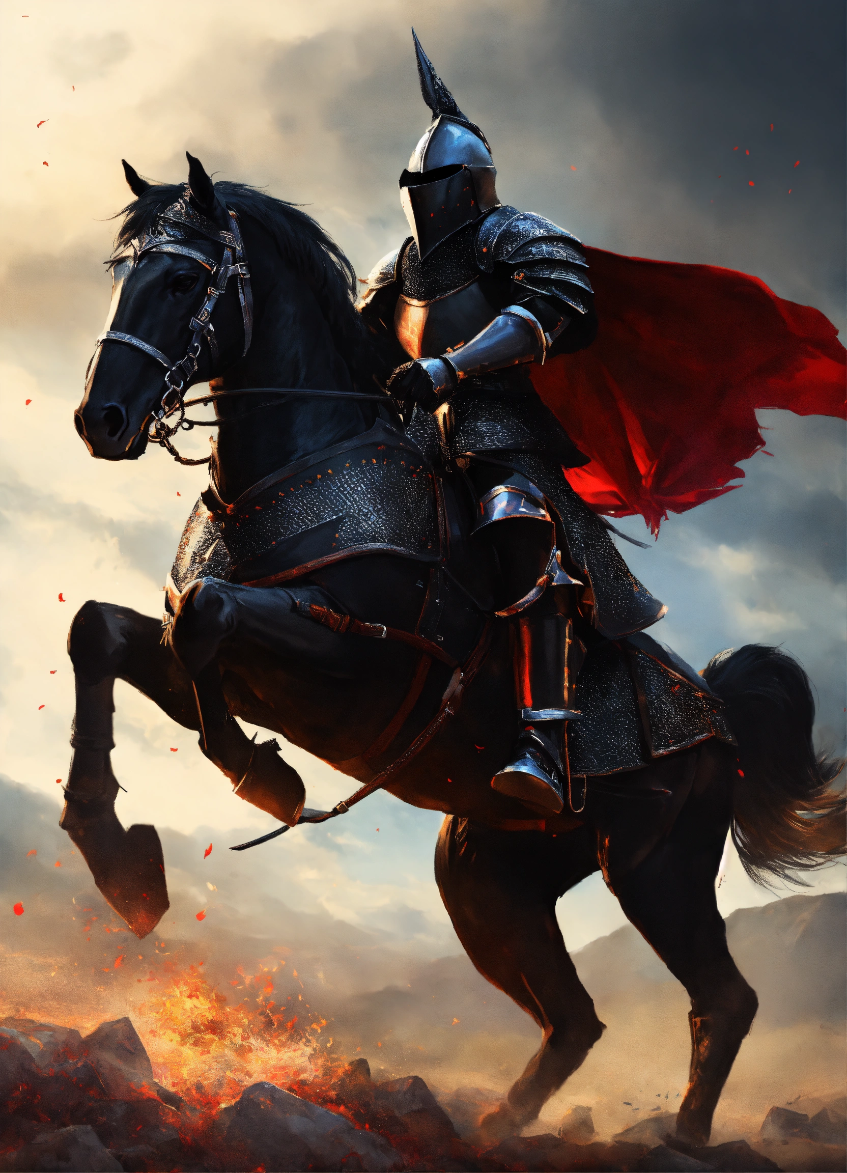 A black knight lord fighting on a horse in black armor