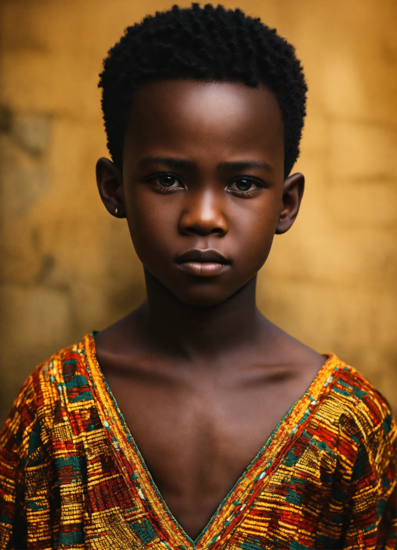 Create a realistic, high quality picture of a young african boy matching the following quote “do not expect the other to be fair, expect yourself to be strong enough anytime”.