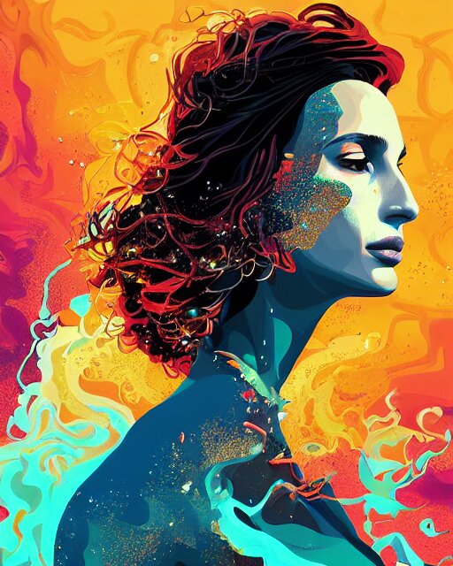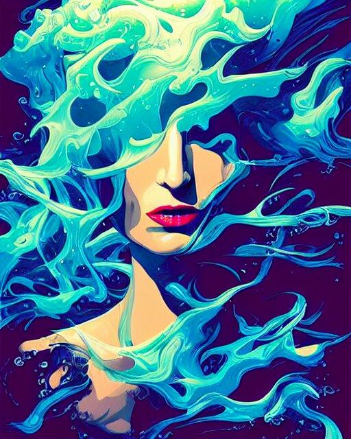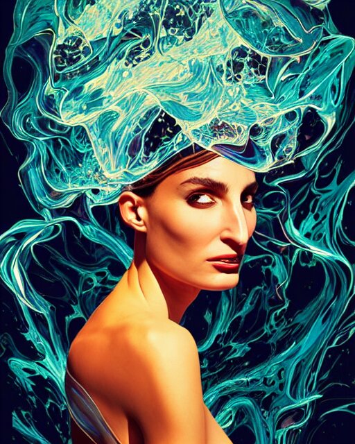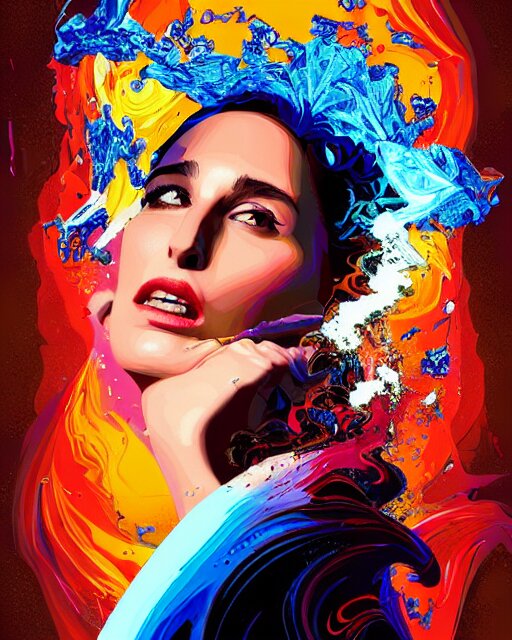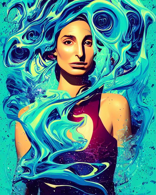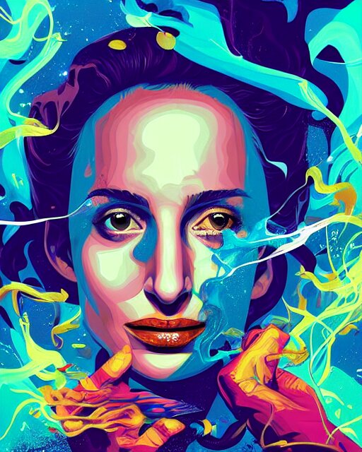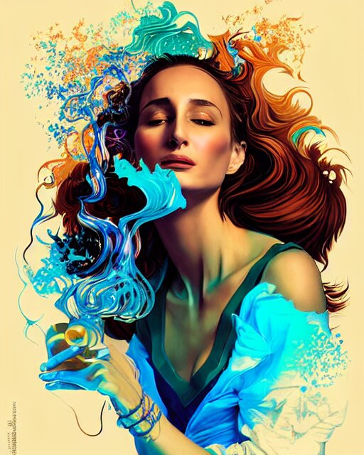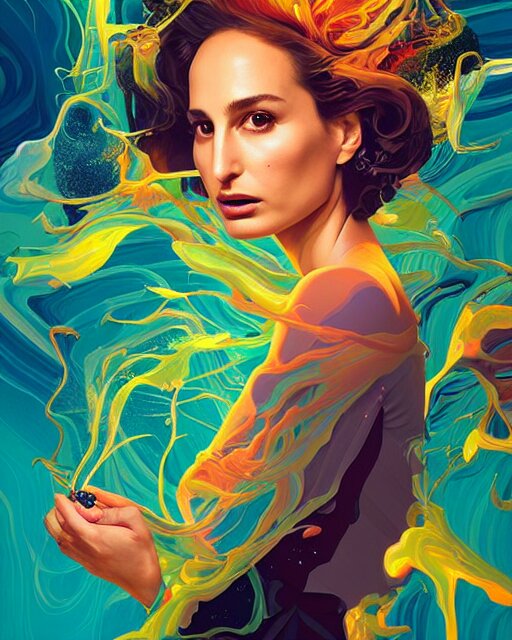Delirium, chaotic storm of liquid smoke, stylized beauty portrait of natalia portman, by petros afshar, ross tran, tom whalen, peter mohrbacher, artgerm, shattered glass, bubbly underwater scenery, radiant light