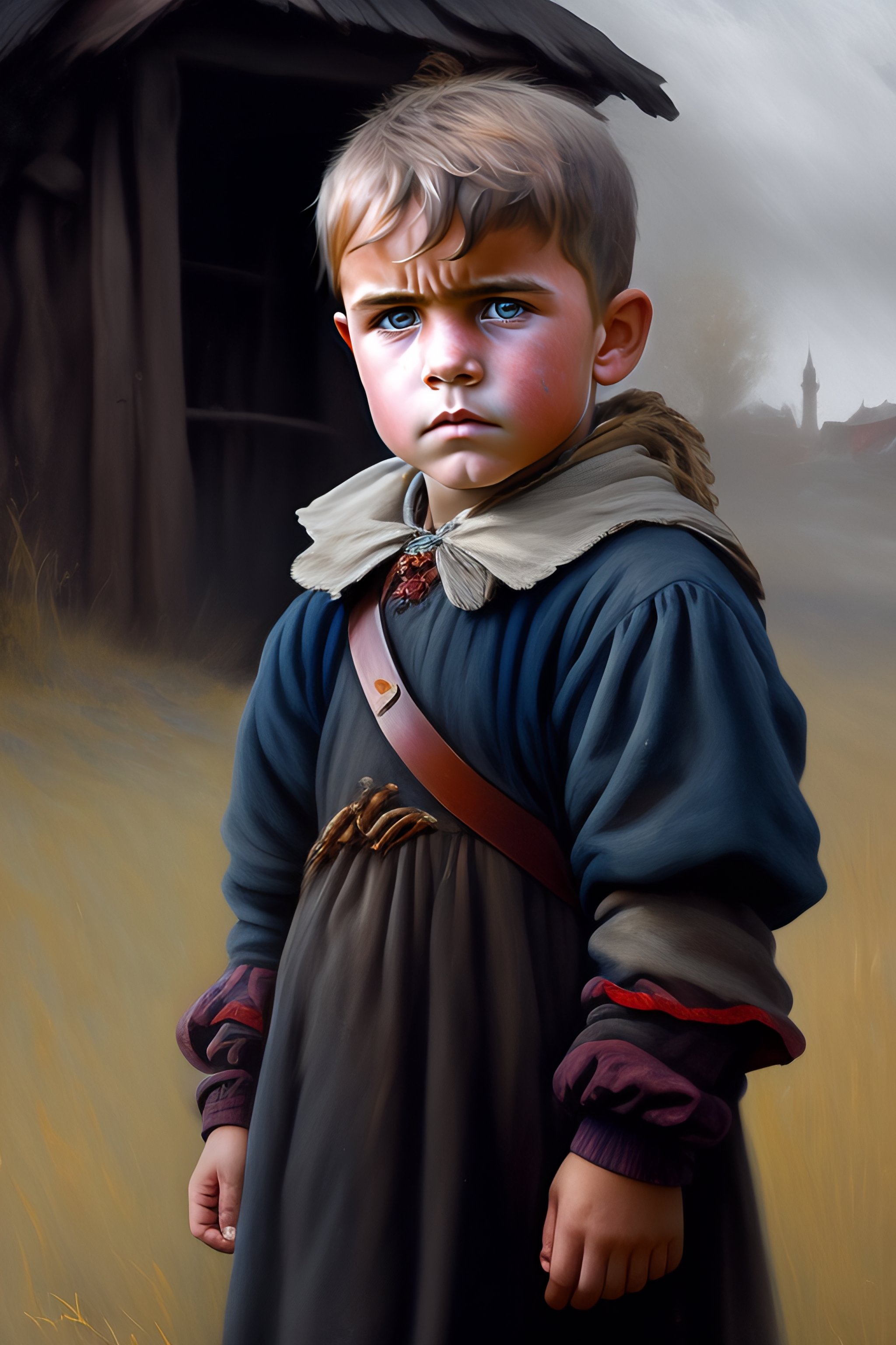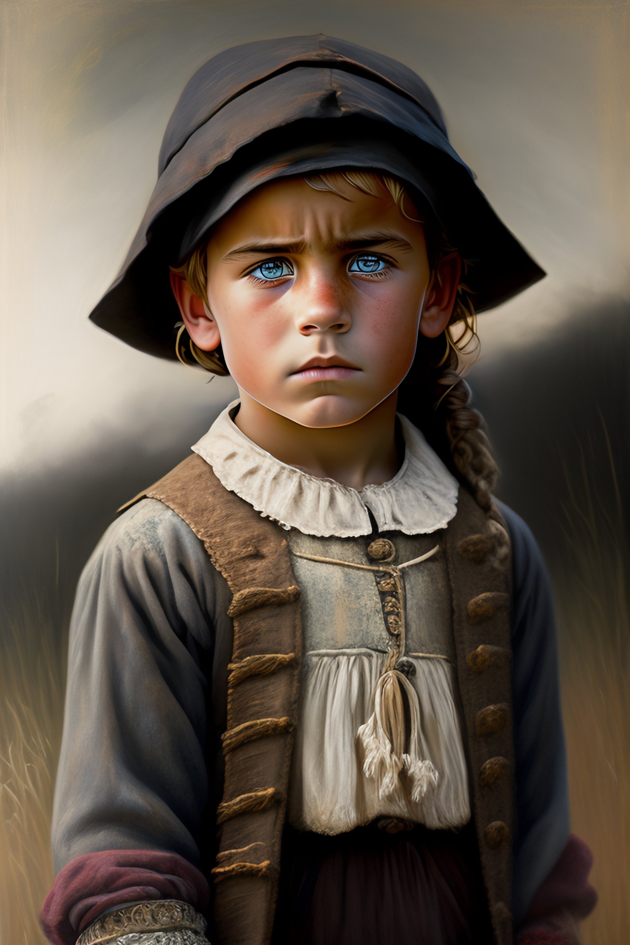 A portrait of poor peasant child in old used 1800 london british peasant clothing, crazy mad aggressive face and eyes, fantasy, concept art, oil pastel painting, moody gray colors, gritty, messy style, low details, large brush strokes