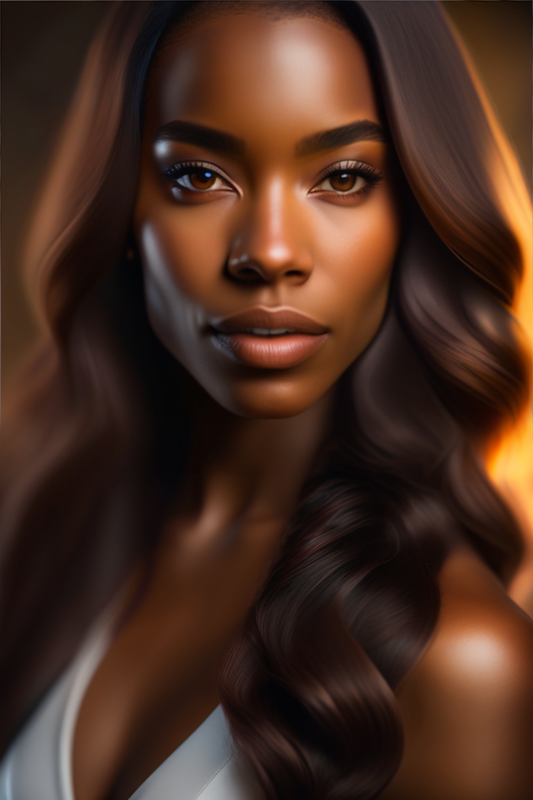 An attractive beige skin tone black woman in her 20's, with light skin, natural, no make up, natural imperfections, hazel colored eyes, lush long straight brown hair, the photo should be a half-length portrait, shallow depth of field to emphasize the subject, taken using a canon eos r camera with a 50mm f/1.8 lens, f/2.2 aperture, shutter speed 1/200s, iso 100 and natural light, full body, hyper realistic photography, cinematic, cinema, hyperdetail, ultrahd, color correction, ultrahd, hdr, color grading, 8k