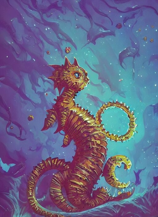 Cat seahorse fursona, autistic bisexual graphic designer, attractive fluffy humanoid character design, sharp focus, weirdcore voidpunk digital art by artgerm, akihiko yoshida, louis wain, simon stalenhag, wlop, noah bradley, furaffinity, artstation hd, trending on deviantart