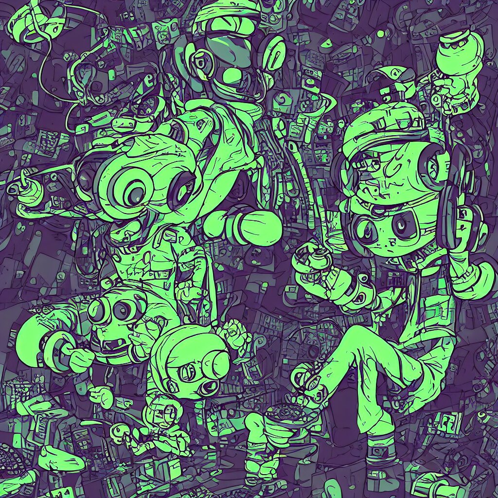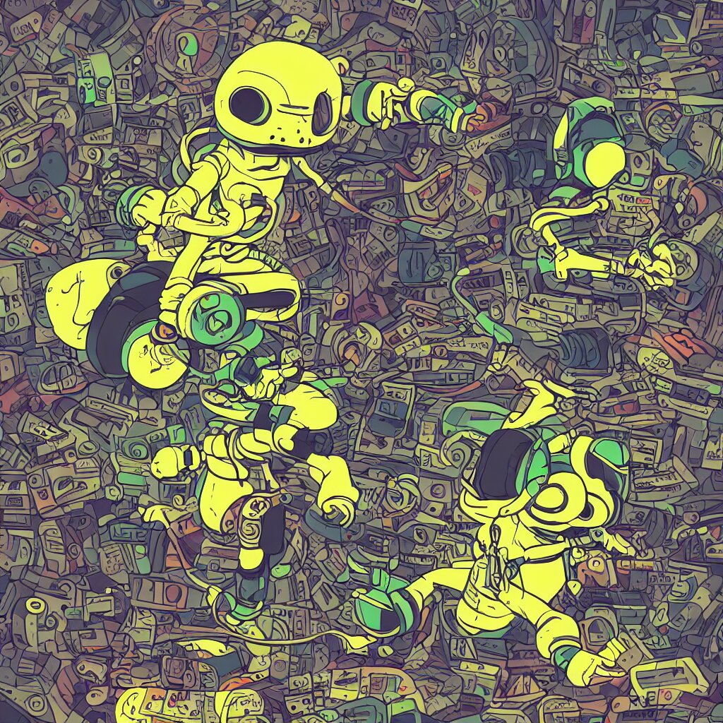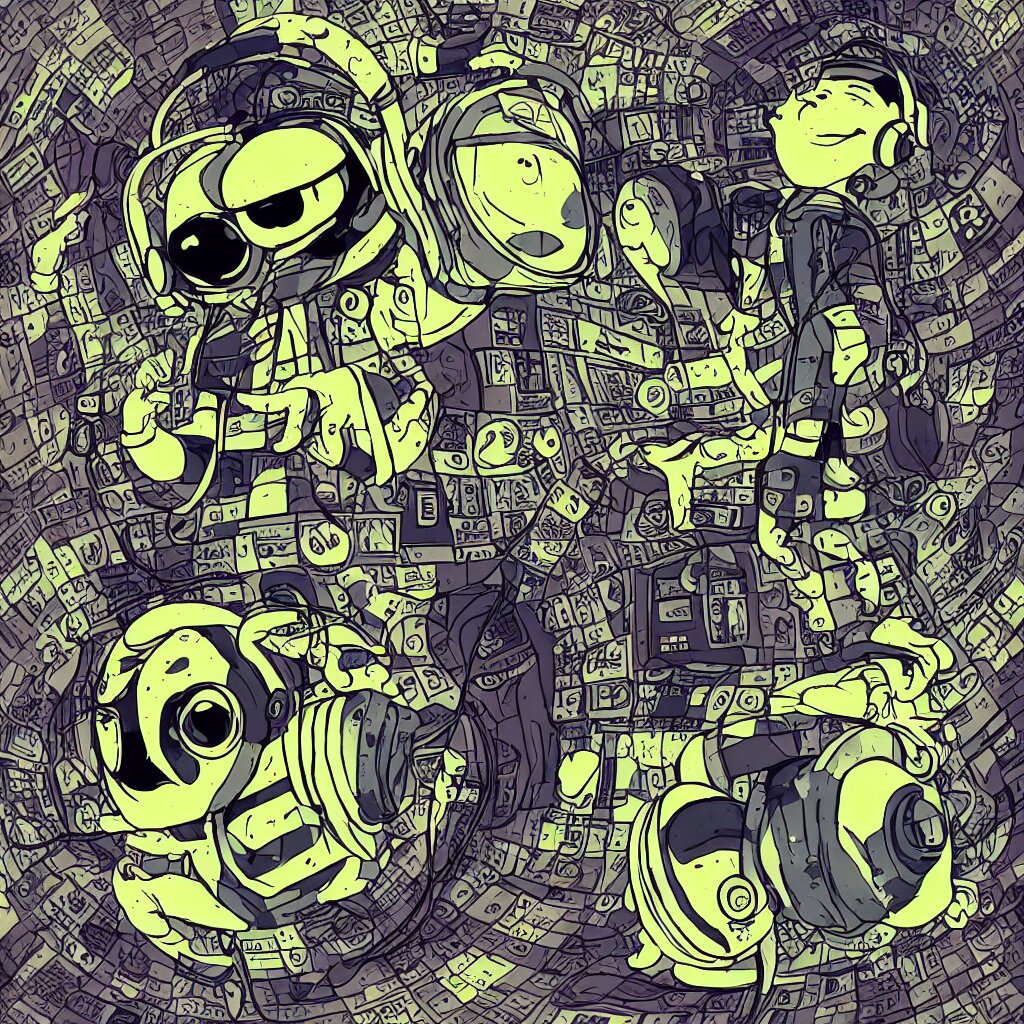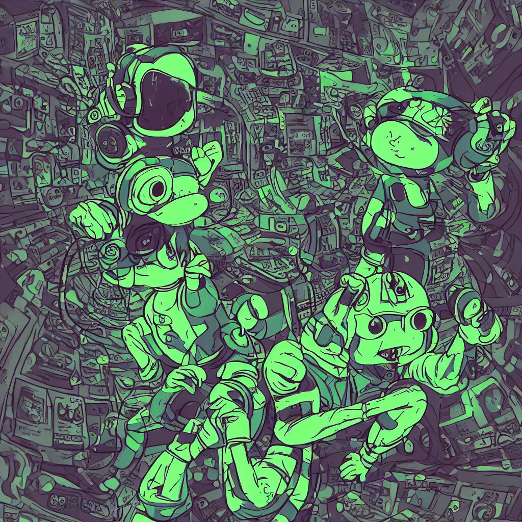 A toad wearing headphones, ryuta ueda artwork, breakcore, style of jet set radio, y 2 k, gloom, space, cel - shaded art style, record store, data, minimal, code, cybernetic, dark, eerie, cyber