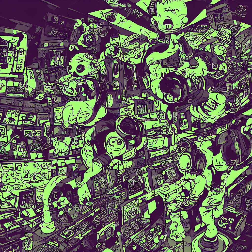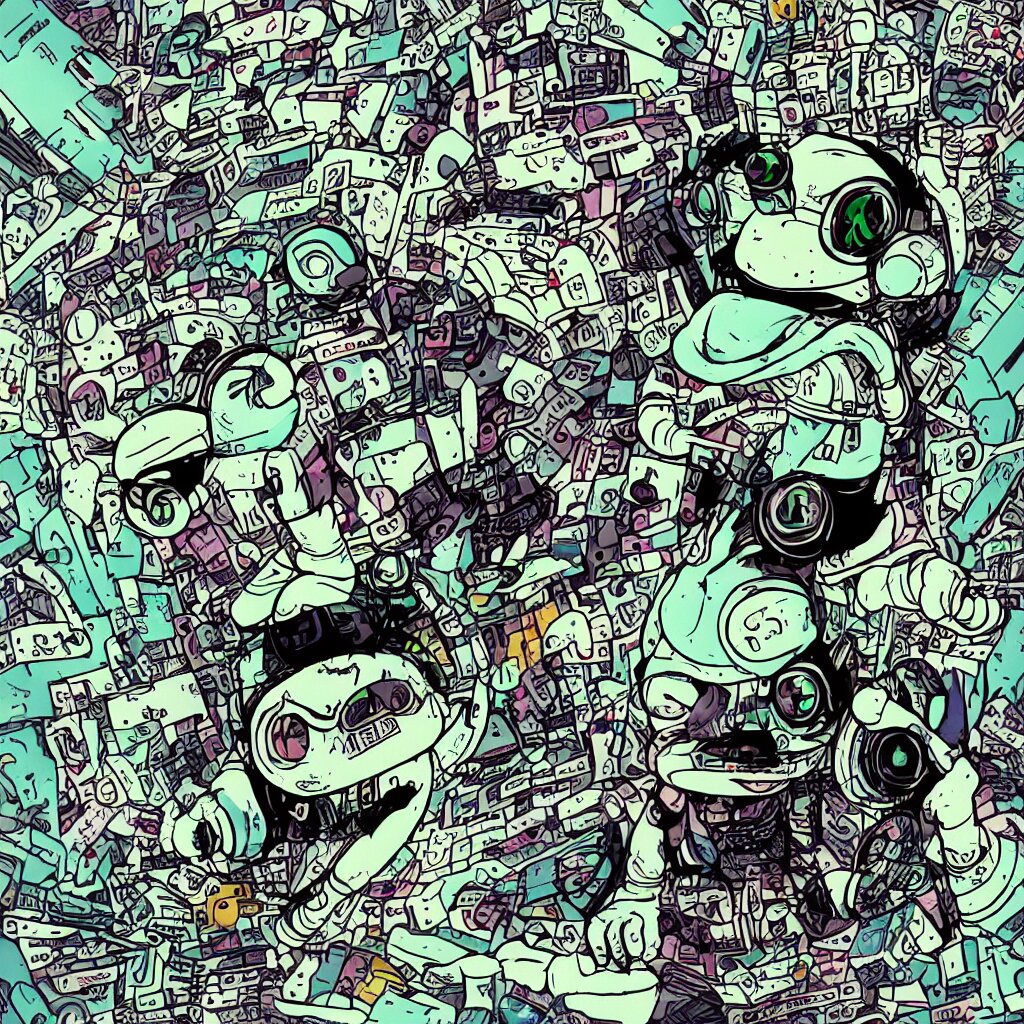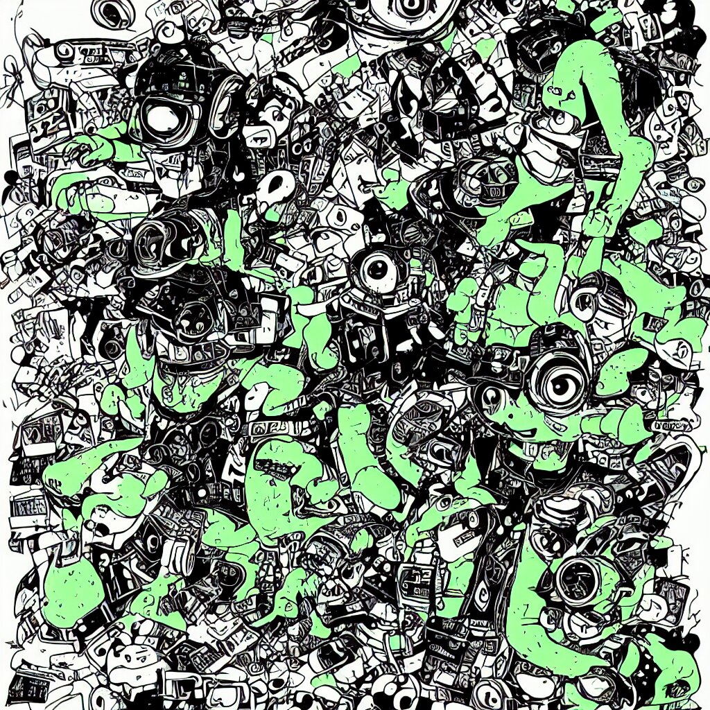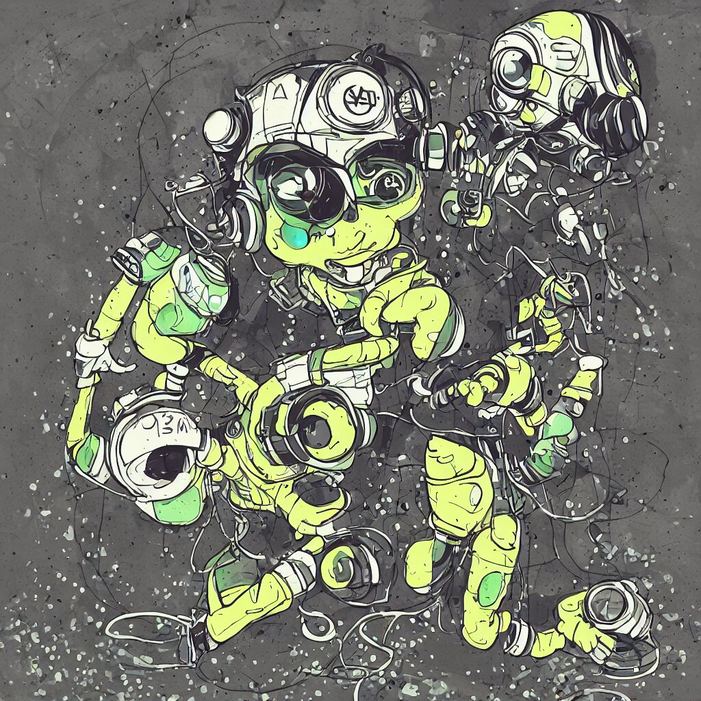 A toad wearing headphones, ryuta ueda artwork, breakcore, style of jet set radio, y 2 k, gloom, space, cel - shaded art style, record store, data, minimal, code, cybernetic, dark, eerie, cyber