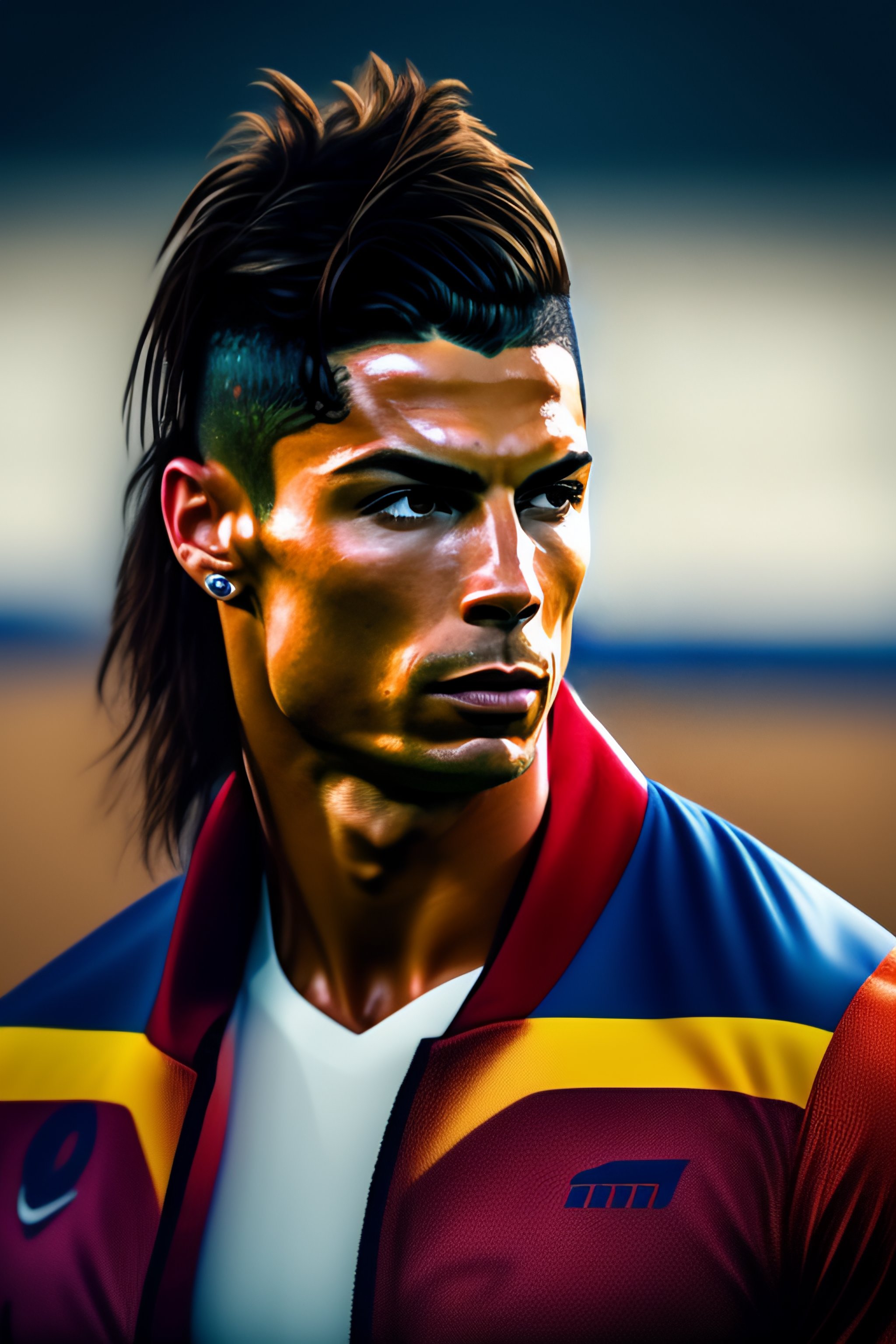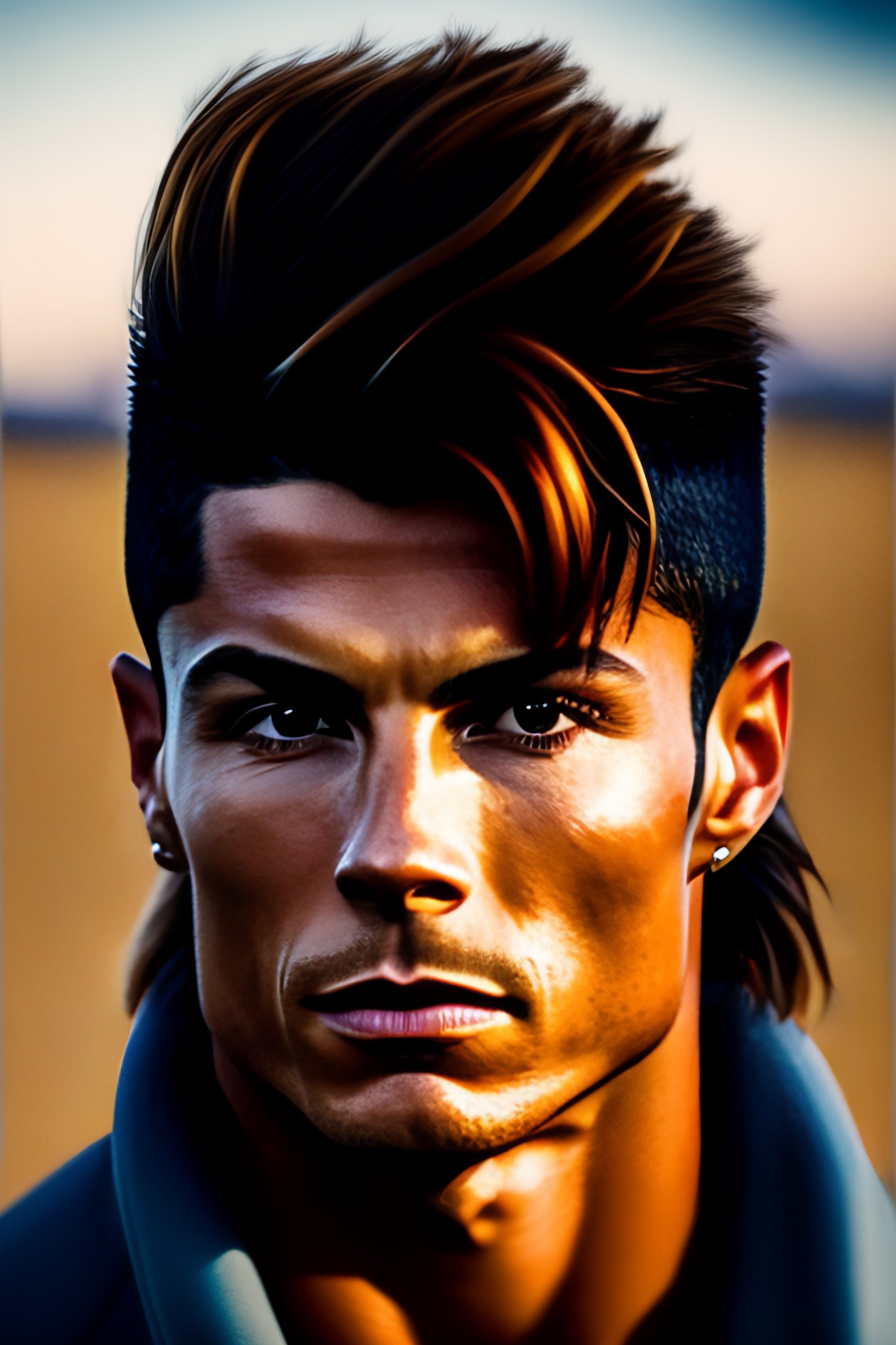 Ultra hd! cristiano ronaldo with a mullet haircut living in a trailer in a rural landscape