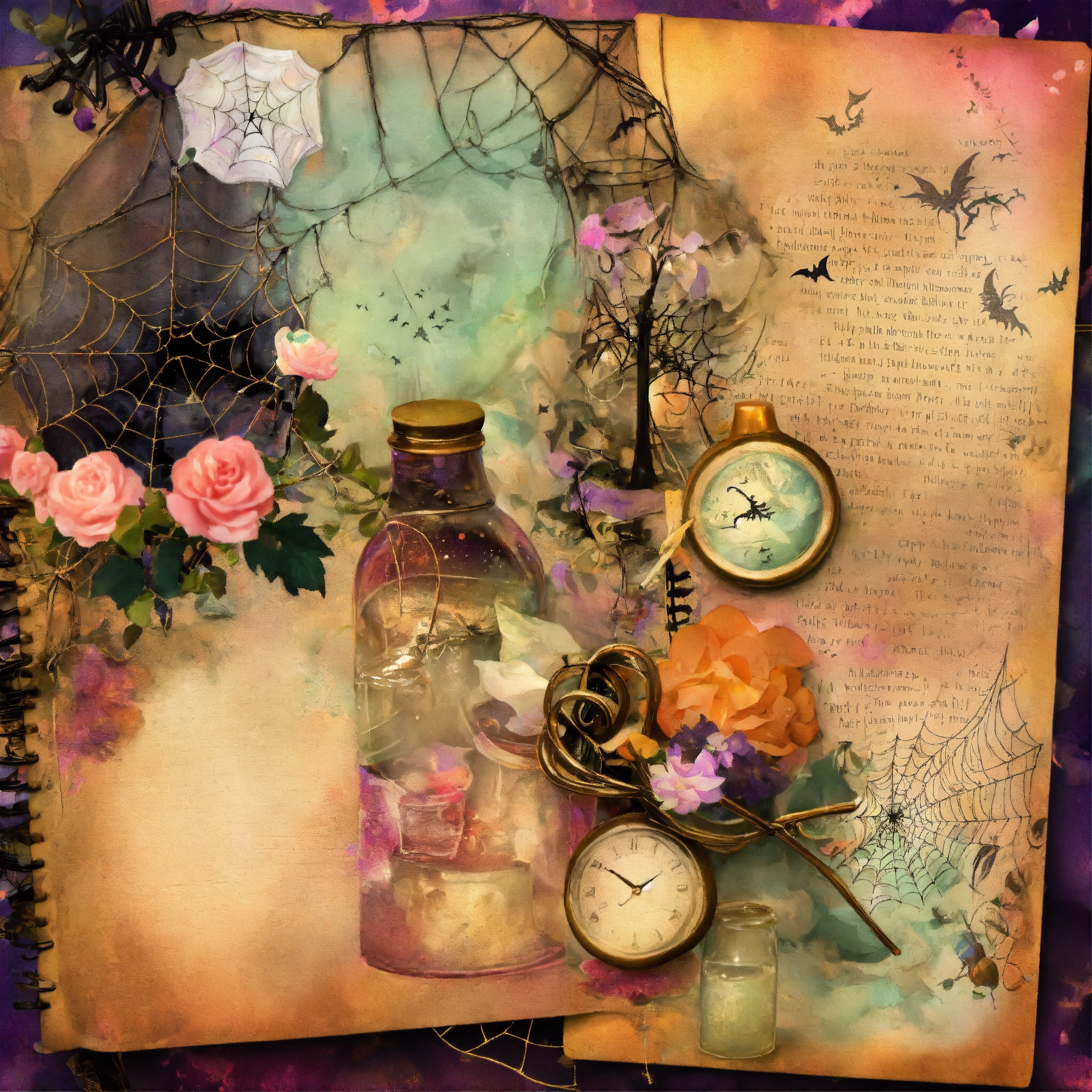Shabby chic dreamy mist pastel junk journals magical halloween goth potion small bottles and creepy spiderwebs junk journal layout pages halloween junk journal kit printable halloween journal cards halloween junkjournal kit digital swirling magical fairytale abstract art style