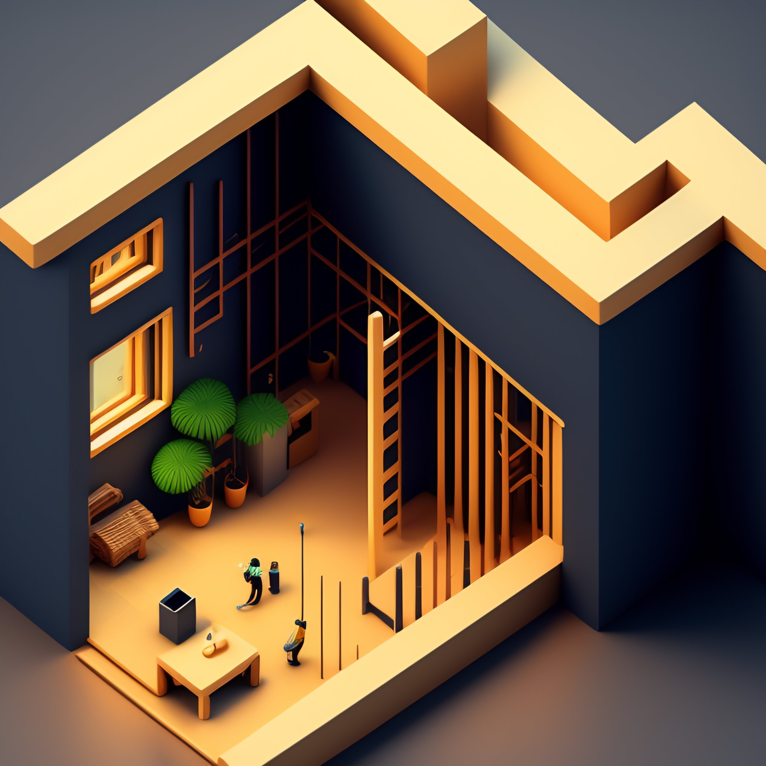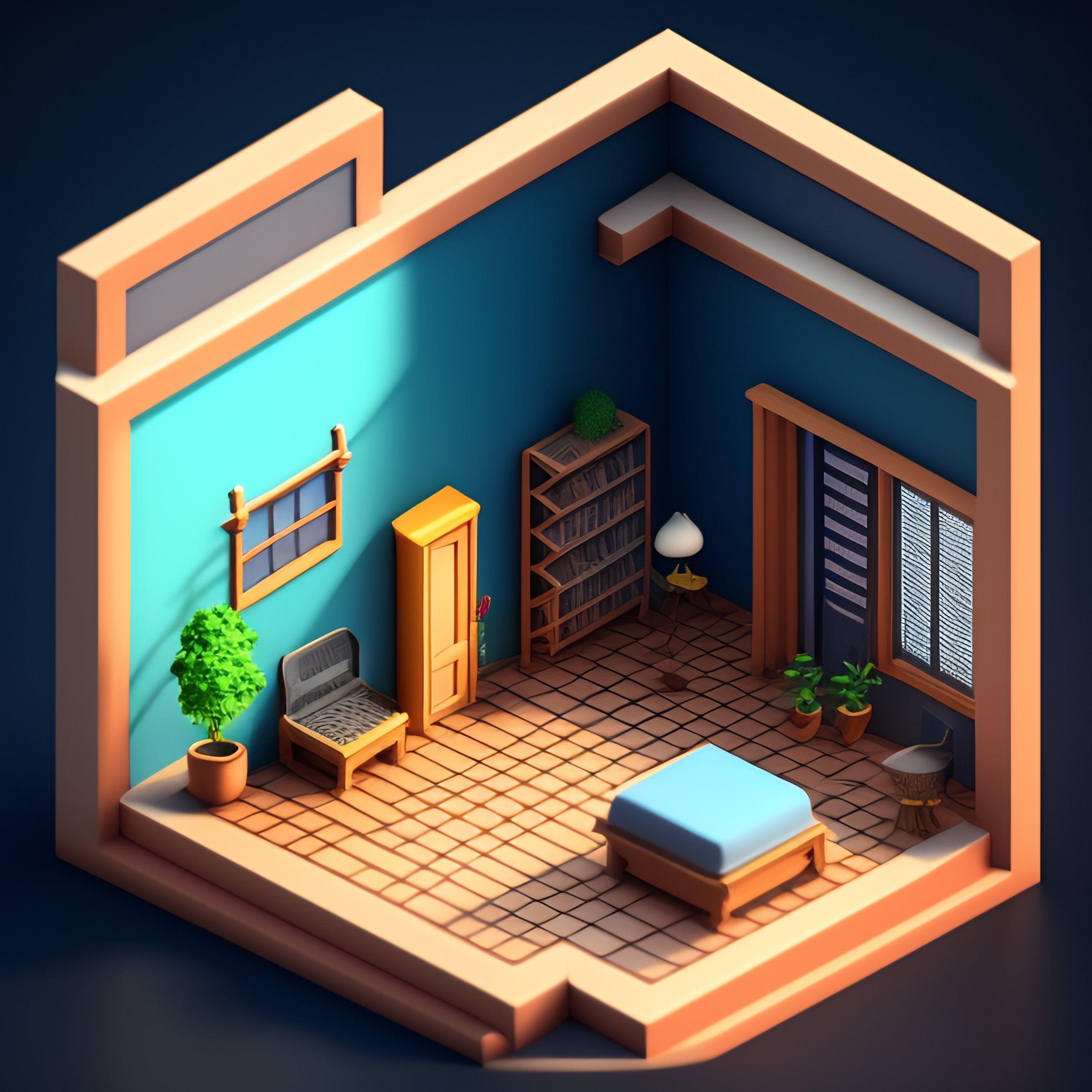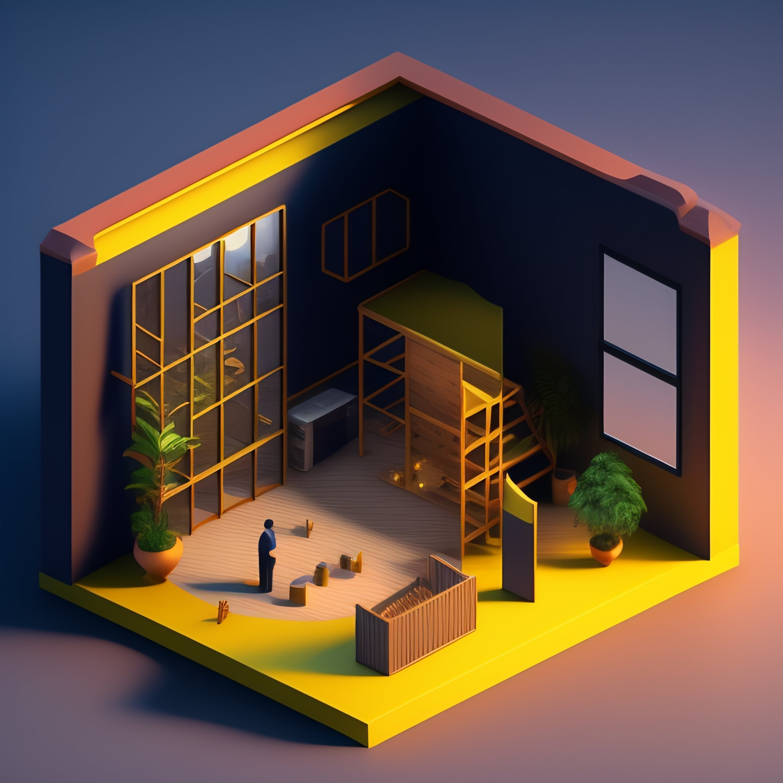 Isometric render of a room