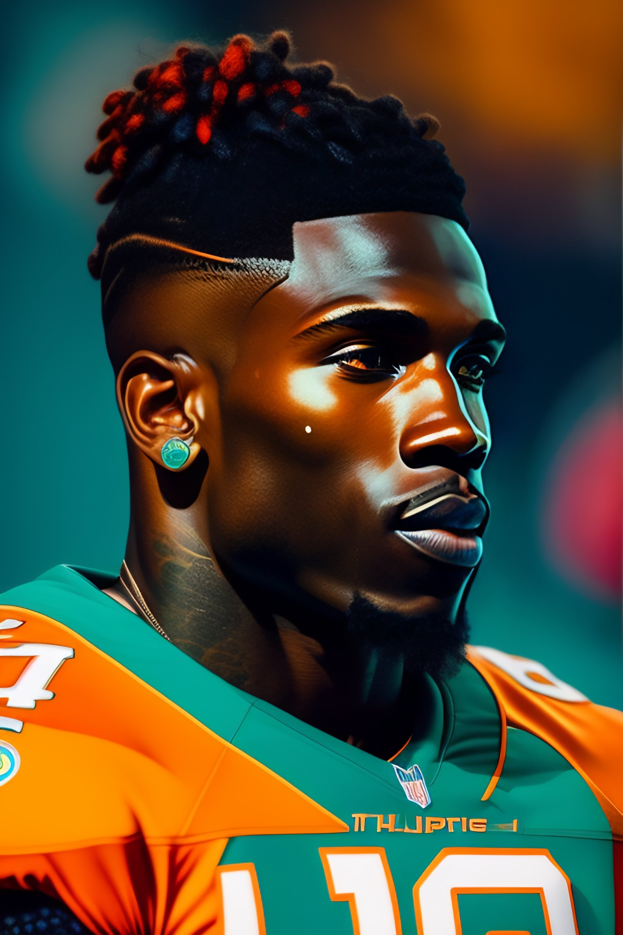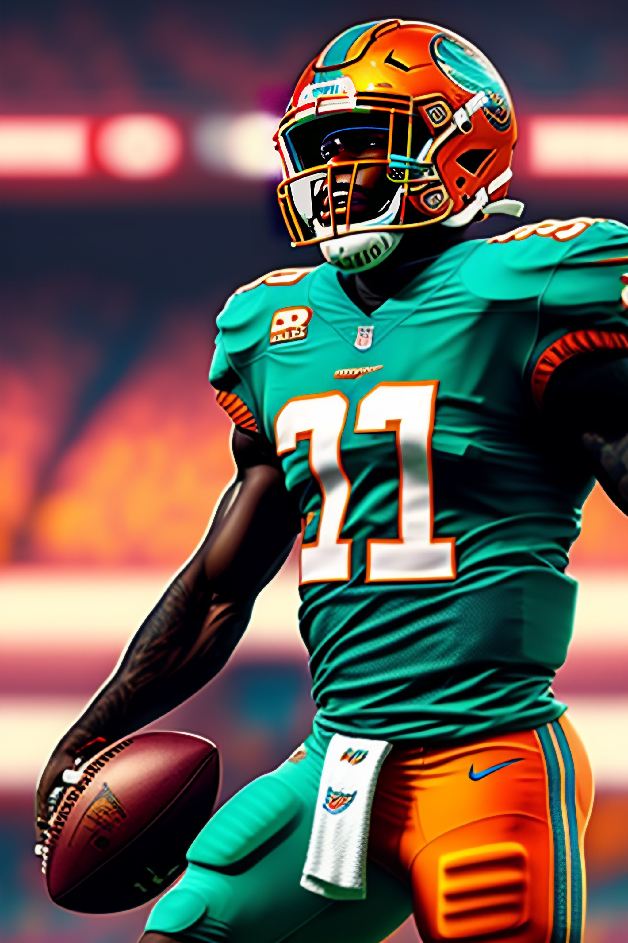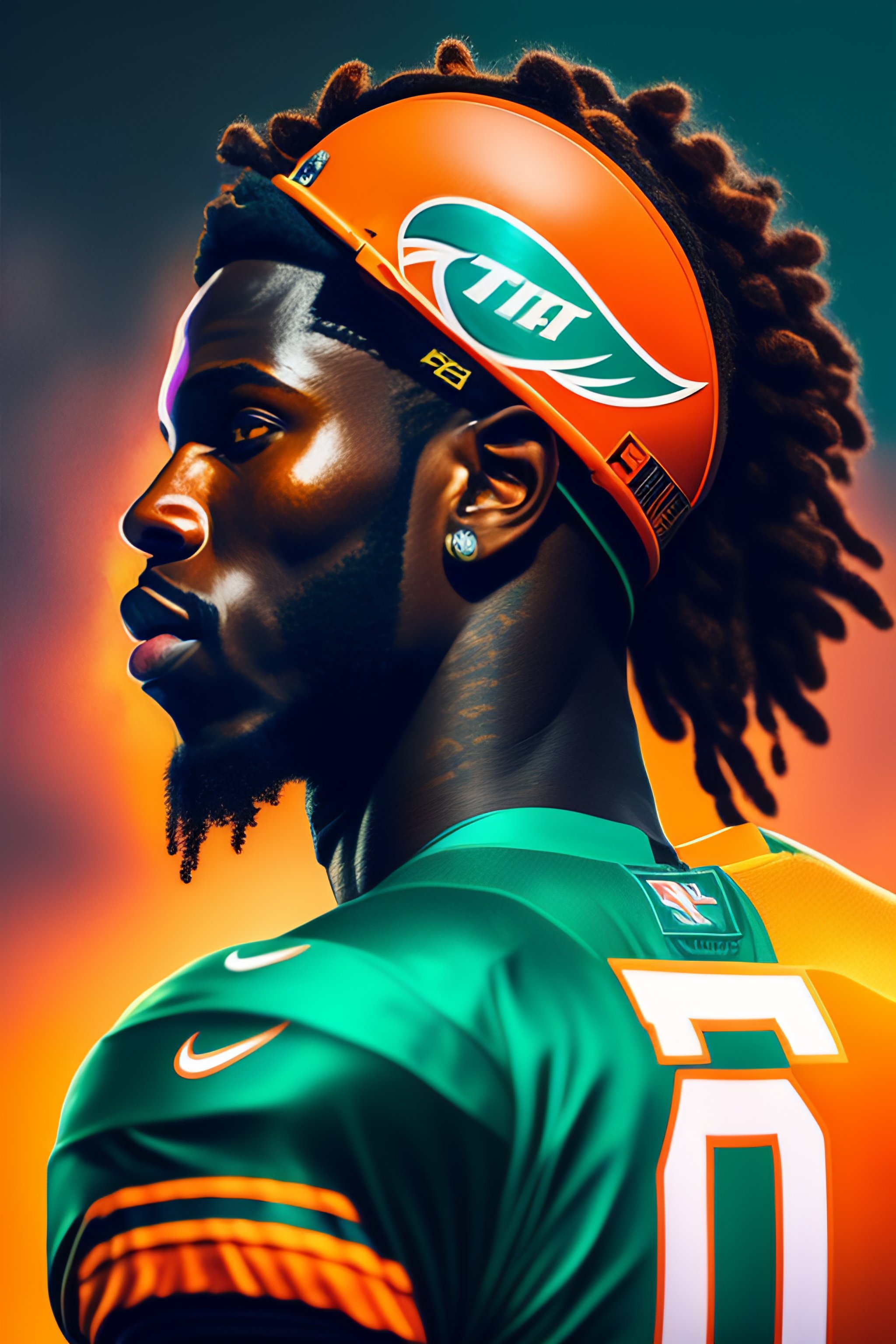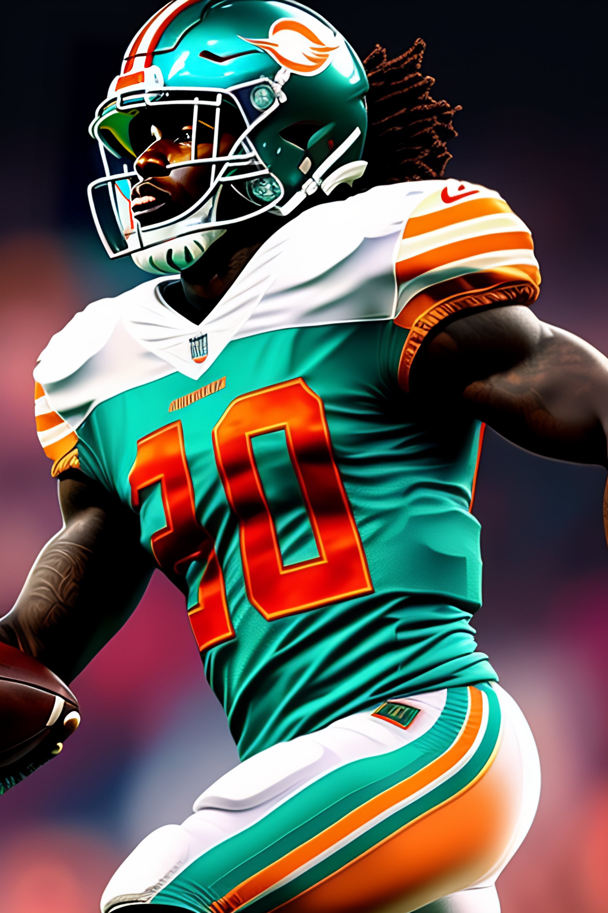 Highly detailed portrait of tyreek hill miami dolphins football, teal & orange uniform with # 10 printed, unreal engine, fantasy art by greg rutkowski, loish, rhads, ferdinand knab, makoto shinkai and lois van baarle, ilya kuvshinov, rossdraws, tom bagshaw, global illumination, radiant light, detailed and intricate environment