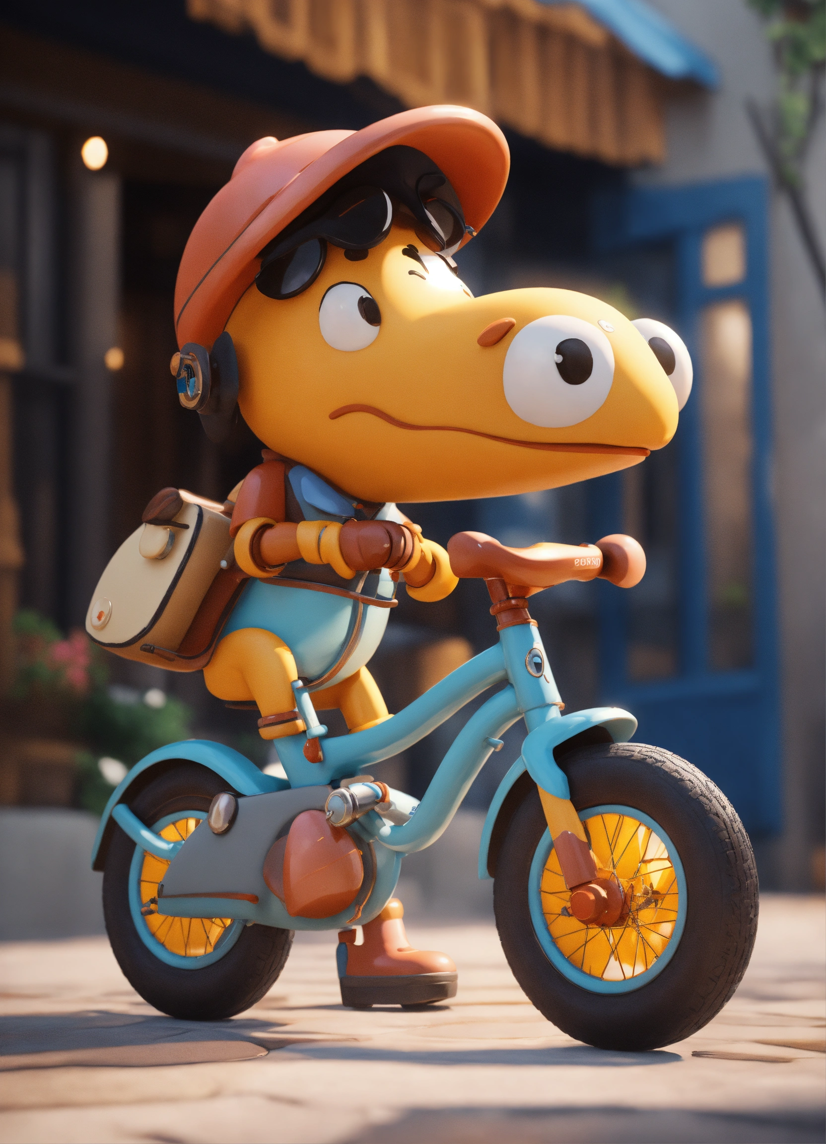 Cartoon character a cute picasso in a bike, full - length, ghibli_ studio meets disney style, unreal engine render, 8k