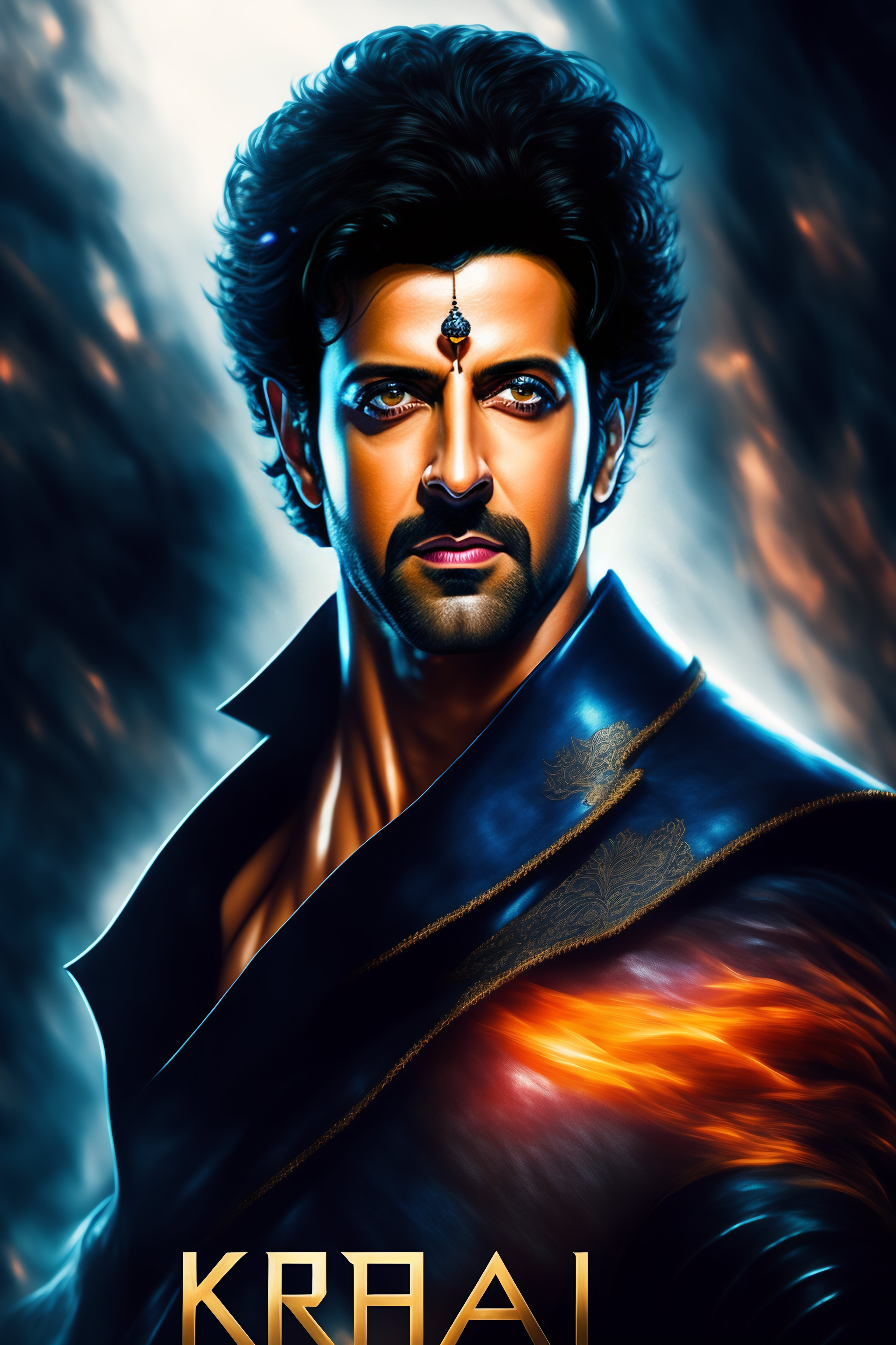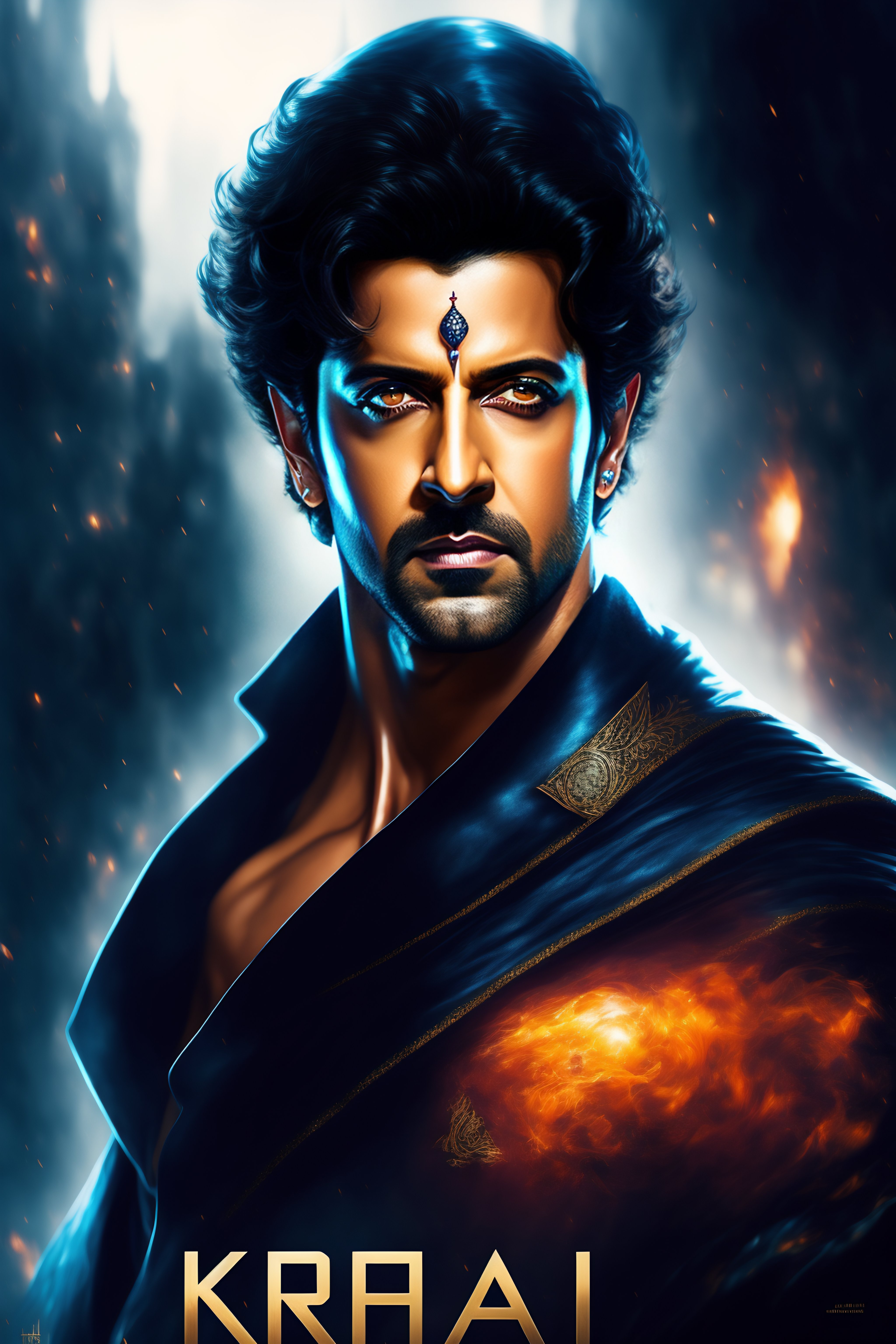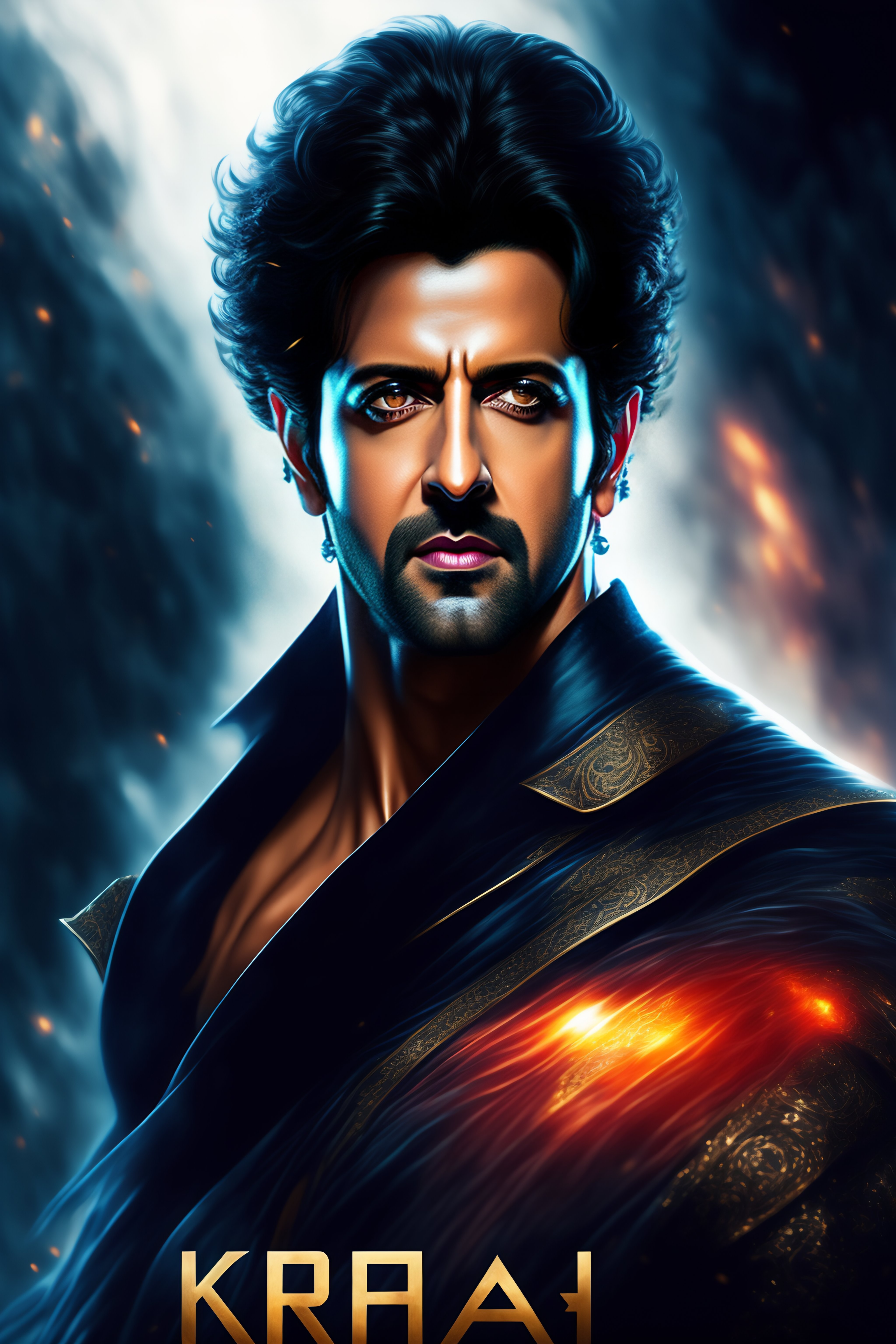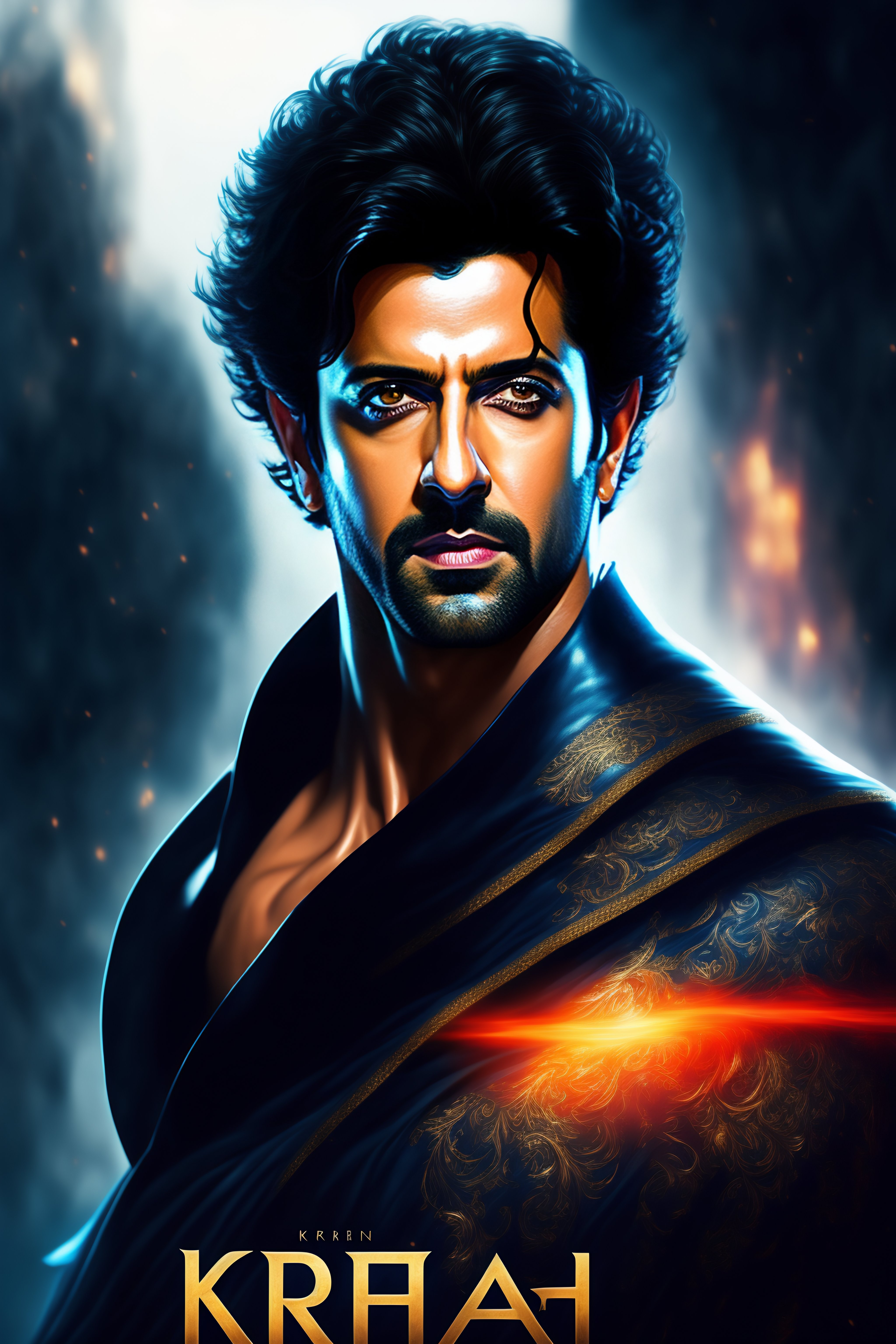 Hrithik roshan, krrish, movie poster, deep focus, fantasy, intricate, elegant, highly detailed, digital painting, art stations, concept art, matte, sharp focus, illustration
