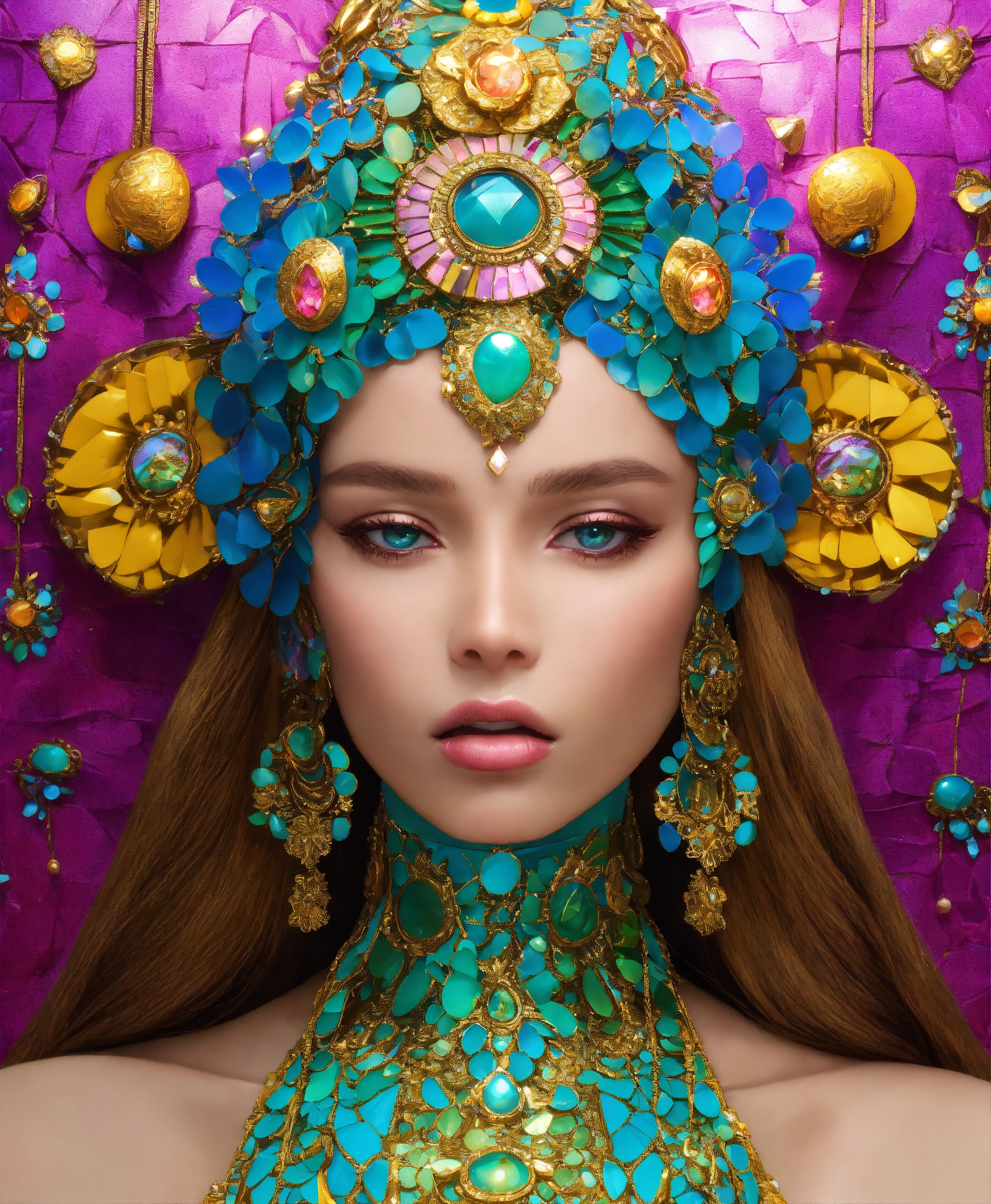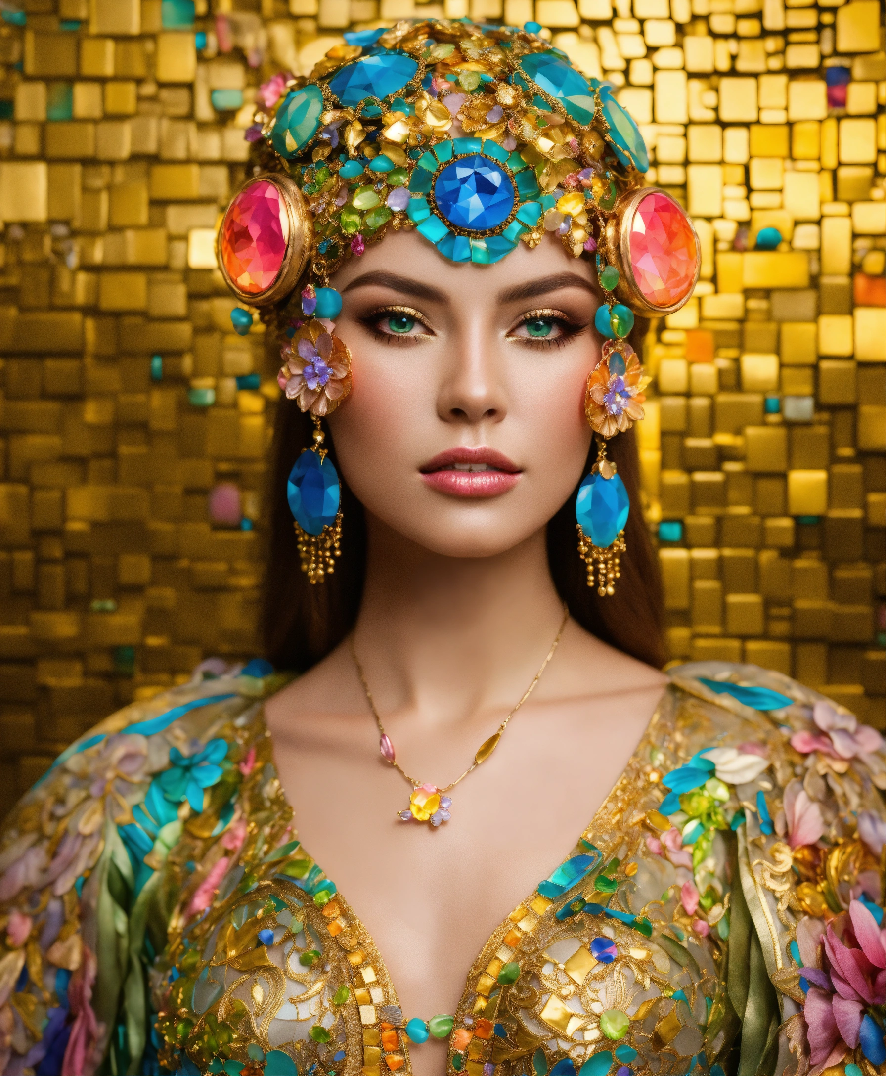 Futuristic beautiful photogenic supermodel painted glamorous beautiful colourful dreamy awesome elegant elaborate complex detailed awesome gold blue pink green orange peridot lilac yellow magenta cyan gold silver copper fabulous 8k intricate 8brush work vivid bright vibrant colors 3d gold trim metallic 24k gold filigree background mosaic awesome rich haute couture bambi eyes ultimate beauty sheen 8k glamorous filigree mosaic pearlized amazing hyperdetailed elegant elaborate couture elaborate hair style contrast frosty brushed matte luminous gold yellow background vibrant pink silver green detailed 8k 24k gold trim gold background asymetrical beautiful awesome superb 8k sheen 3d klimt vibrant colors large eyes gorgeous beautiful colourful delicate facial features beautiful superb 24k gold highlights 8k in focus red yellow gold pink klimt flowers gold foil 8k in focus gorgeous superb sublime awesome 8k hyperdetailed hyper-realistic 8k