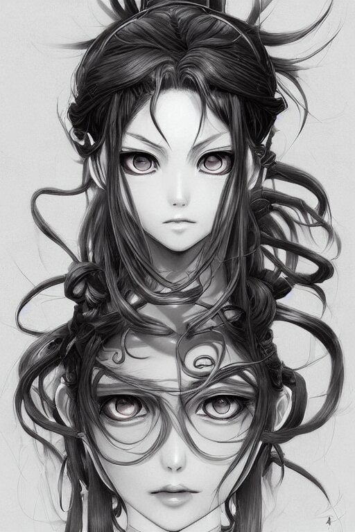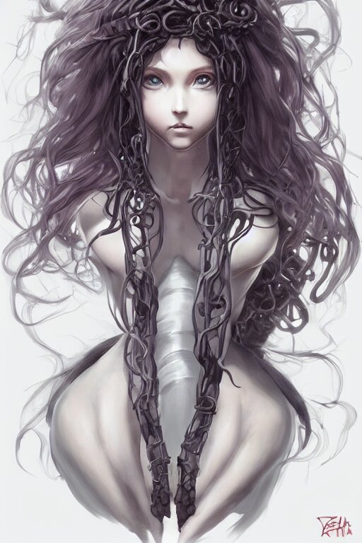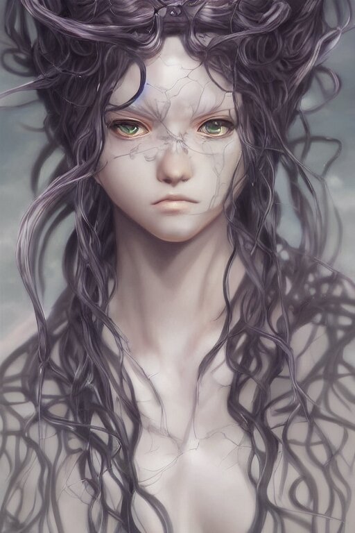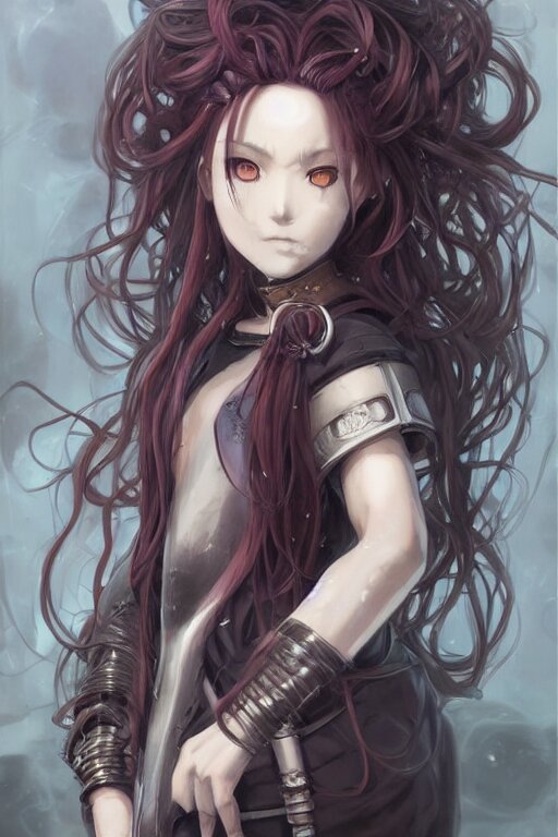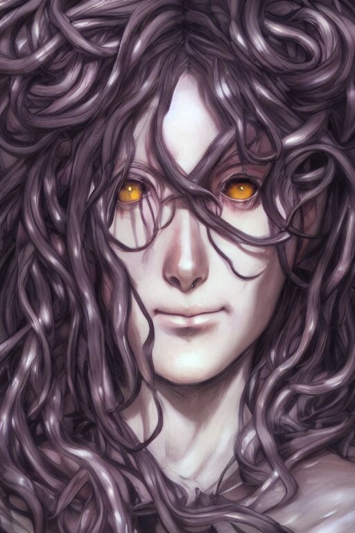 Anime medusa portrait, art by krenzcushart, by yoshitaka amano, kentaro miura, artgerm, wlop, artsyle of nier automata concept art