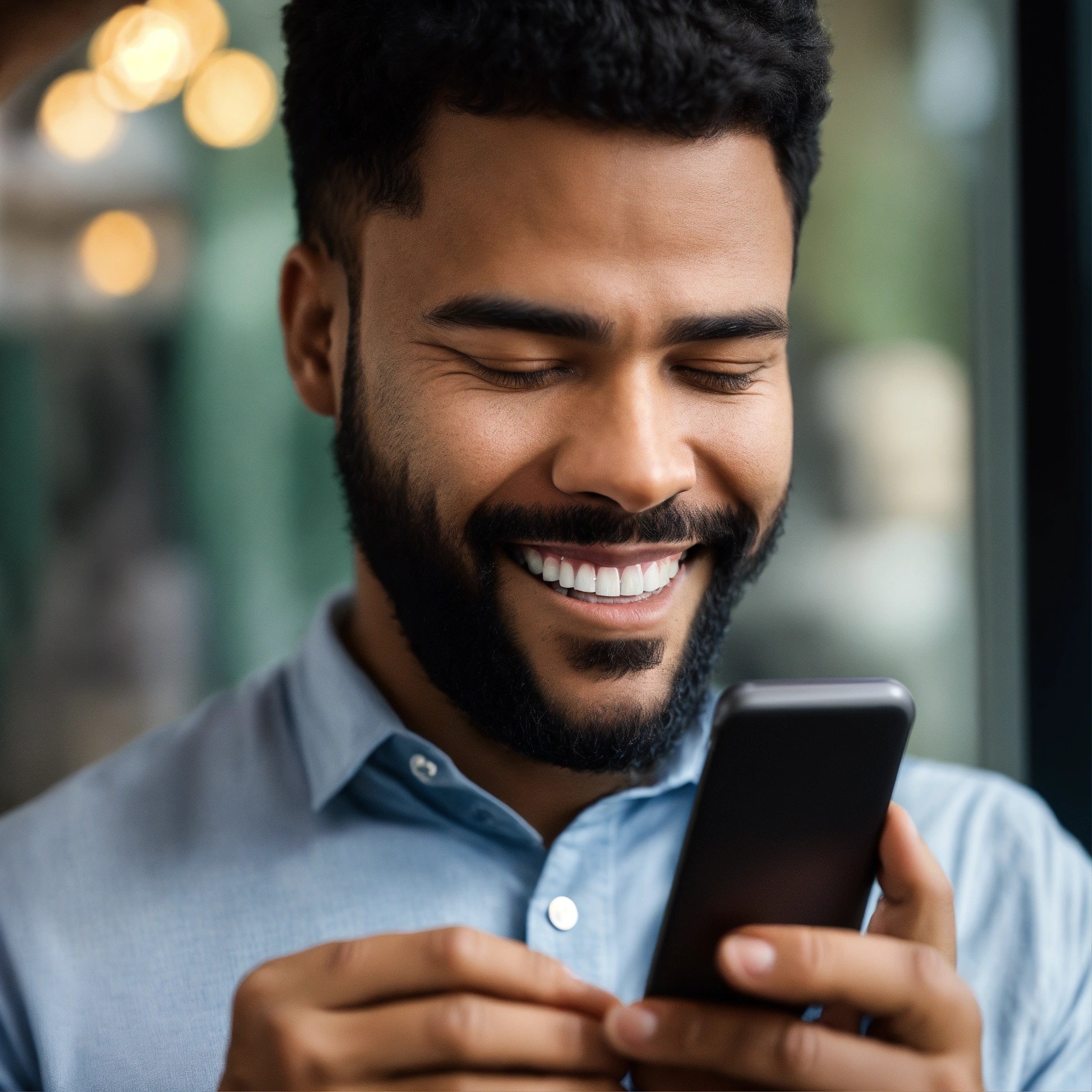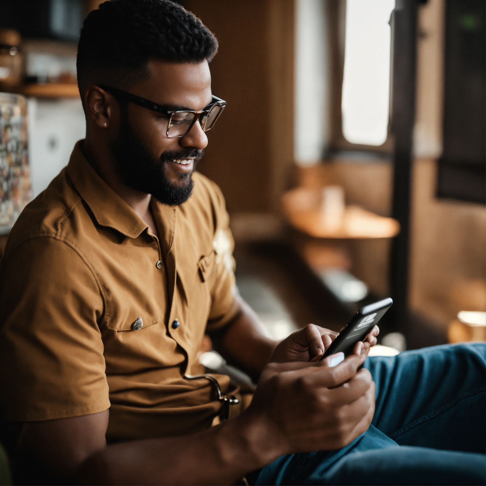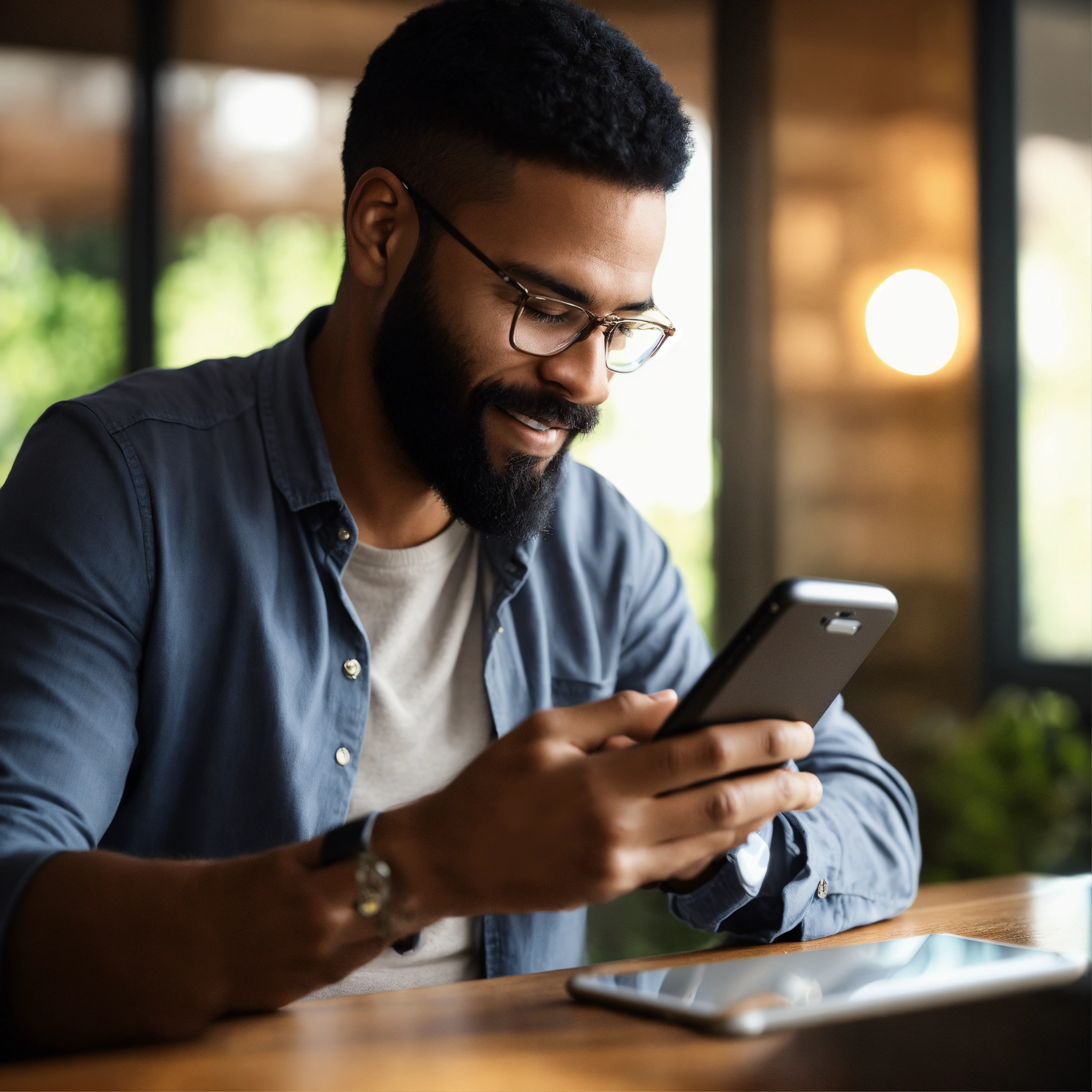 A photo of a man using a mobile banking app on his smartphone, the app is easy to use and has a simple interface, the man is satisfied with the app and is using it to manage his finances