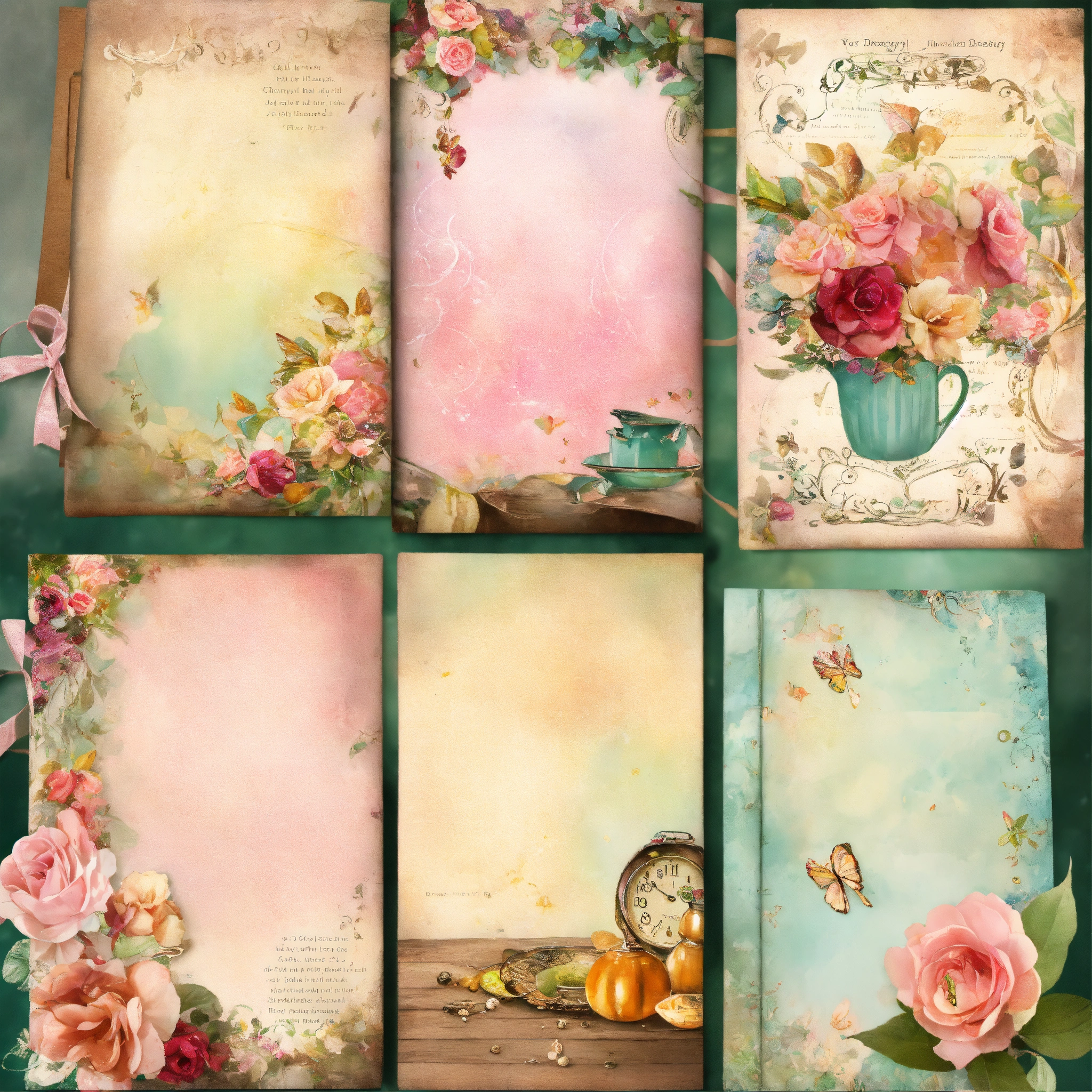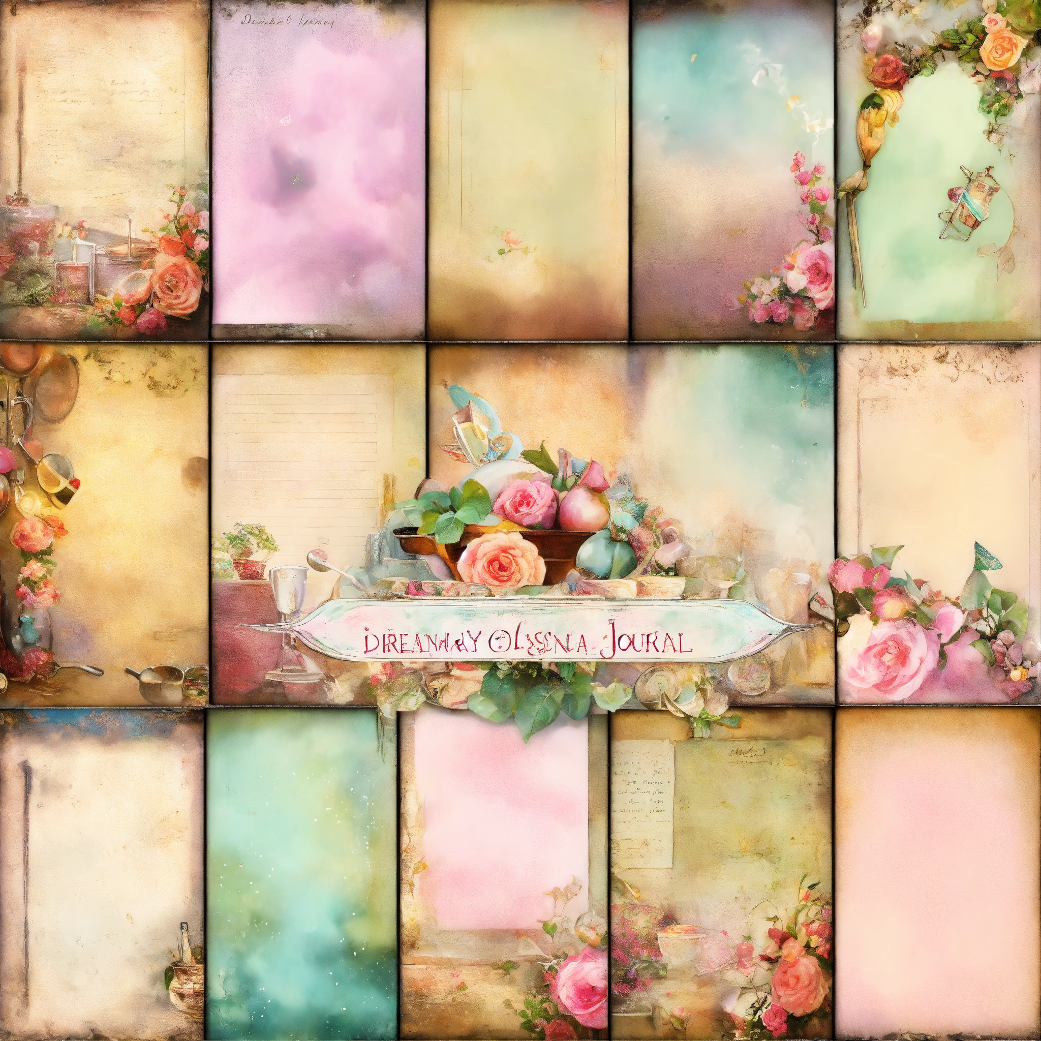Shabby chic dreamy mist pastel junk journals cooking junk journal digital kit, printable collage sheets, kitchen junk journal, cook book journal, recipe journal pages swirling magical fairytale abstract art style