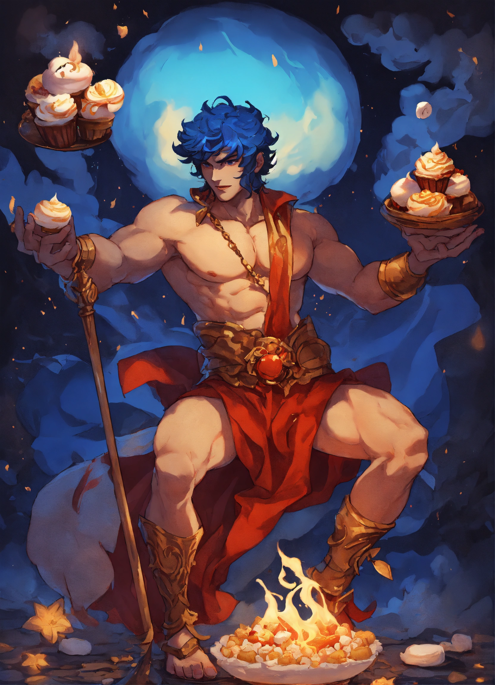 Zagreus, the god of decadence, pale skin, blue robes, sailor clothes, underworld clothing, zagreus, the divine marshmallow god zagreus, as the god of decadence, is revered for his association with indulgence and extravagance. ambrosia, resembling marshmallows, is considered the epitome of decadent treats. zagreus is both the guardian and the source of this divine confection, bestowing it upon mortals to experience the ultimate in culinary pleasure.