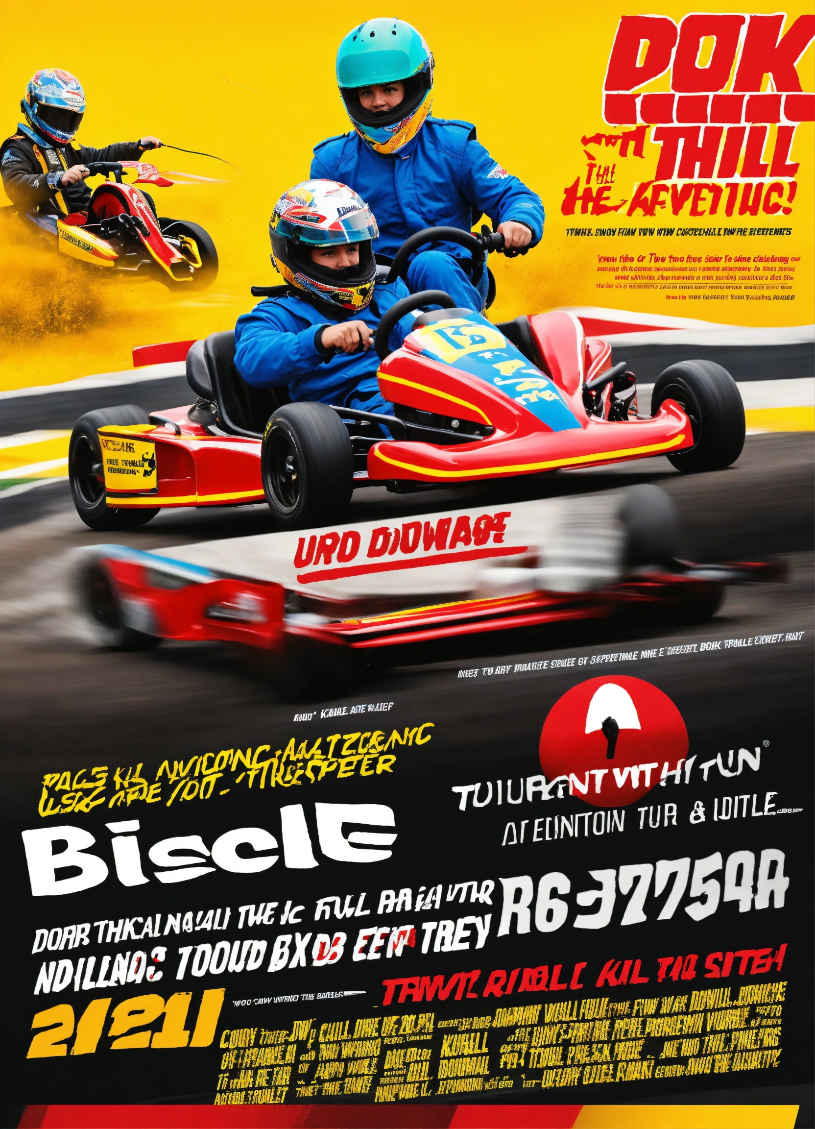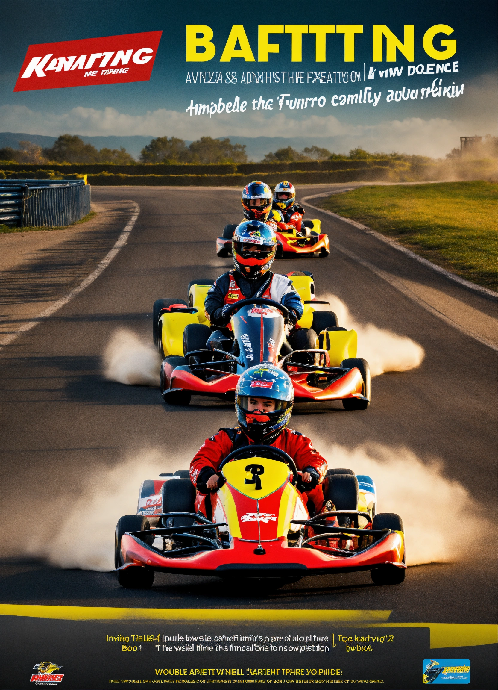 Create a dynamic and visually captivating poster to promote our karting double seater experience, emphasizing family fun and the thrill of racing side by side. enhance and retouch the provided raw images, and incorporate engaging headlines such as "double the fun with our karting double seater" and "double the fun, double the speed, double the excitement." the body copy should convey the excitement and safety of the experience while encouraging customers to book their adventure. finish with a compelling call to action, inviting them to book now and not miss out on the ultimate two-person thrill ride.