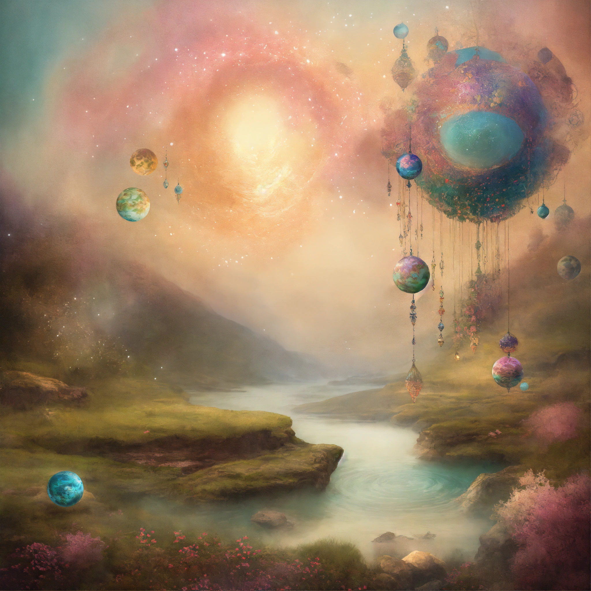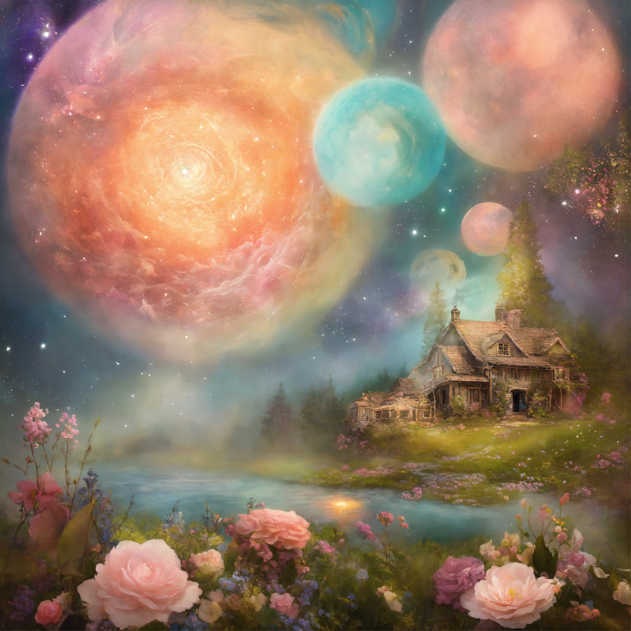 Shabby chic dreamy mist pastel junk journals divine kreatures on other planets swirling magical fairytale abstract art style