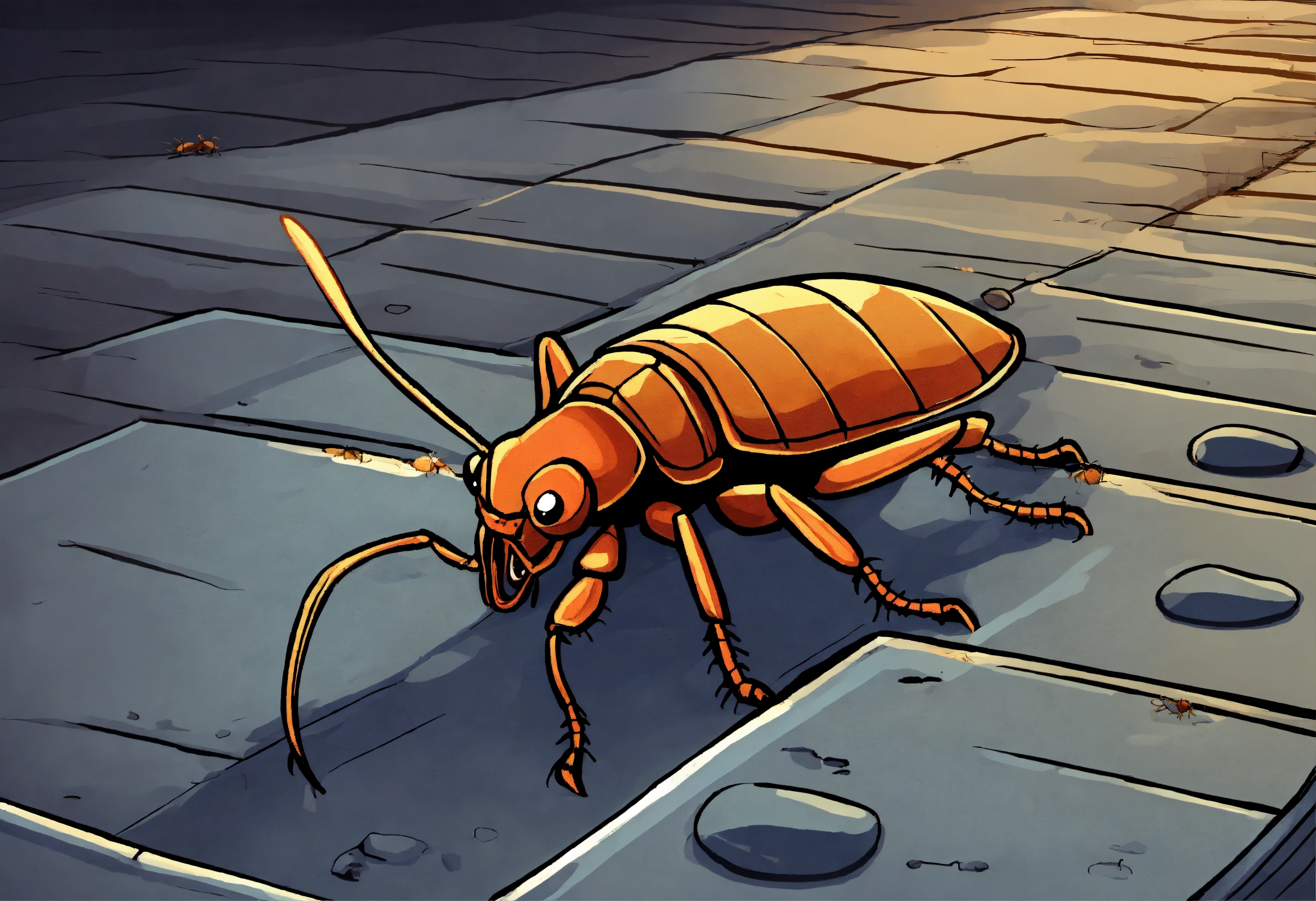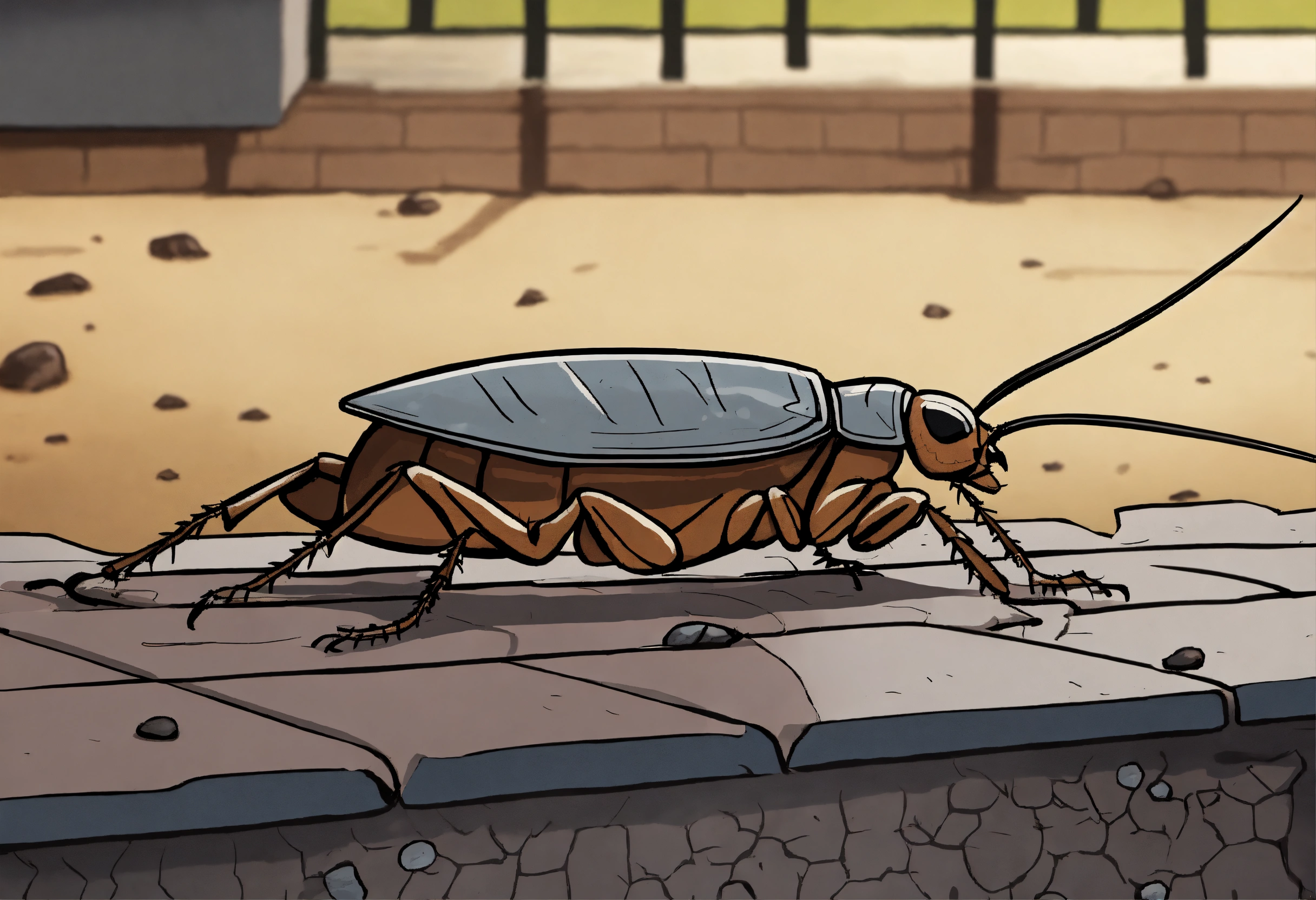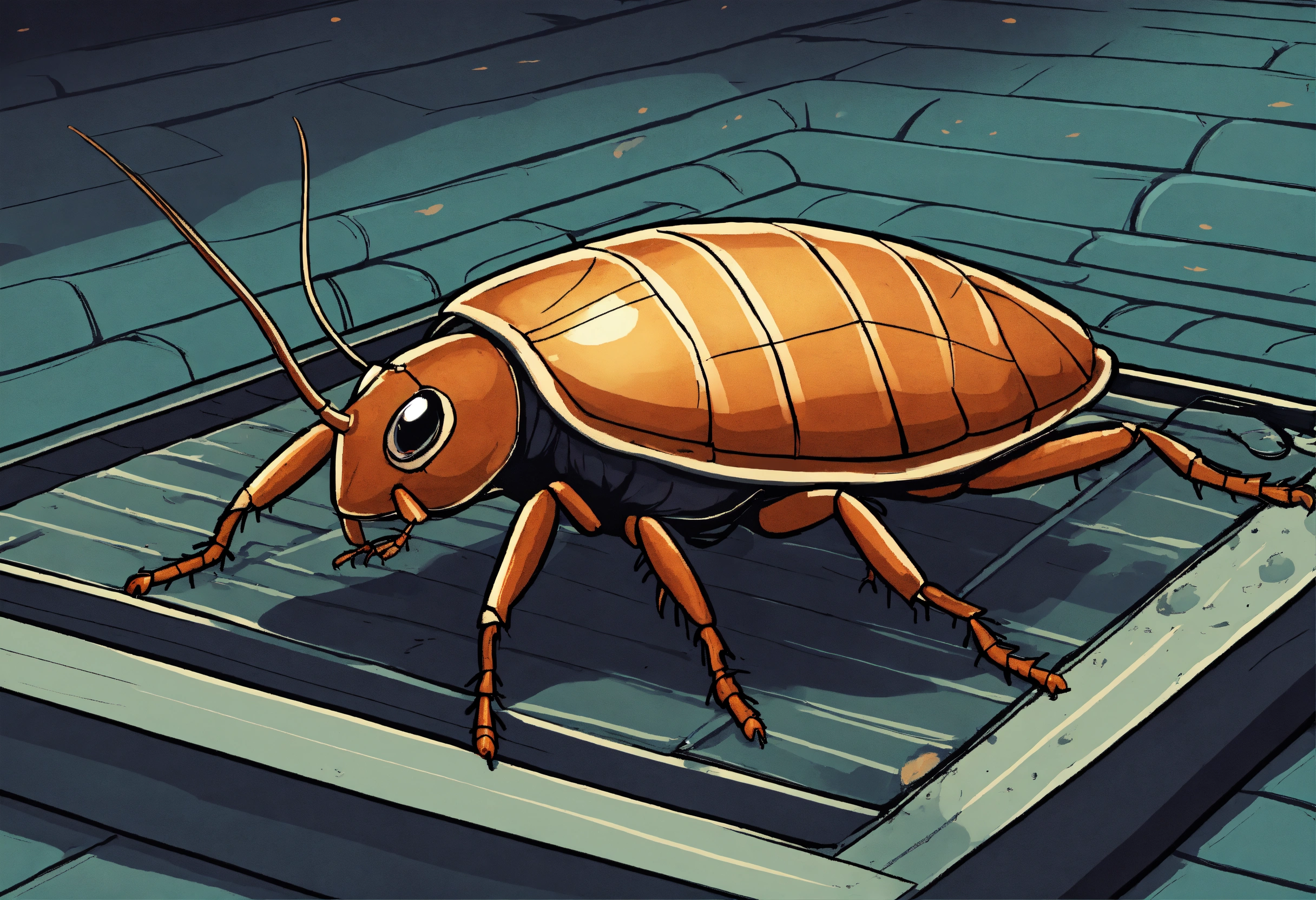 A cockroach crawling out of the sewer grate