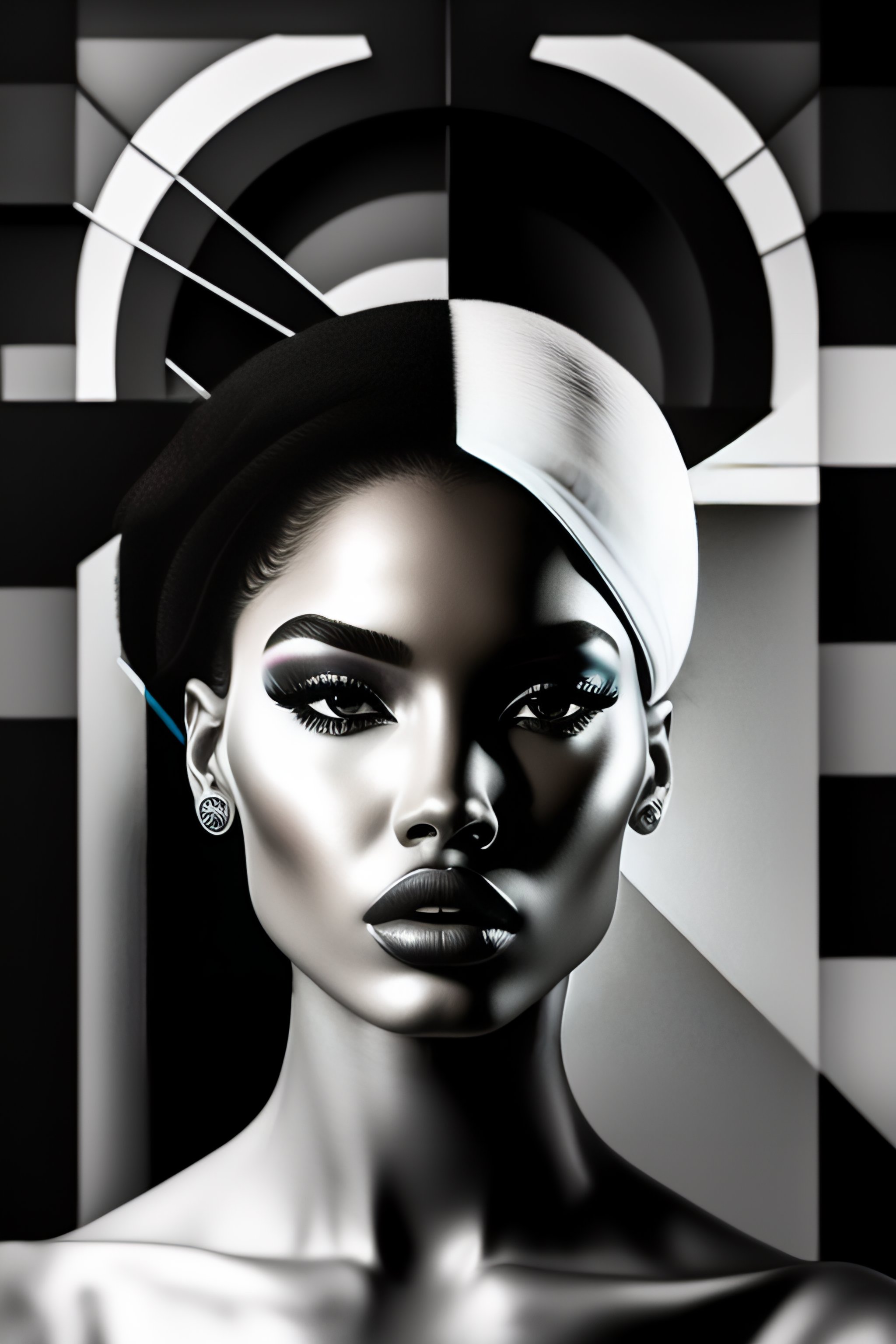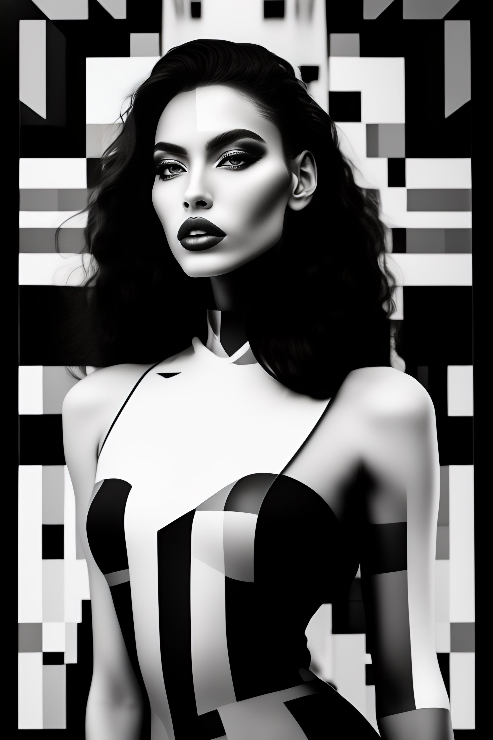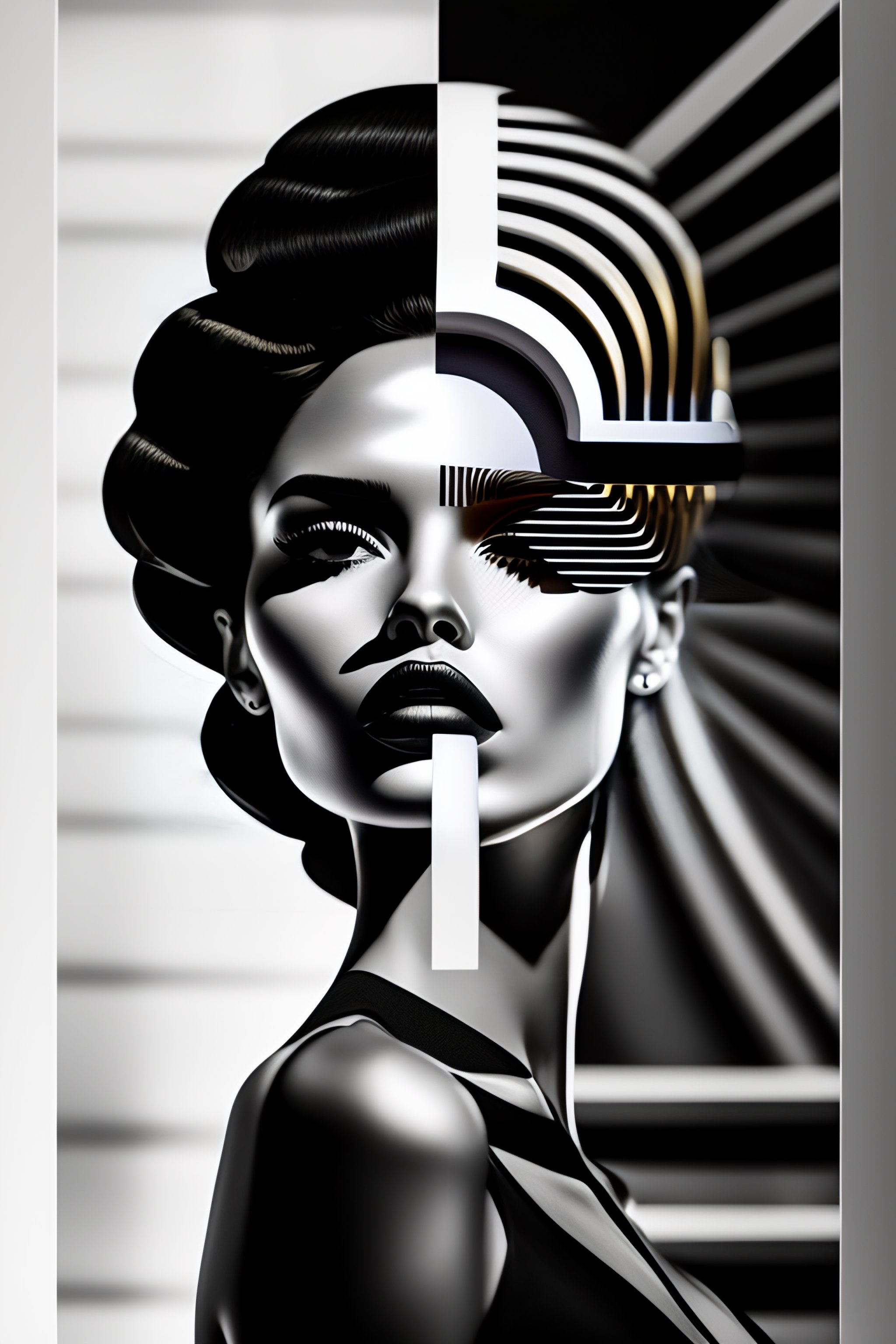 Op art, hyper-européen female model in the streets of new-york, collage, goldblocks, brutalism, graffiti black and white portrait by christian hilfgott brand, behance contest winner, pop surrealism, behance hd, dc comics, reimagined by industrial light and magic