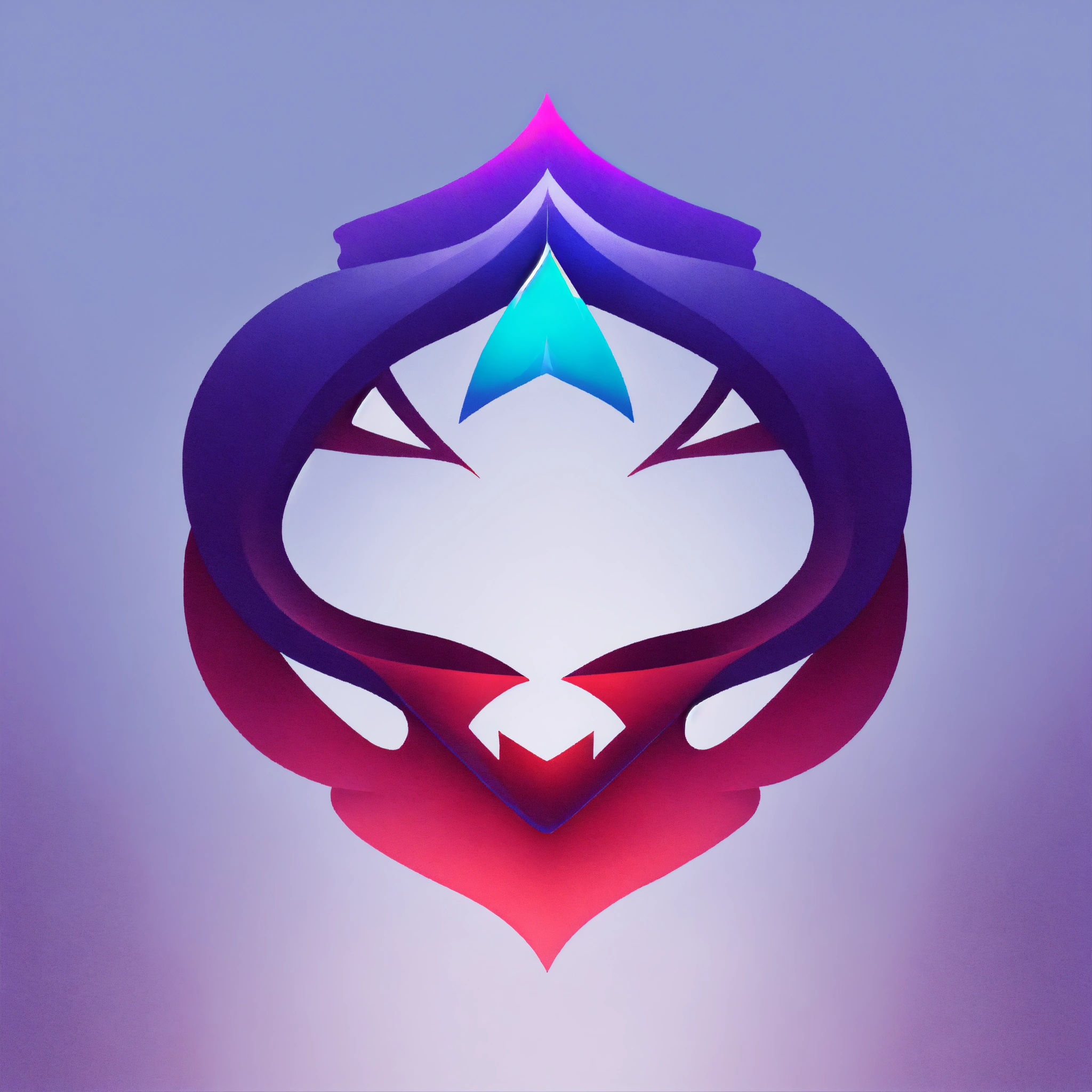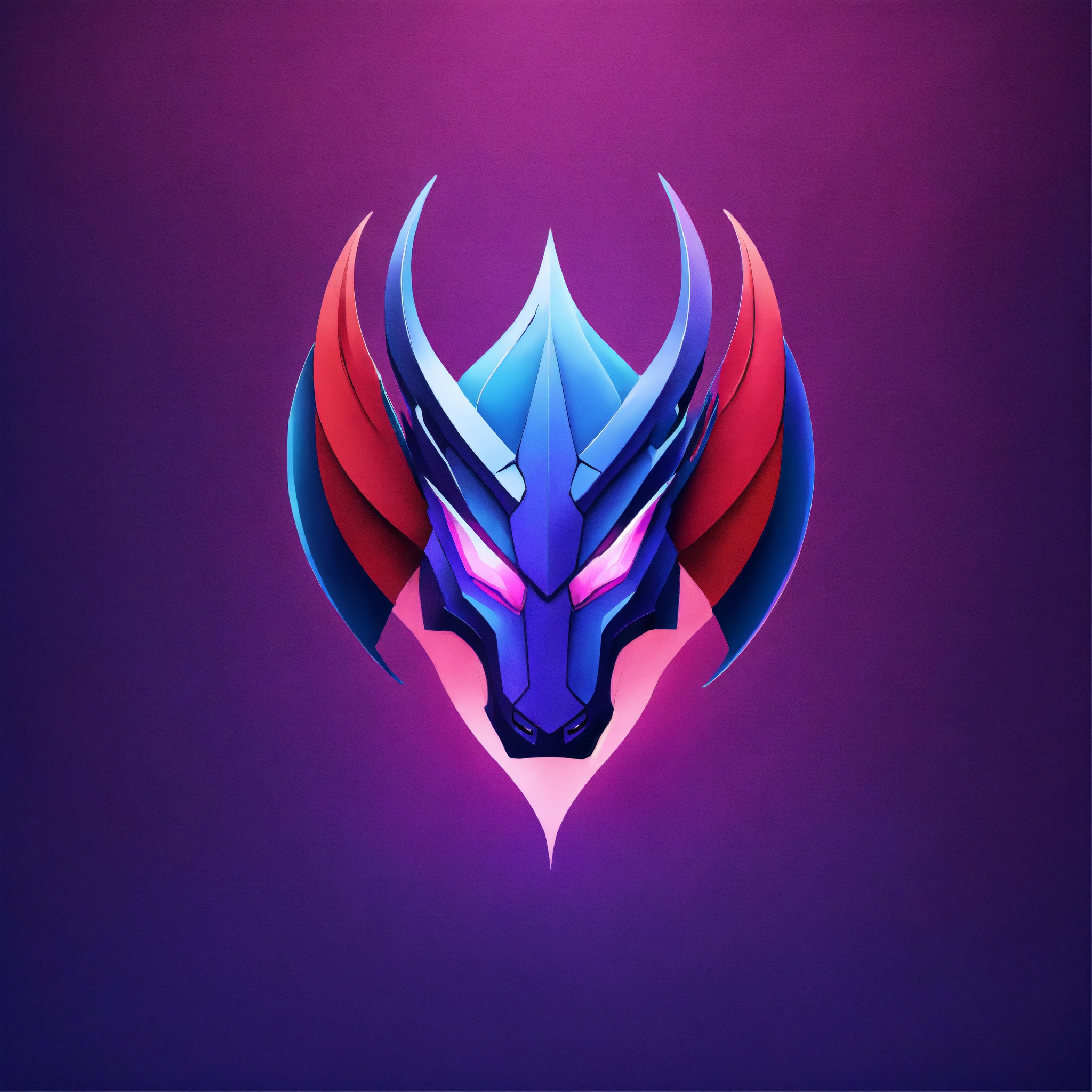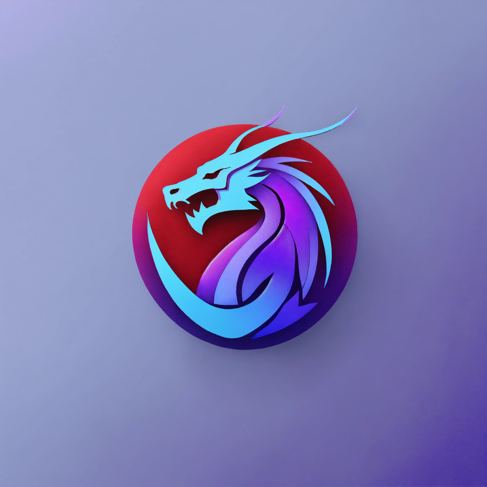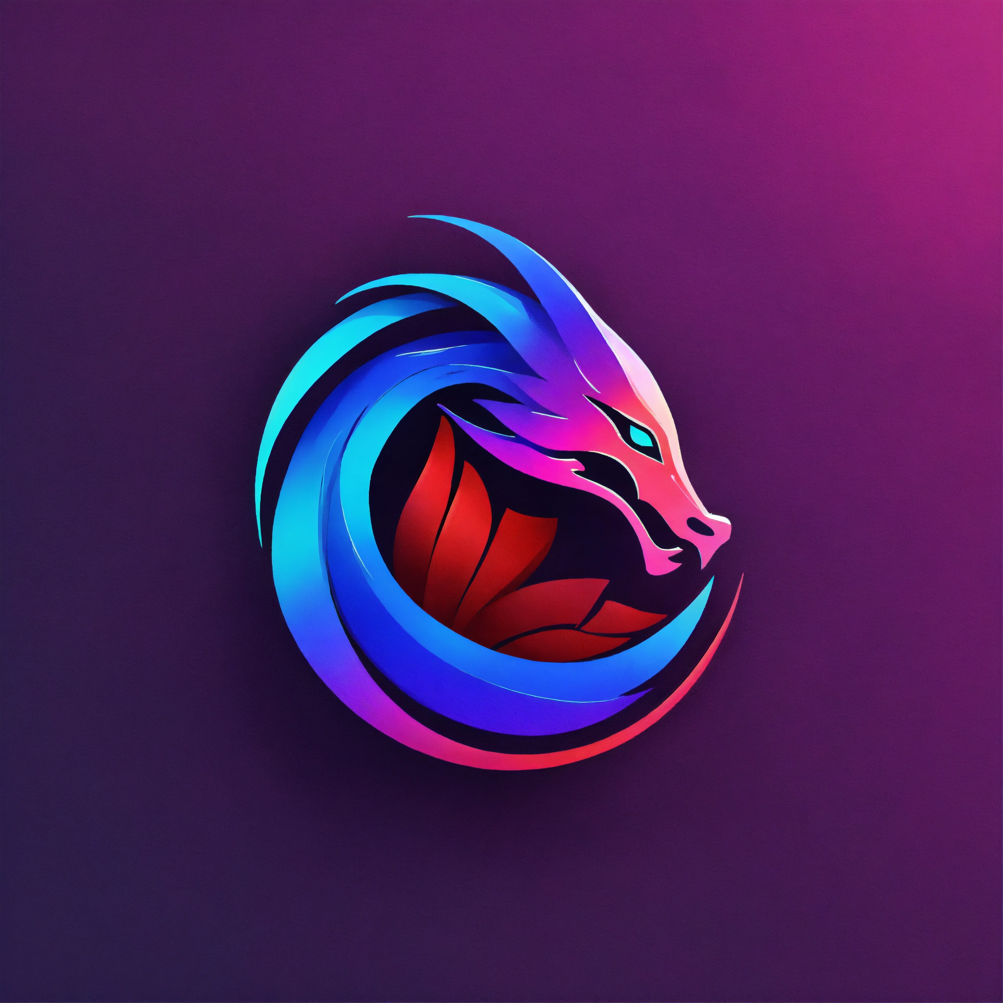 Simple symmetrical dragon logo with purple, red, bright blue gradient, logo design, modern, minimalistic, 8k
