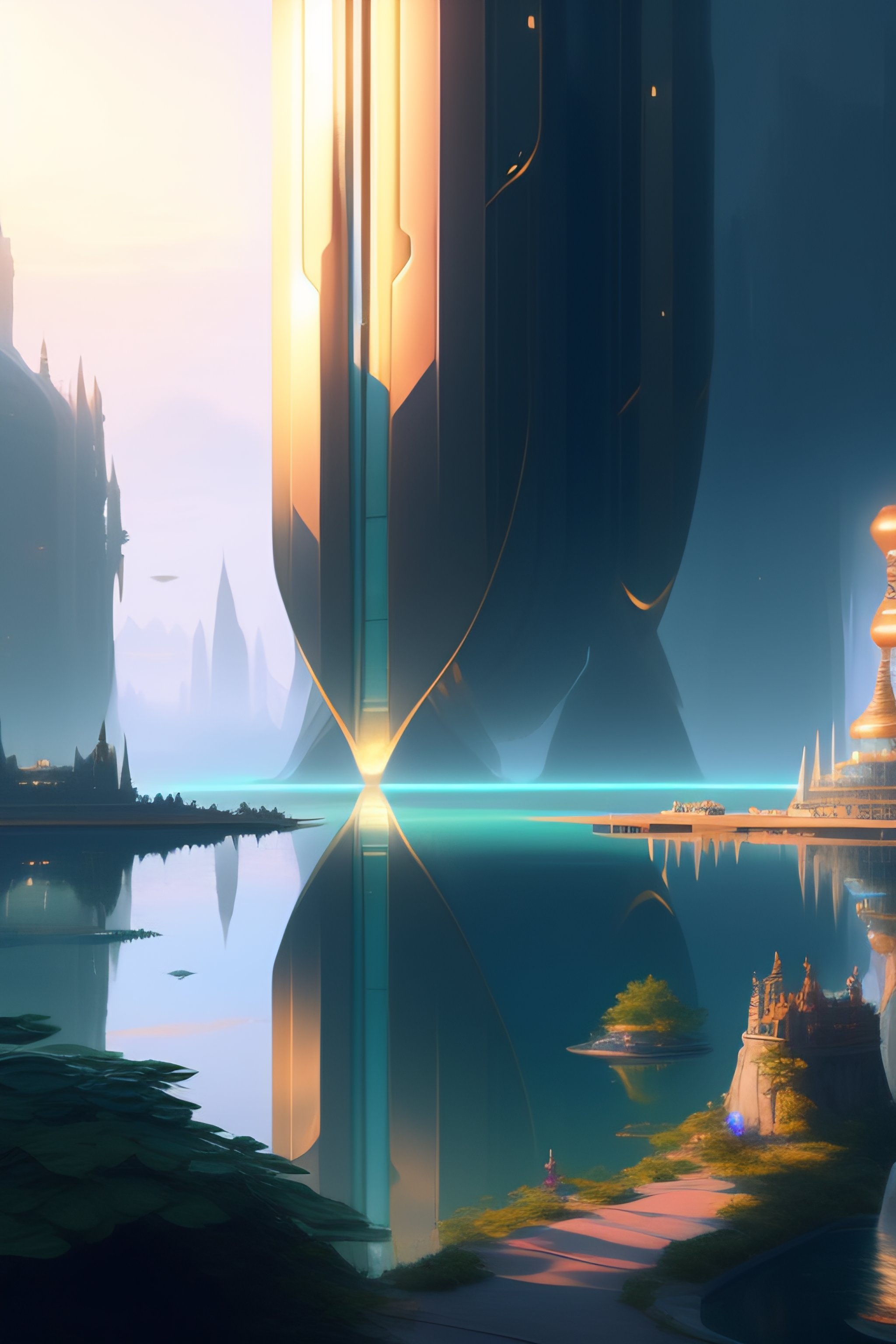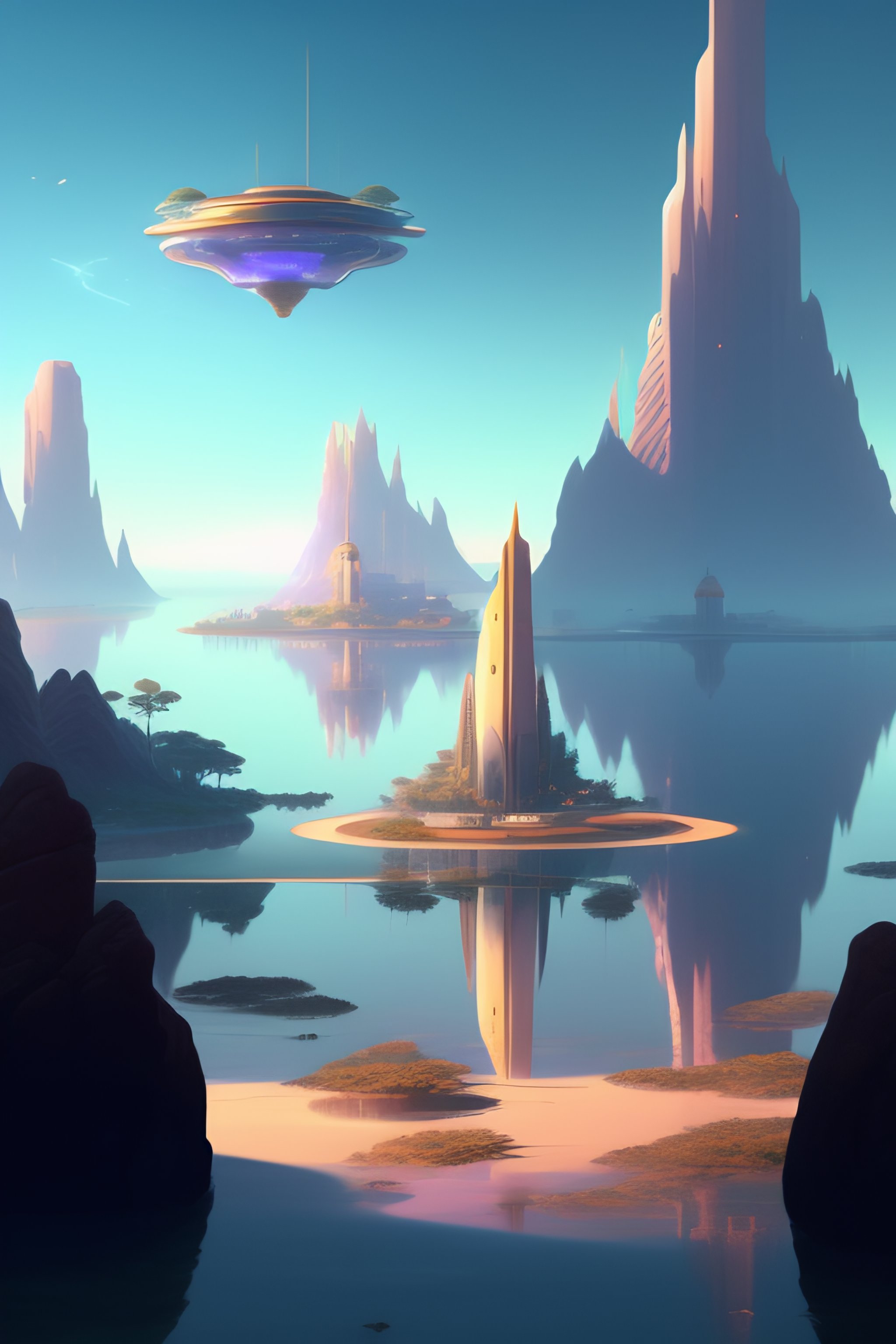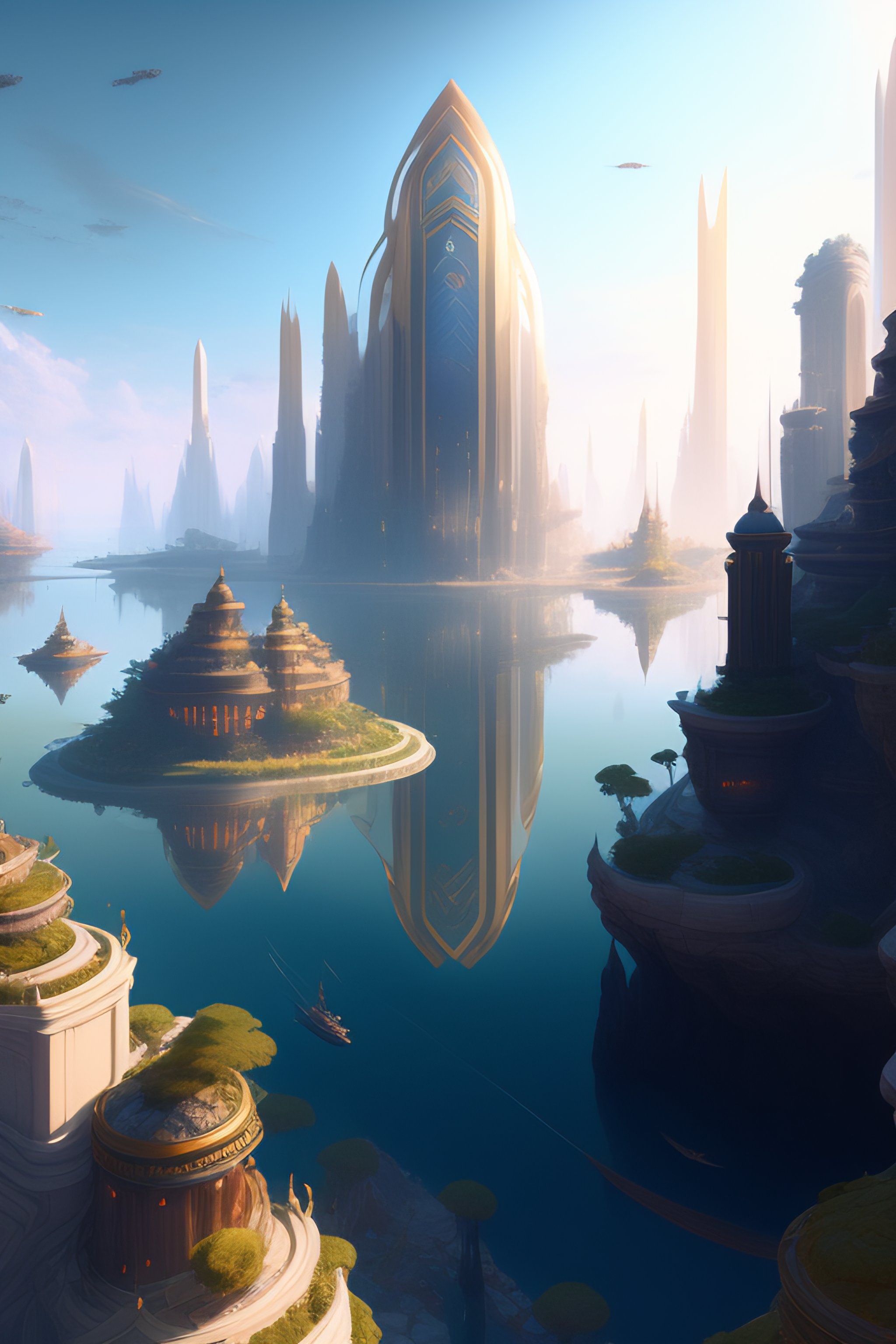 A central floating island city with many other floating islands in the distance by stanley artgerm lau, greg rutkowski, alphonse mucha, concept art, character design, trending on artstation, rey tracing, epic fantasy, 8 k, 4 k, beautiful lighting, painting, rule of thirds