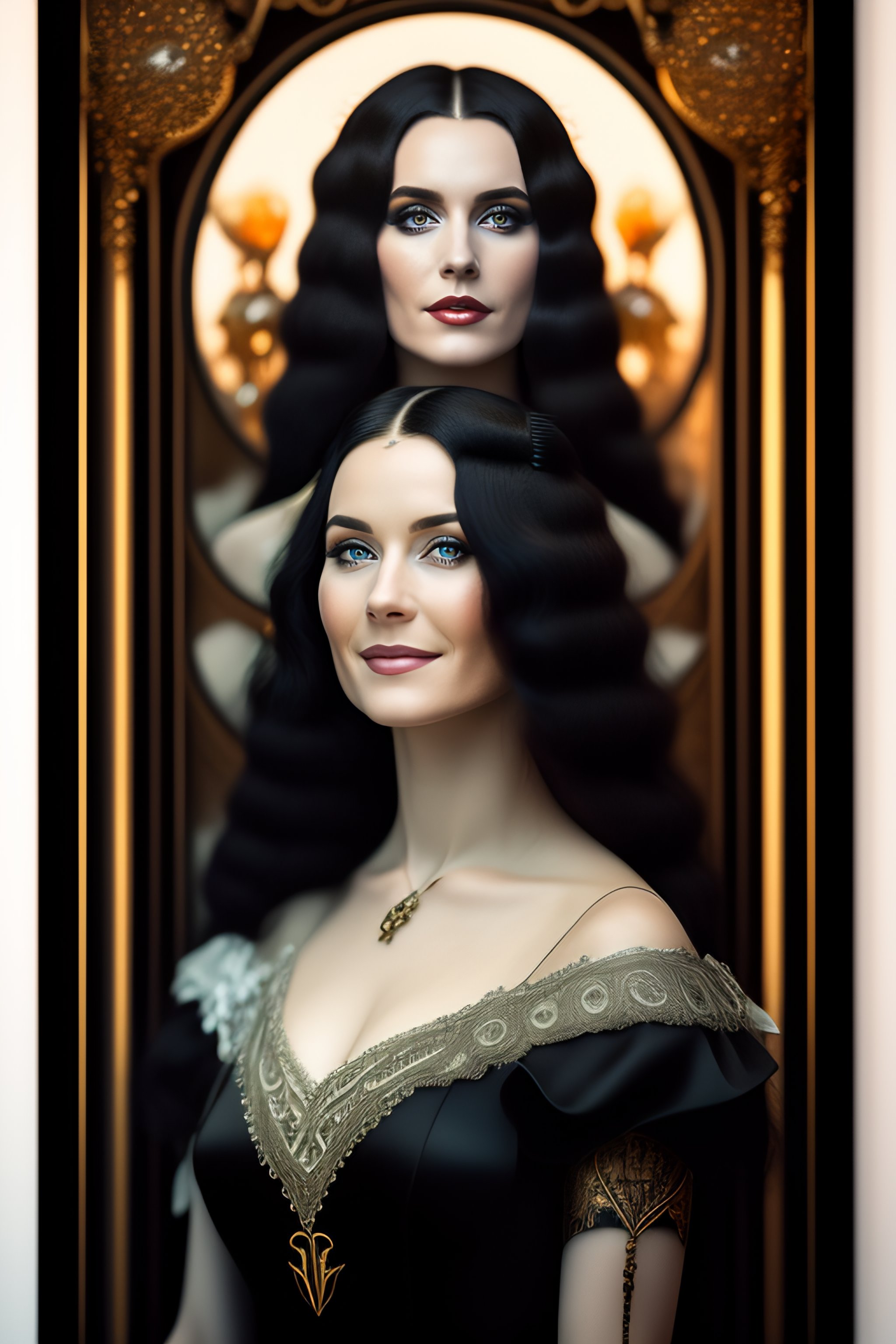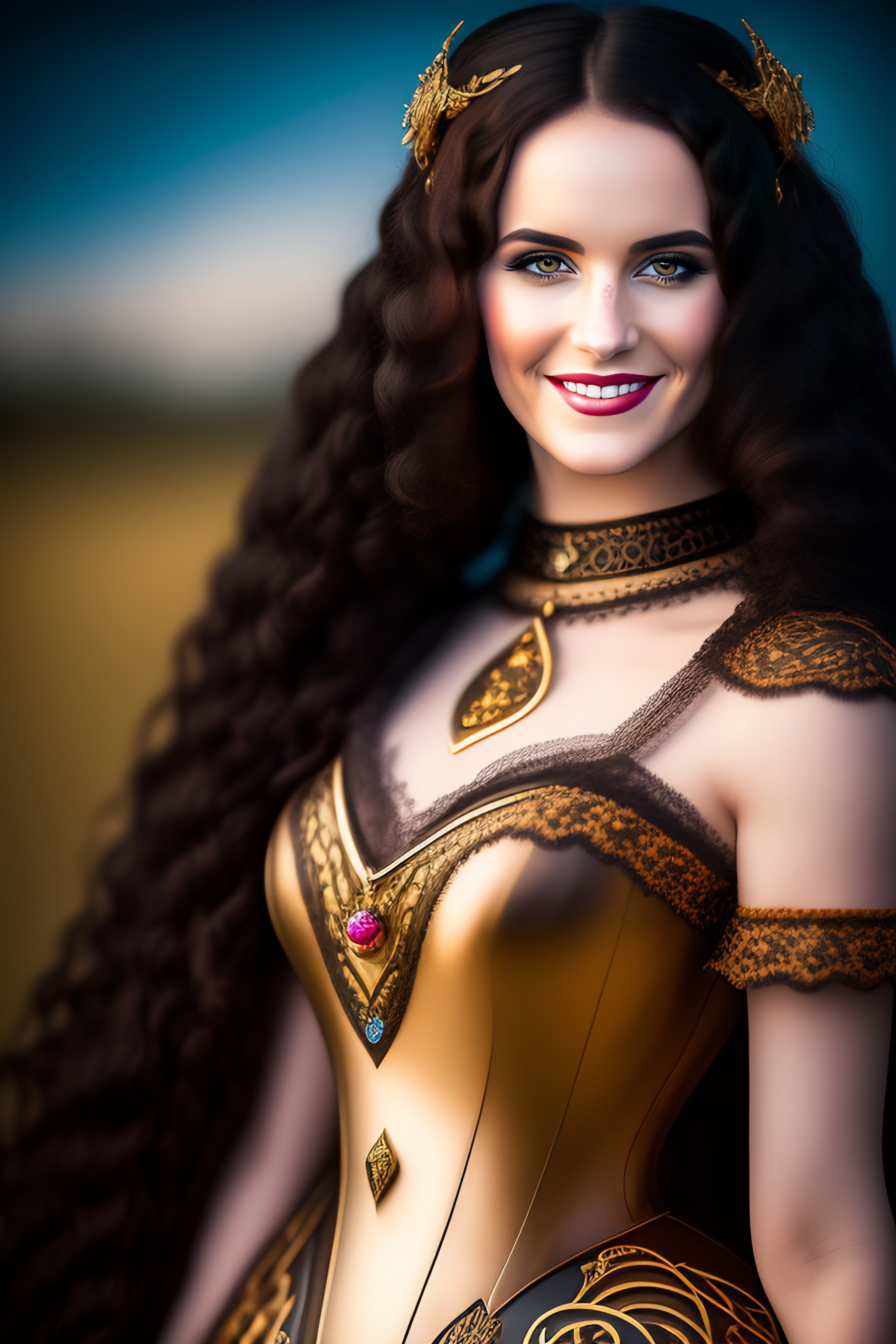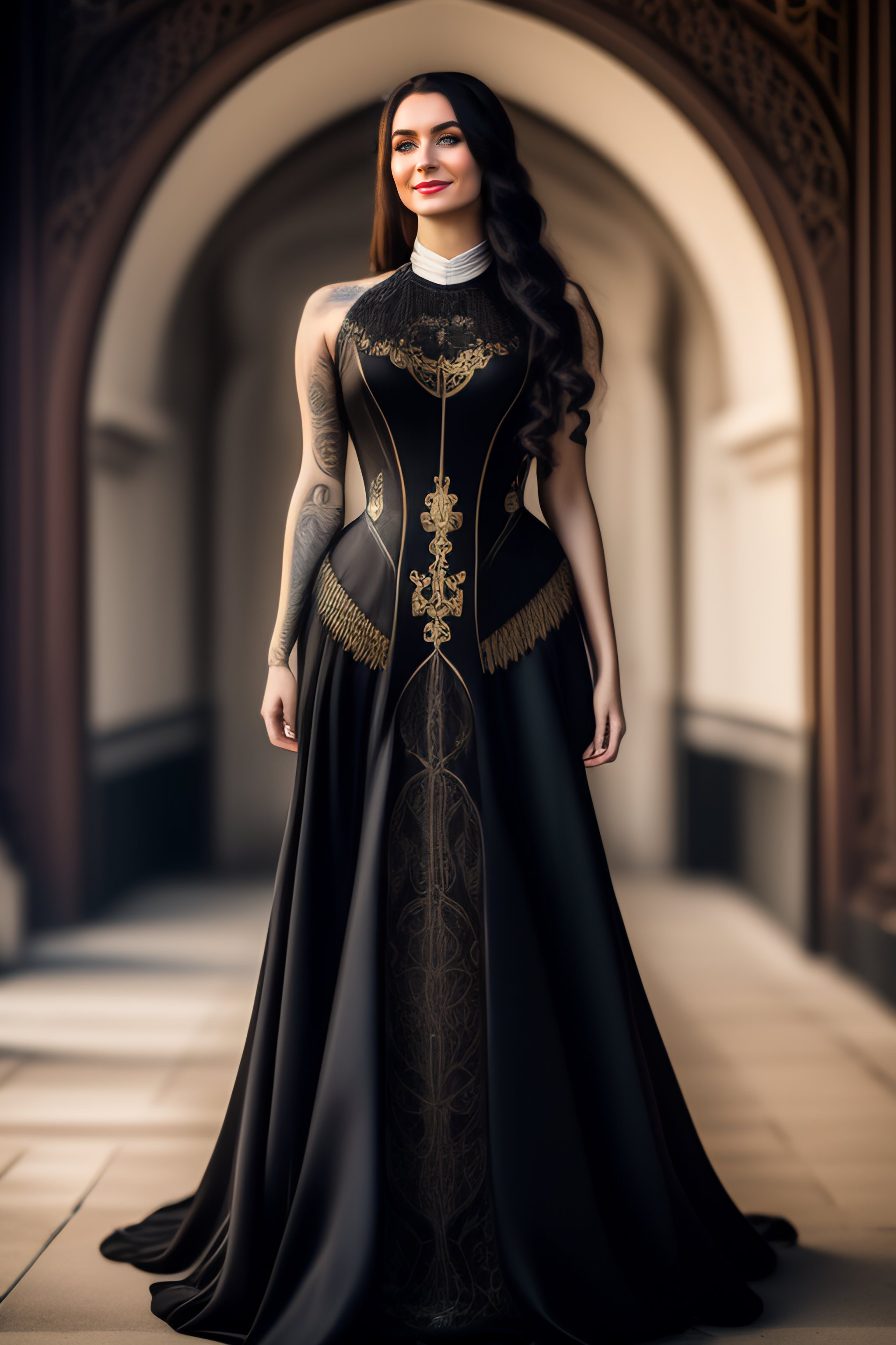Hazel moore smile, black metal girl, realistic detailed, beautiful gorgeous, art nouveau dress, proportional body, nikon 70-200mm f/2.8g, art by gustave courbet