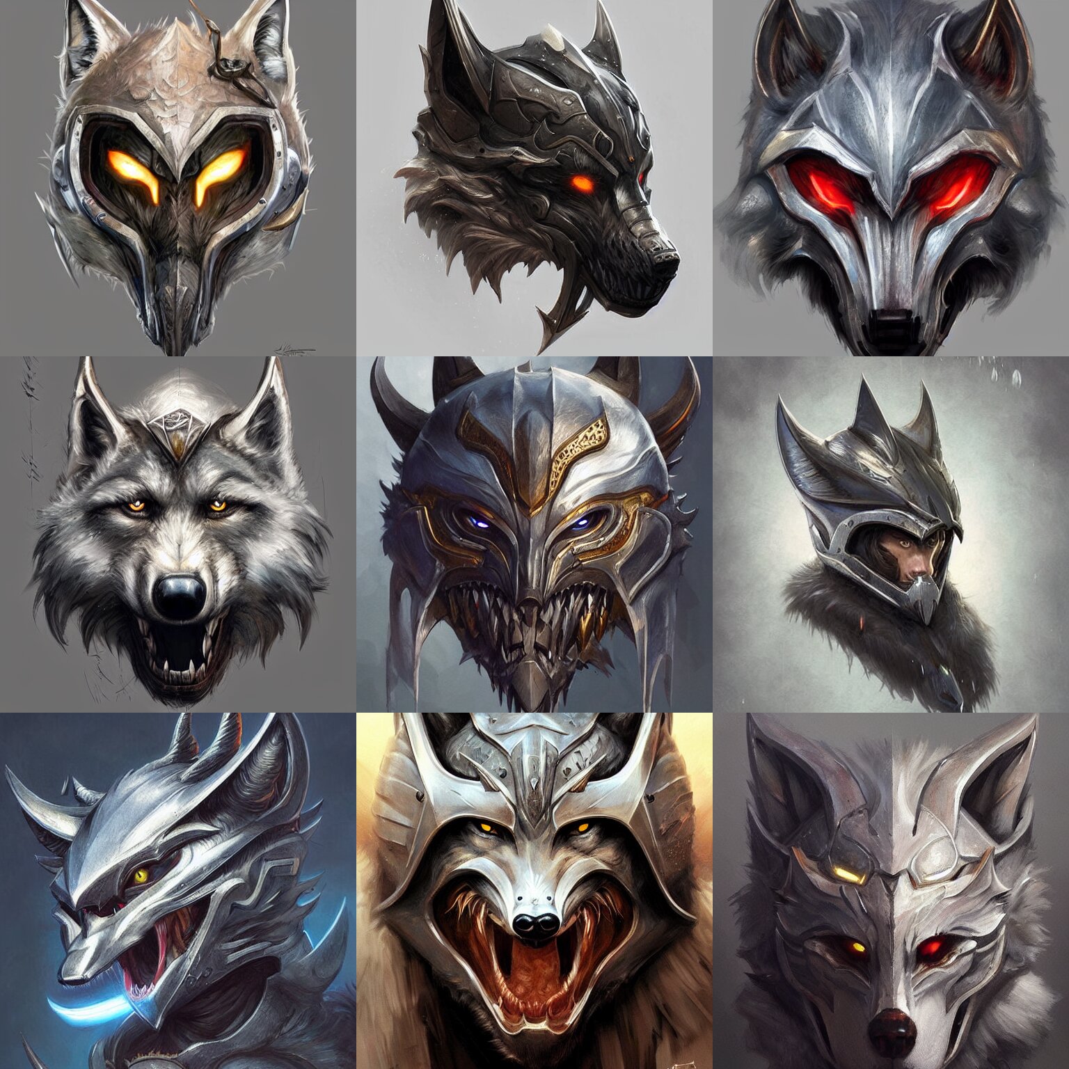 Wolf helmet, d&d, fantasy, highly detailed, digital painting, trending on artstation, concept art, sharp focus, illustration, art by artgerm and greg rutkowski and magali villeneuve