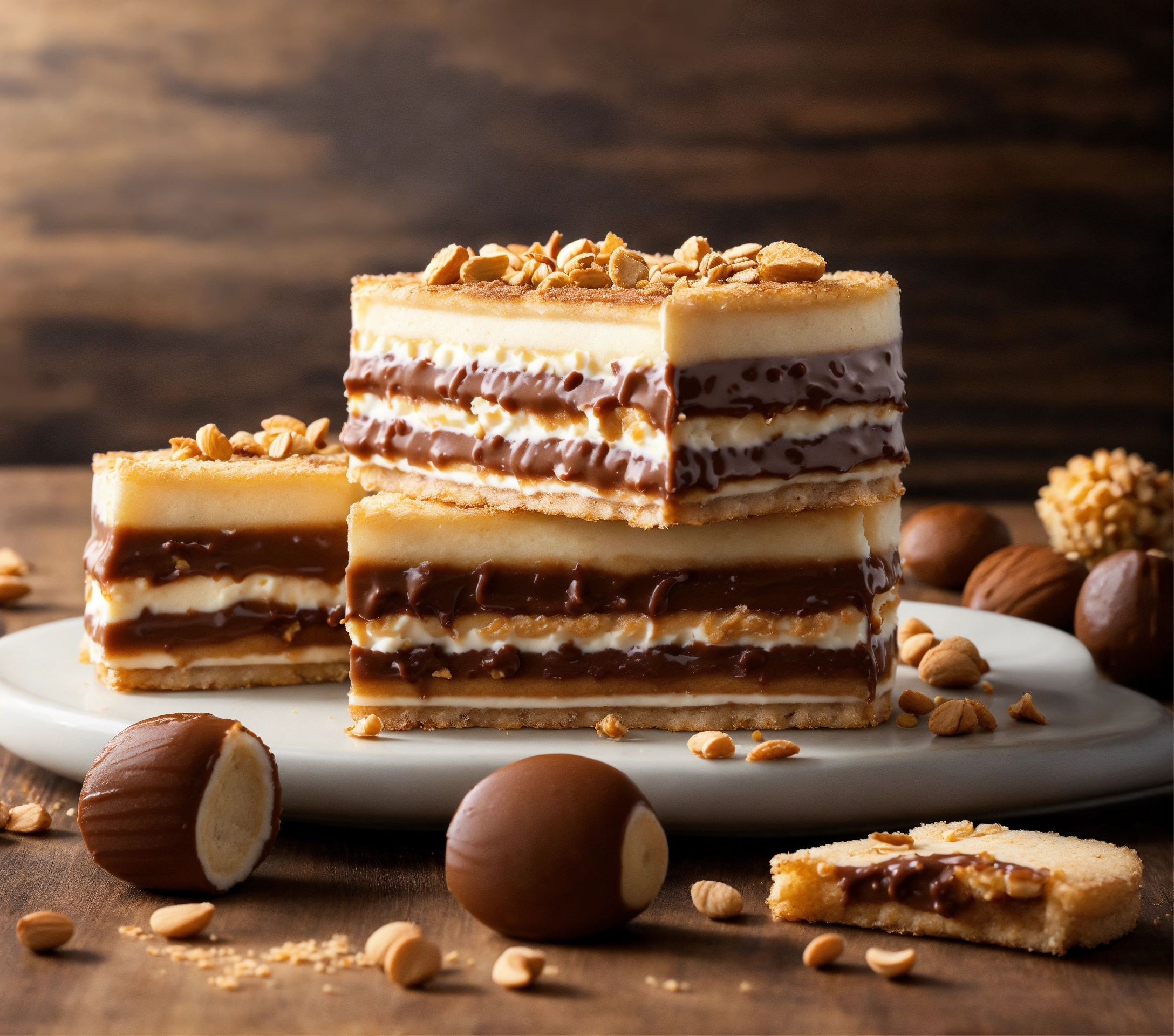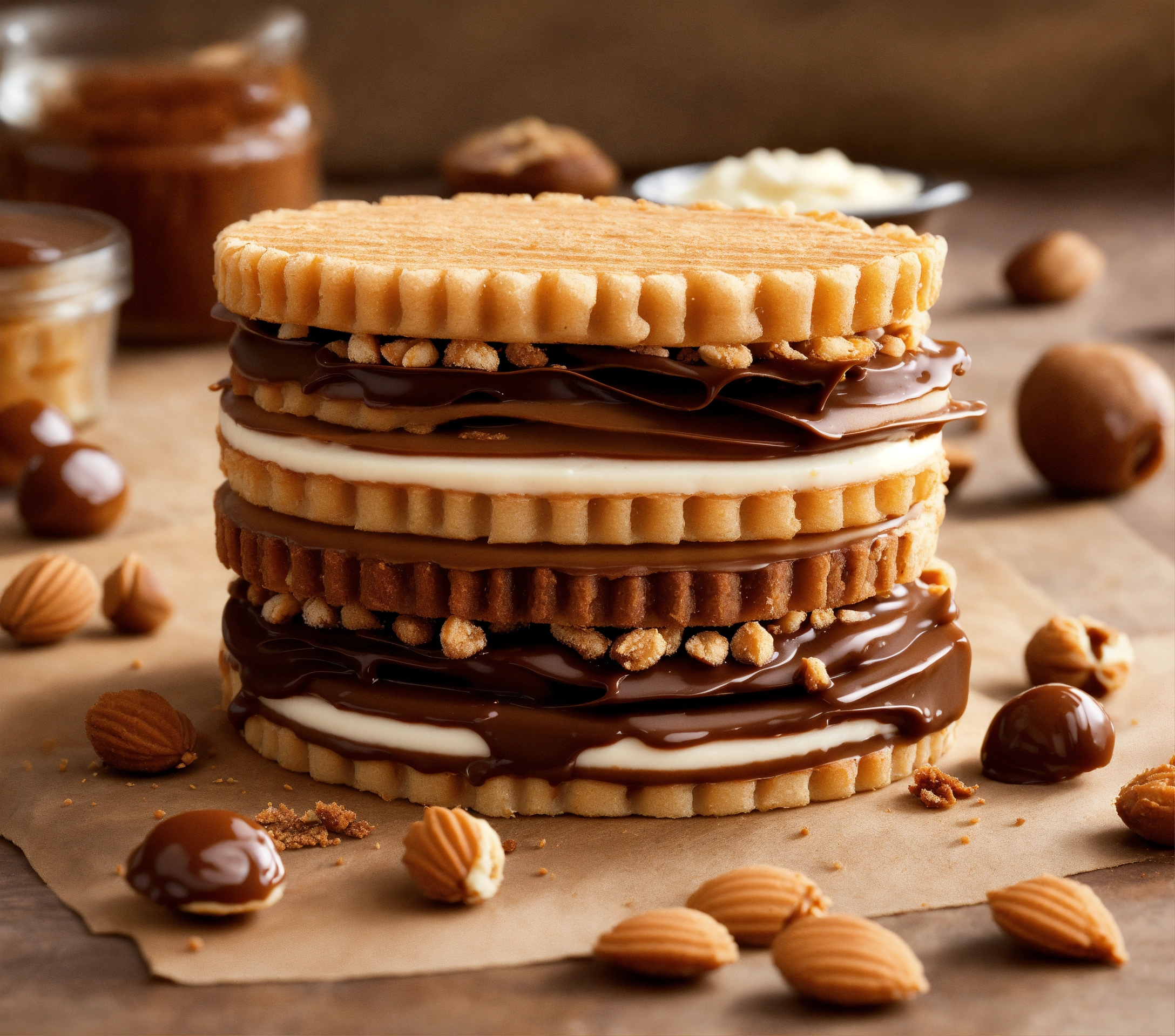 Crispy 4 wafers layers filling 3 layers of hazelnut spread can cut to 5 bites use for packaging design