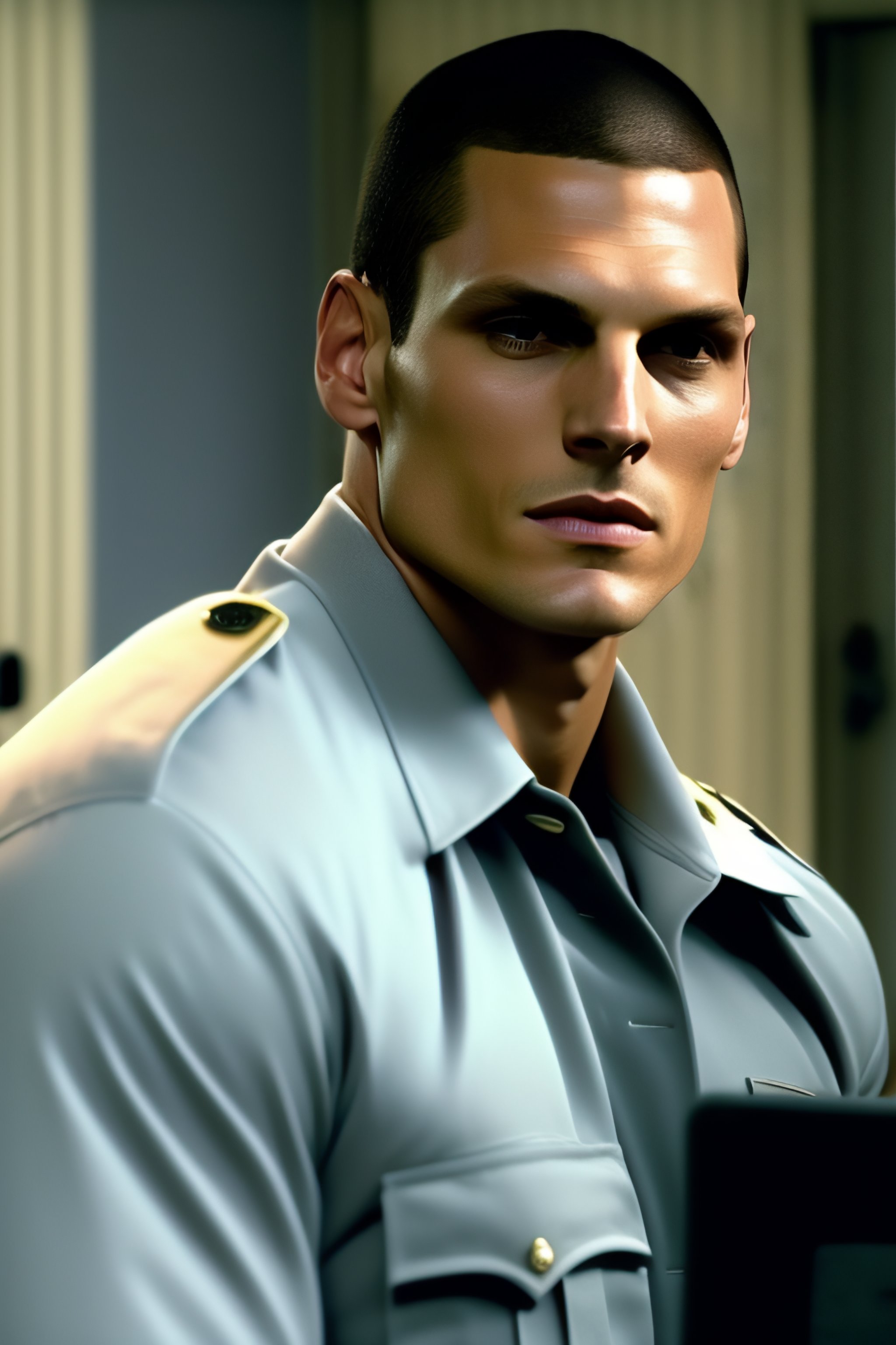Michael scofield in the prison break series in a prisoner's uniform tries to escape from an authentication system