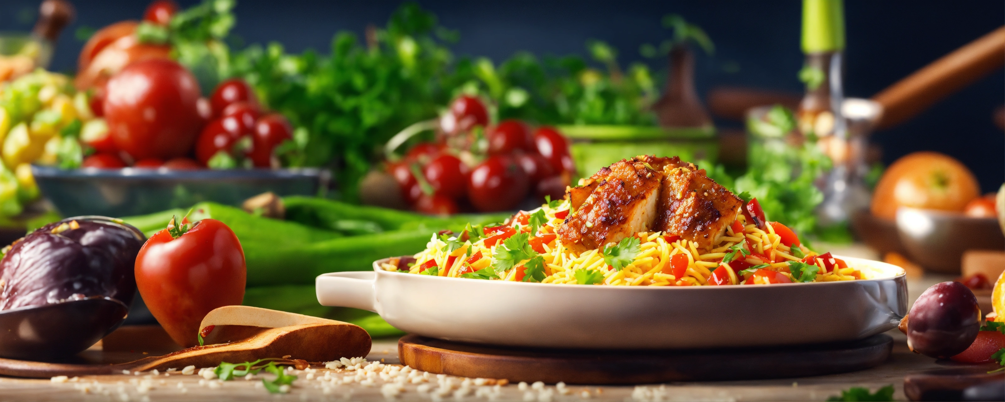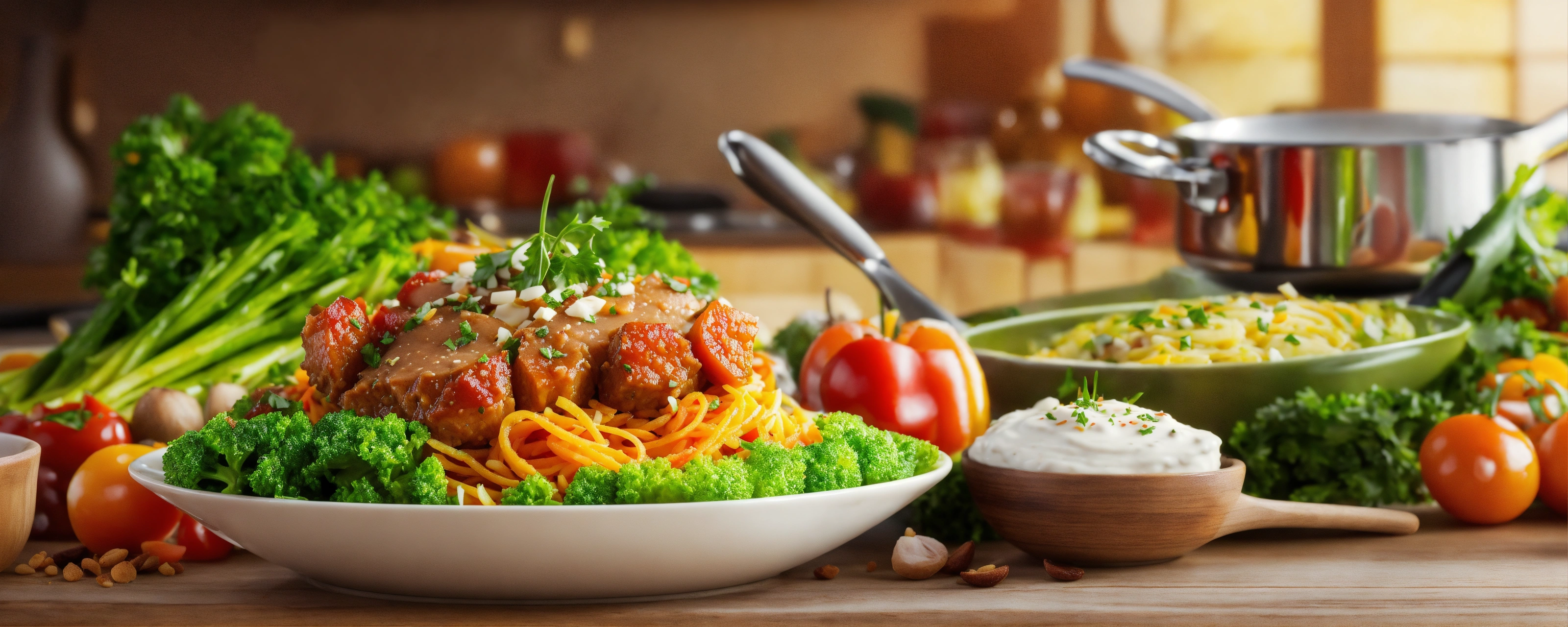 Tasty recipes cooking channel include in the banner appetizing photos of the food you are cooking and kitchen tools, . 3d, ((best quality))), ((masterpiece)), ((high detail1.3)), photo realistic 8k high quality photo