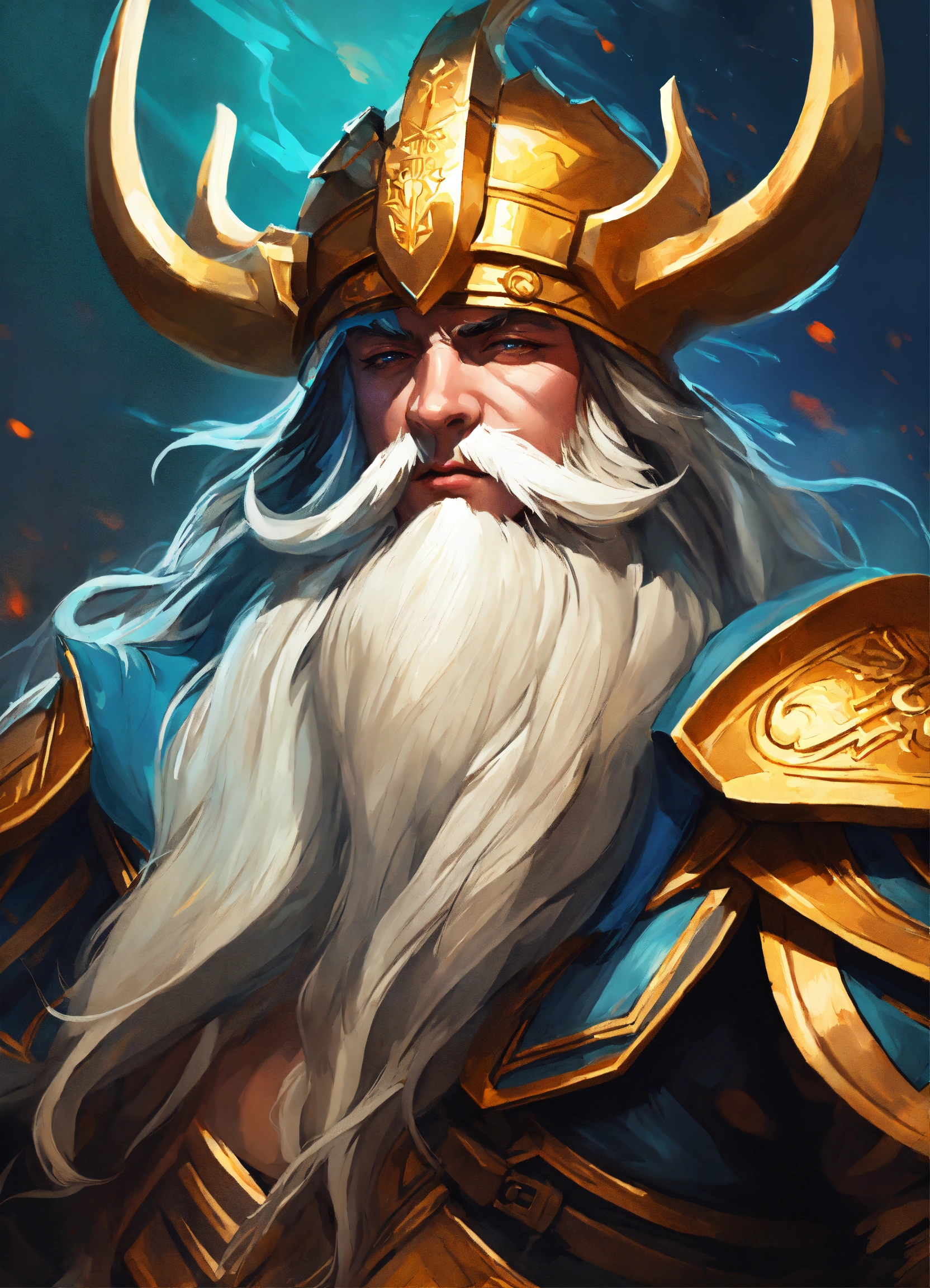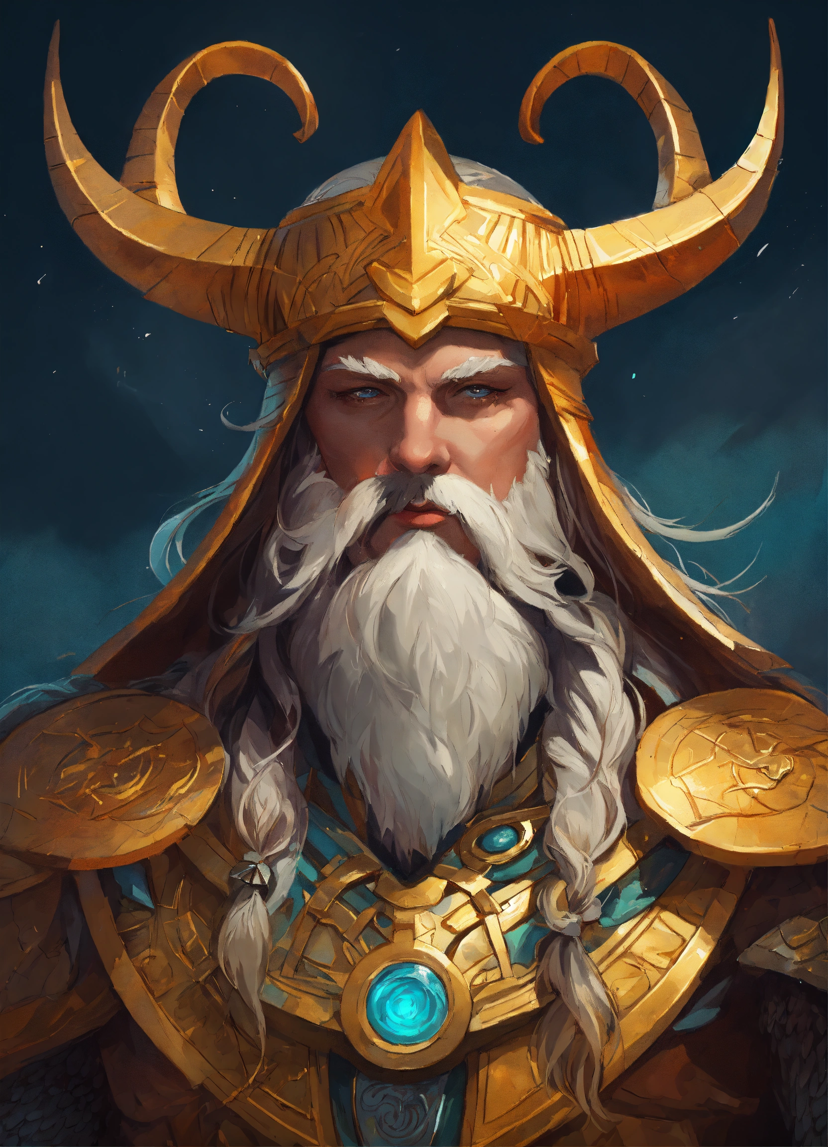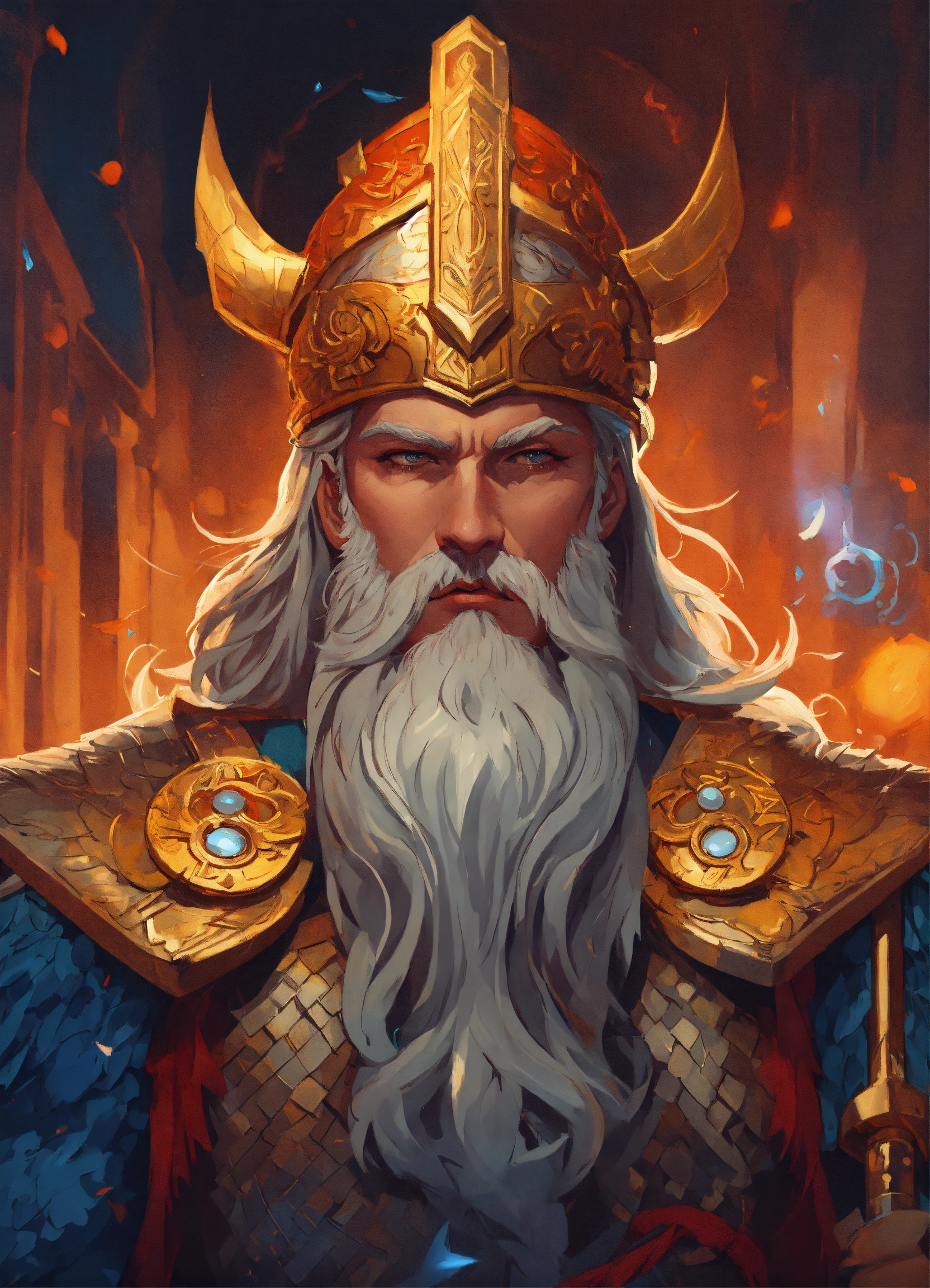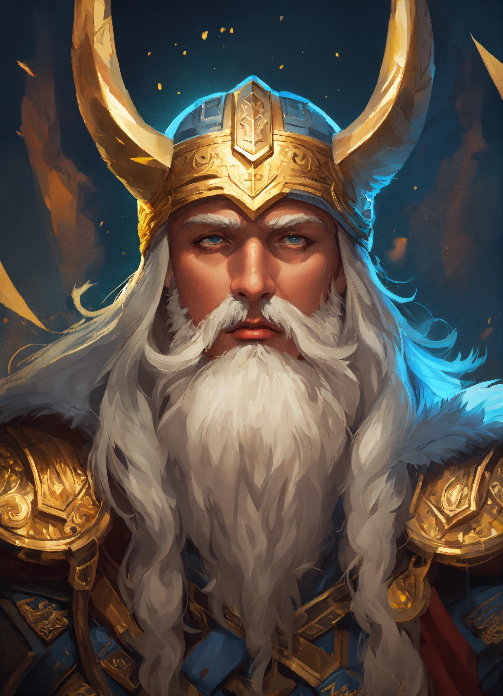 Valhalla god odin, cartoon oil paint, 2d illustration style, sharp focus, bright color, digital paint character design, trending on artstation, high details, simple lines, art by josé luis ágreda and camilla d'errico