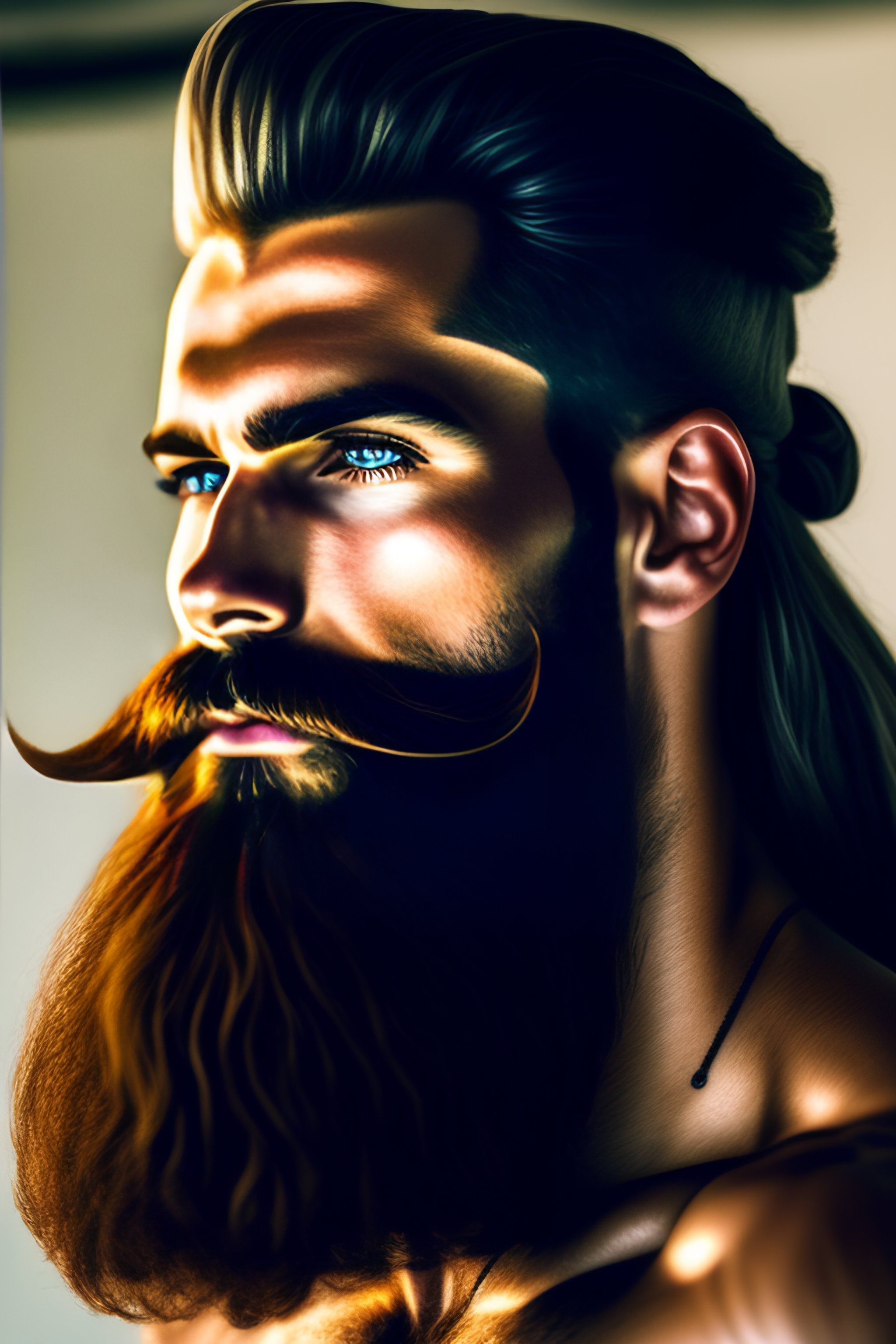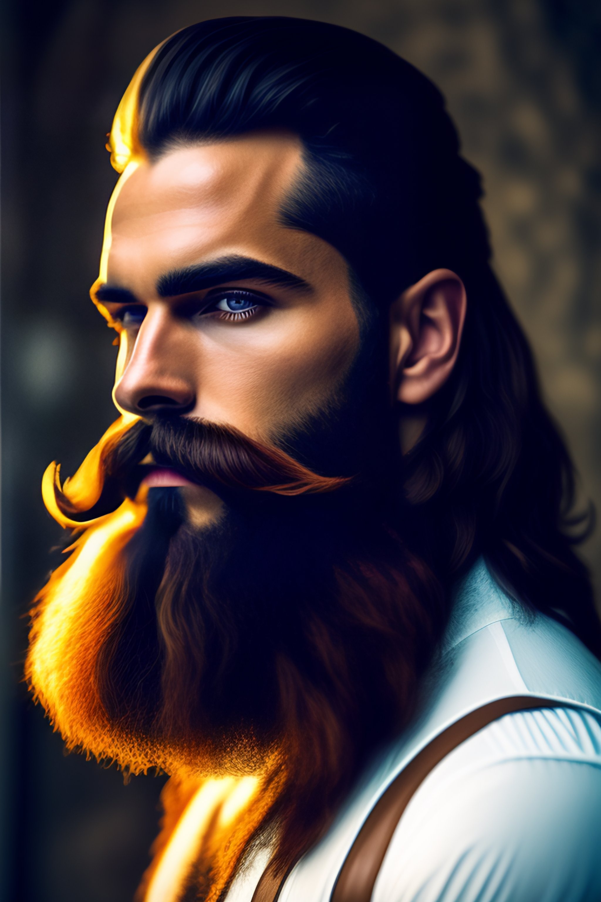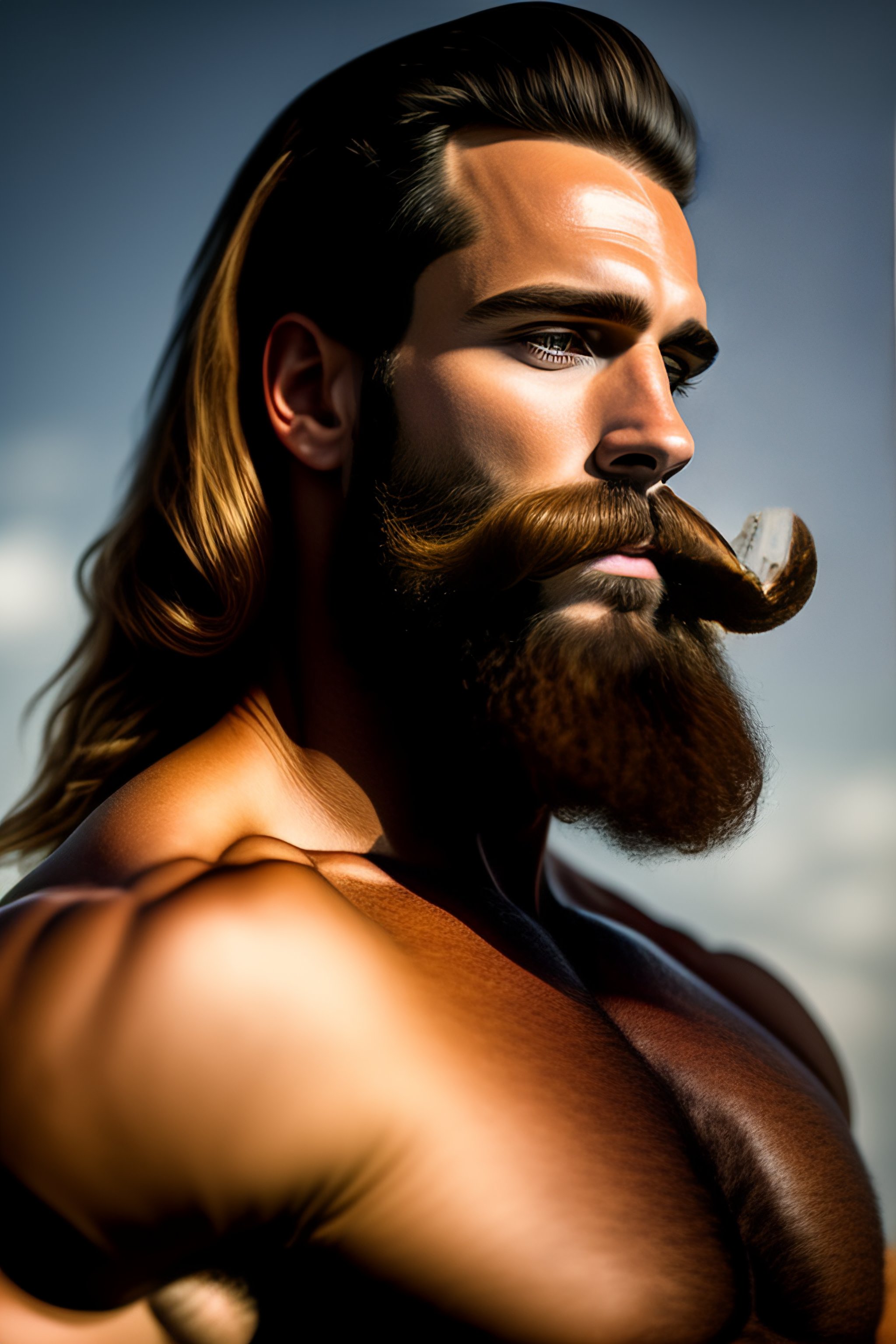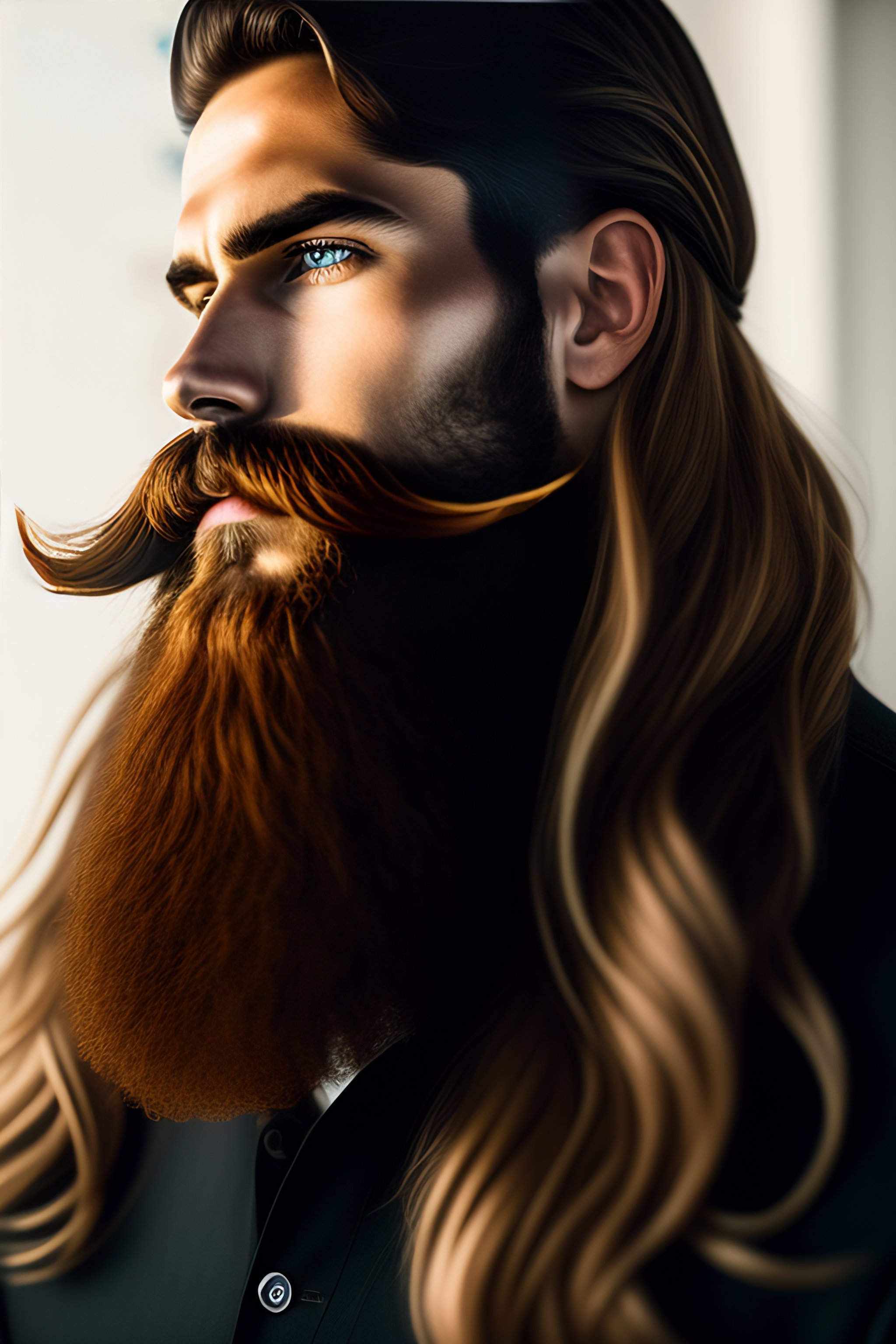 Hairy model handlebar mustache long beard hunk