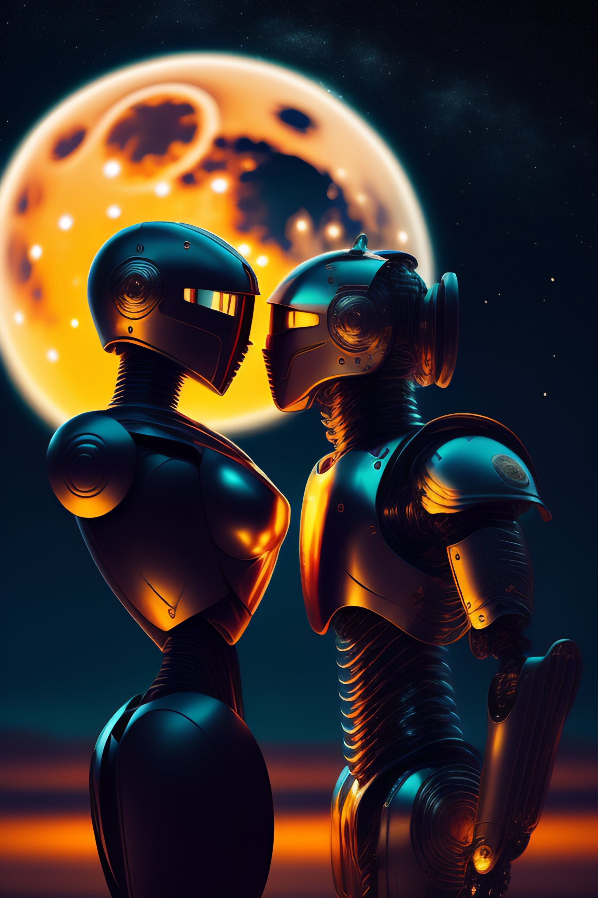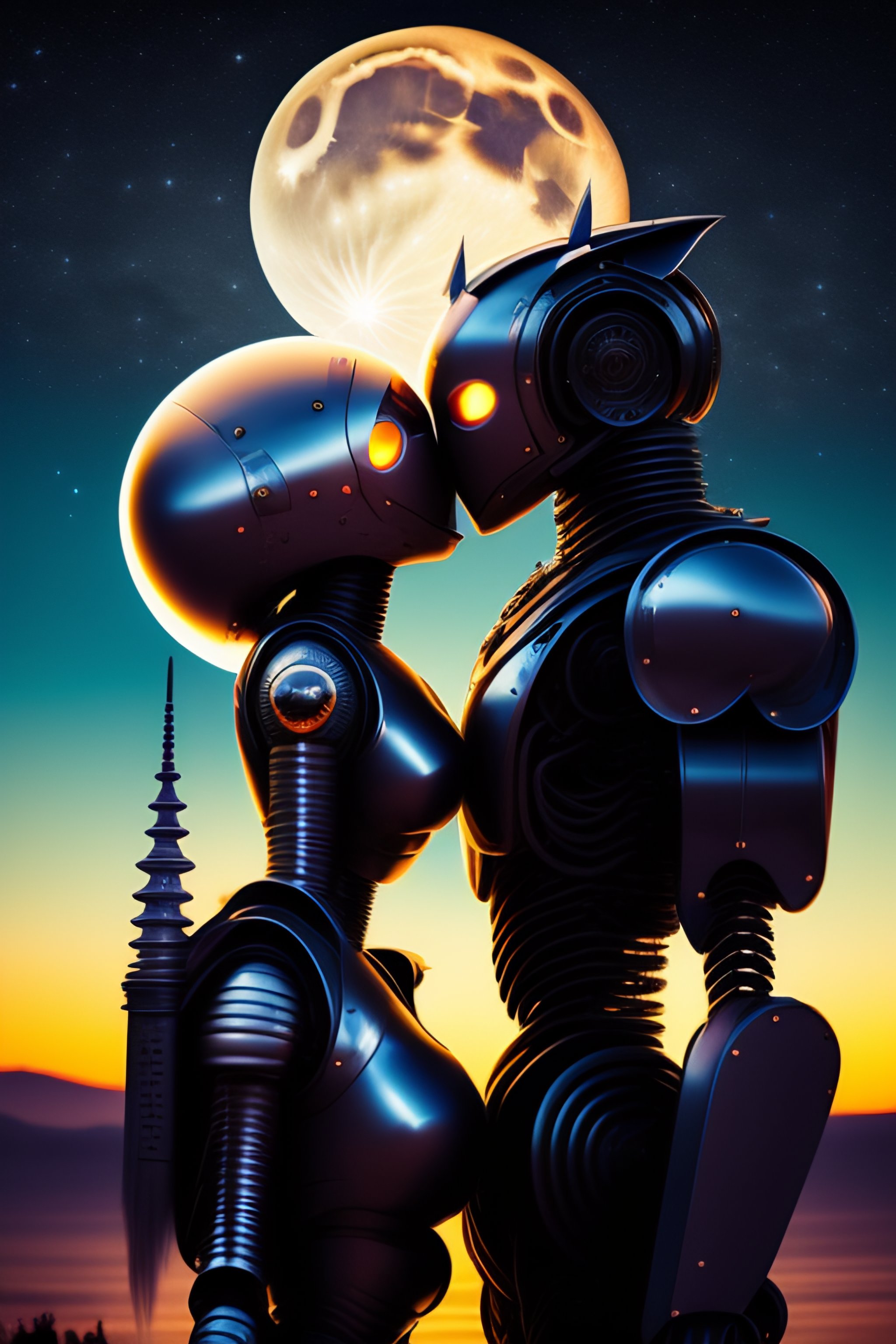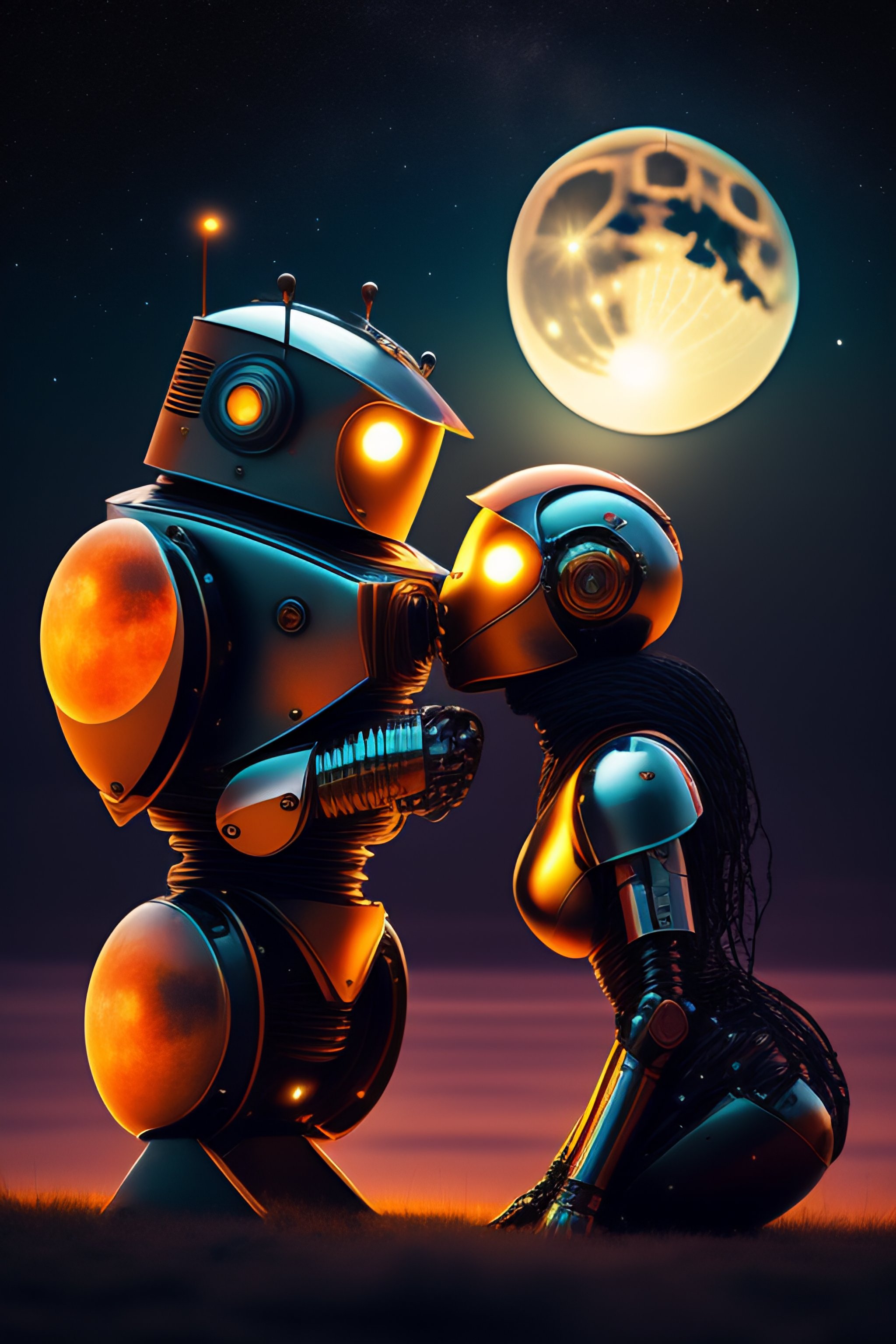 Robot kiss under full moon light