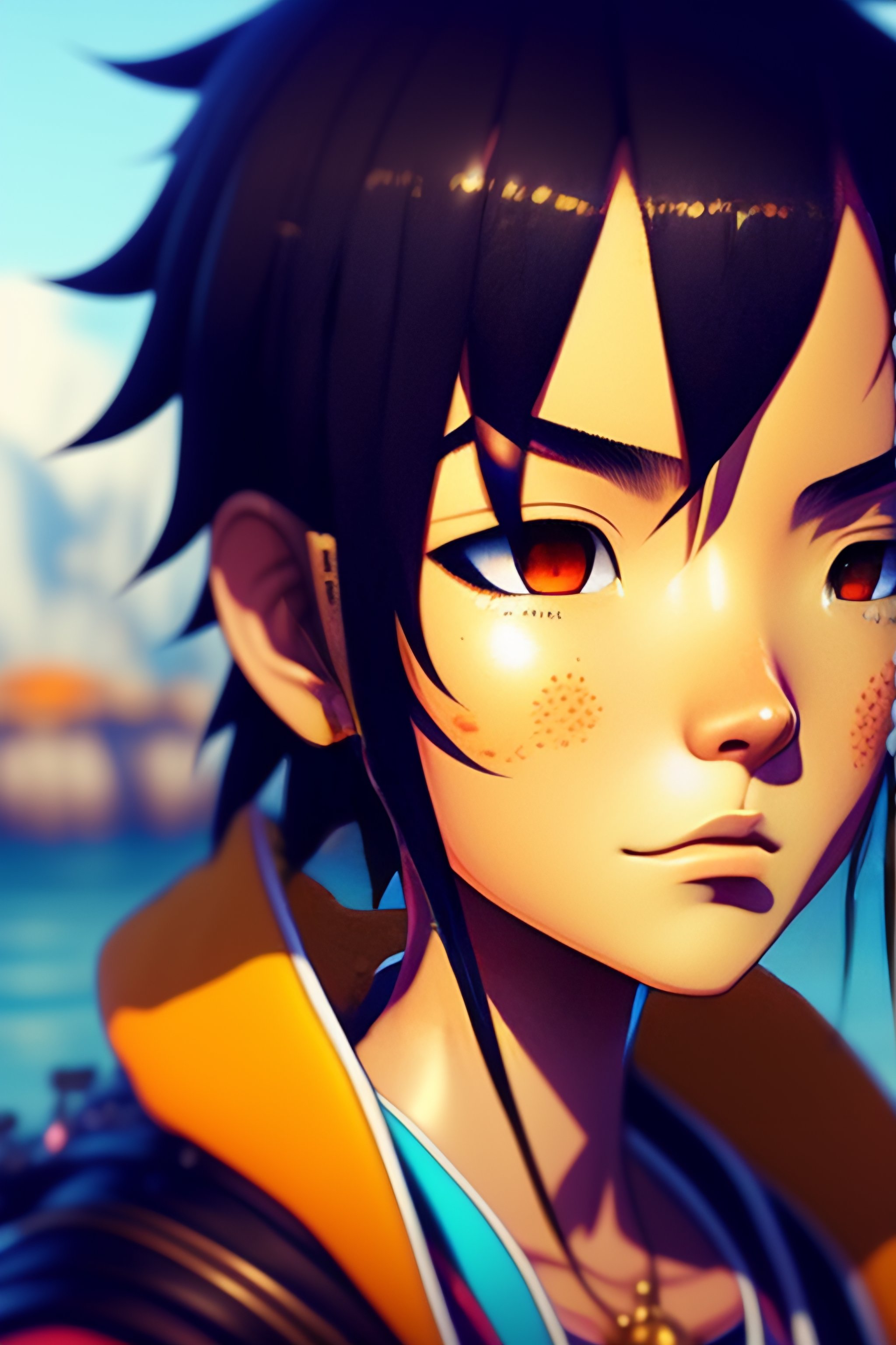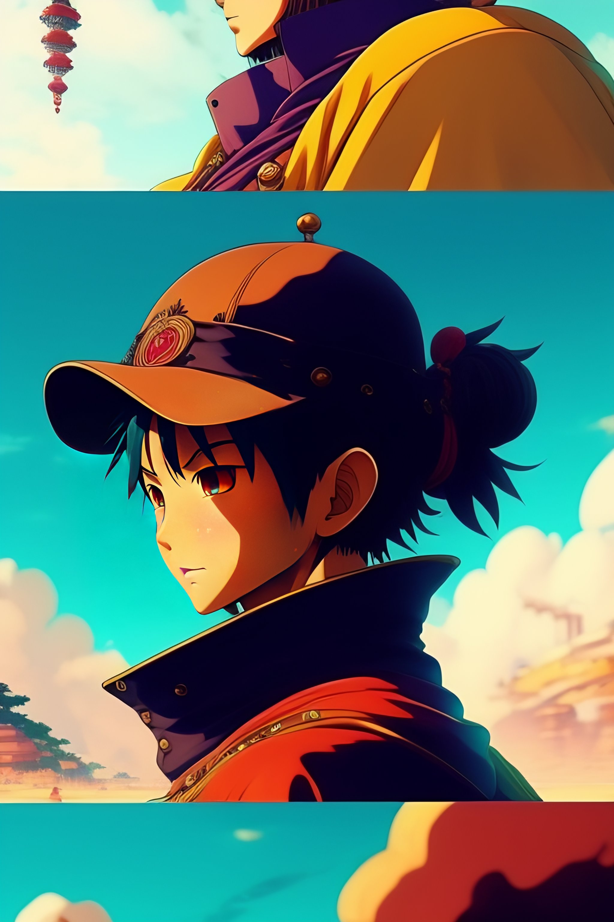 Luffy, wano kuni, eiichiro oda, studio ghibli, james gilleard, cyberpunk, 4k, vibrant colors, devinart, trending on artstation, low details