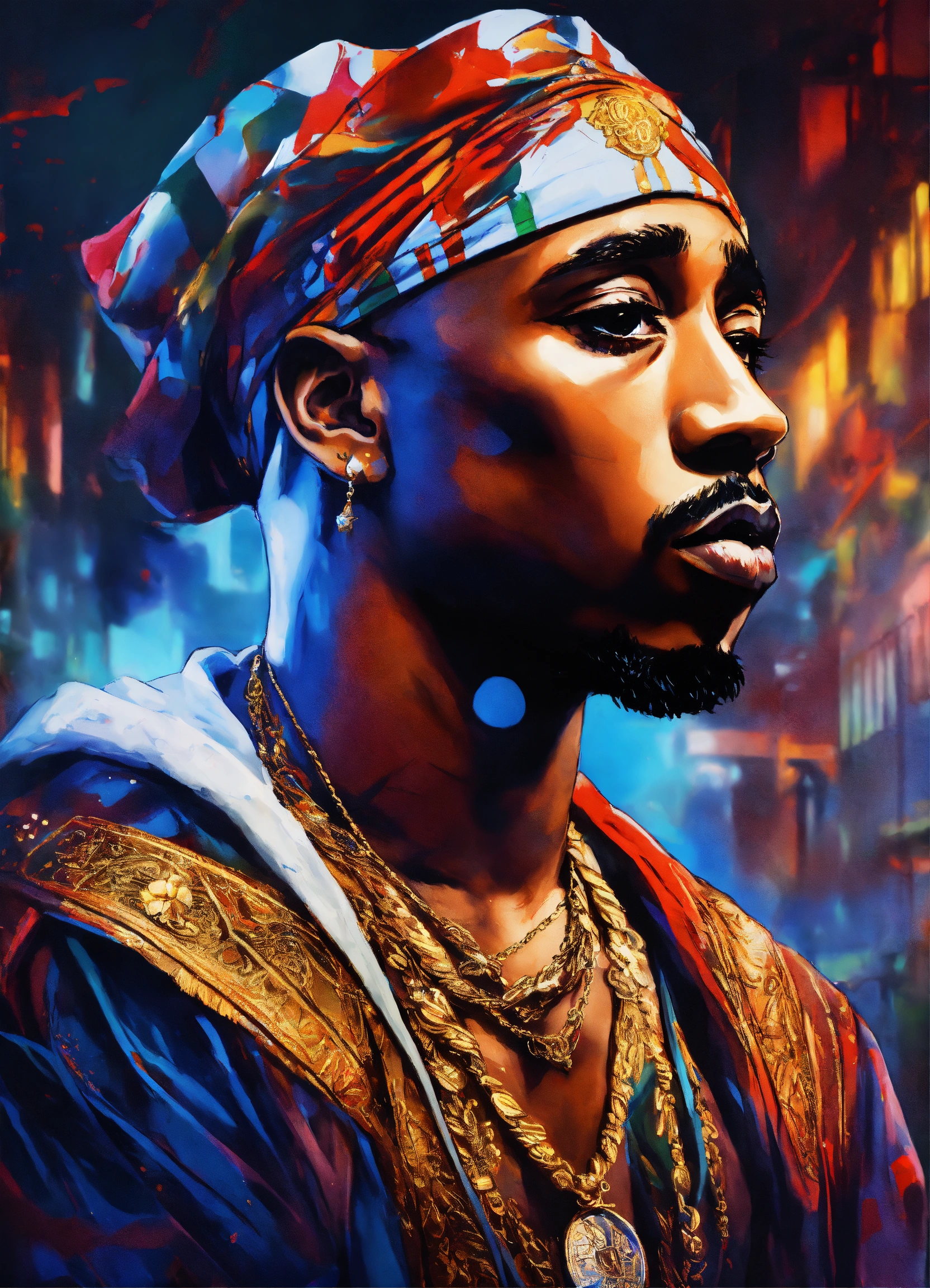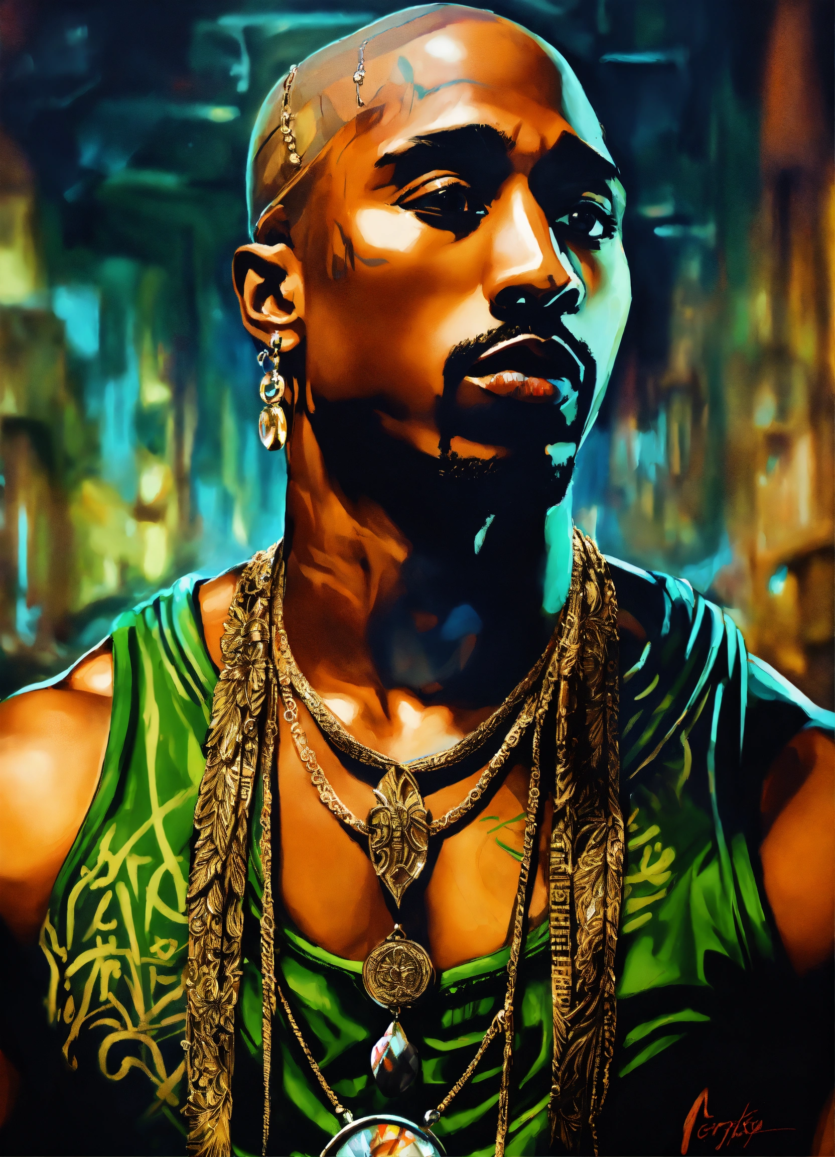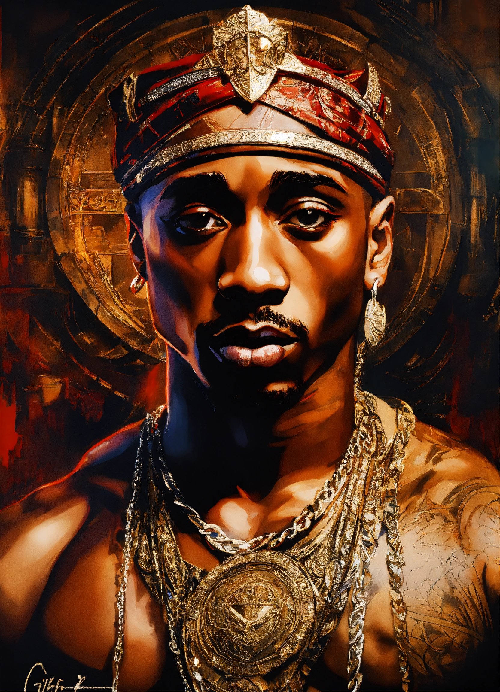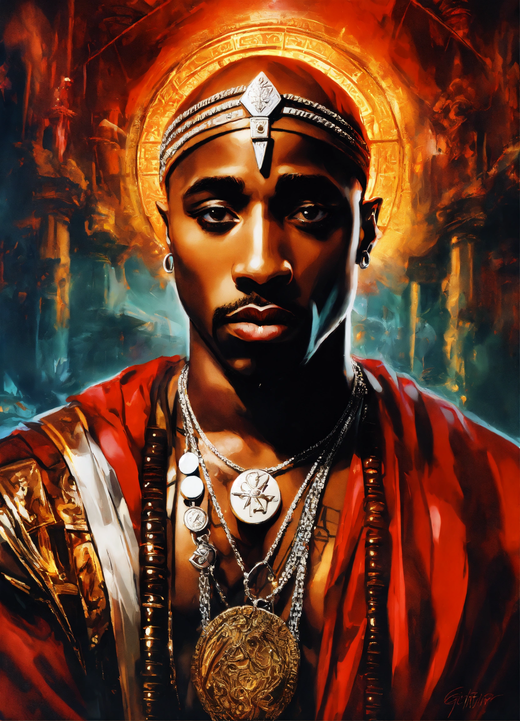 Abstract airbrush anime art of tupac shakur as julius caesar, 8k, stunning intricate details, by griffin one