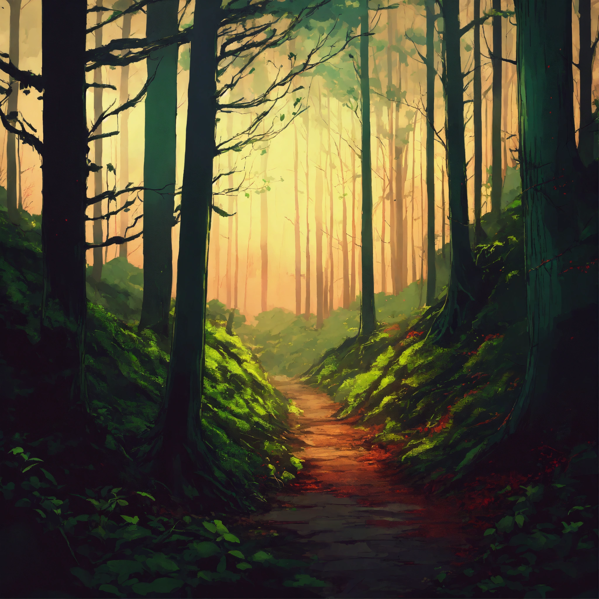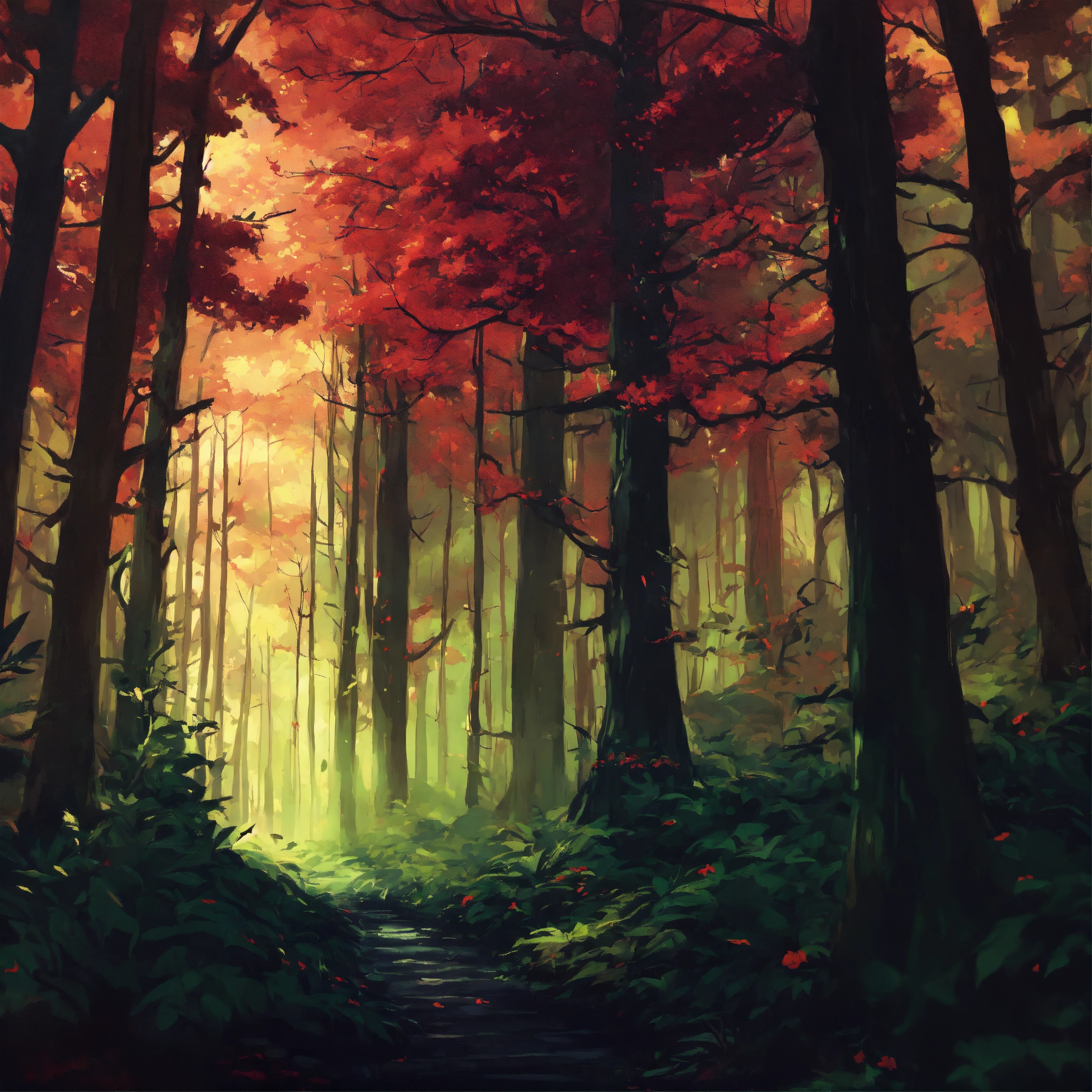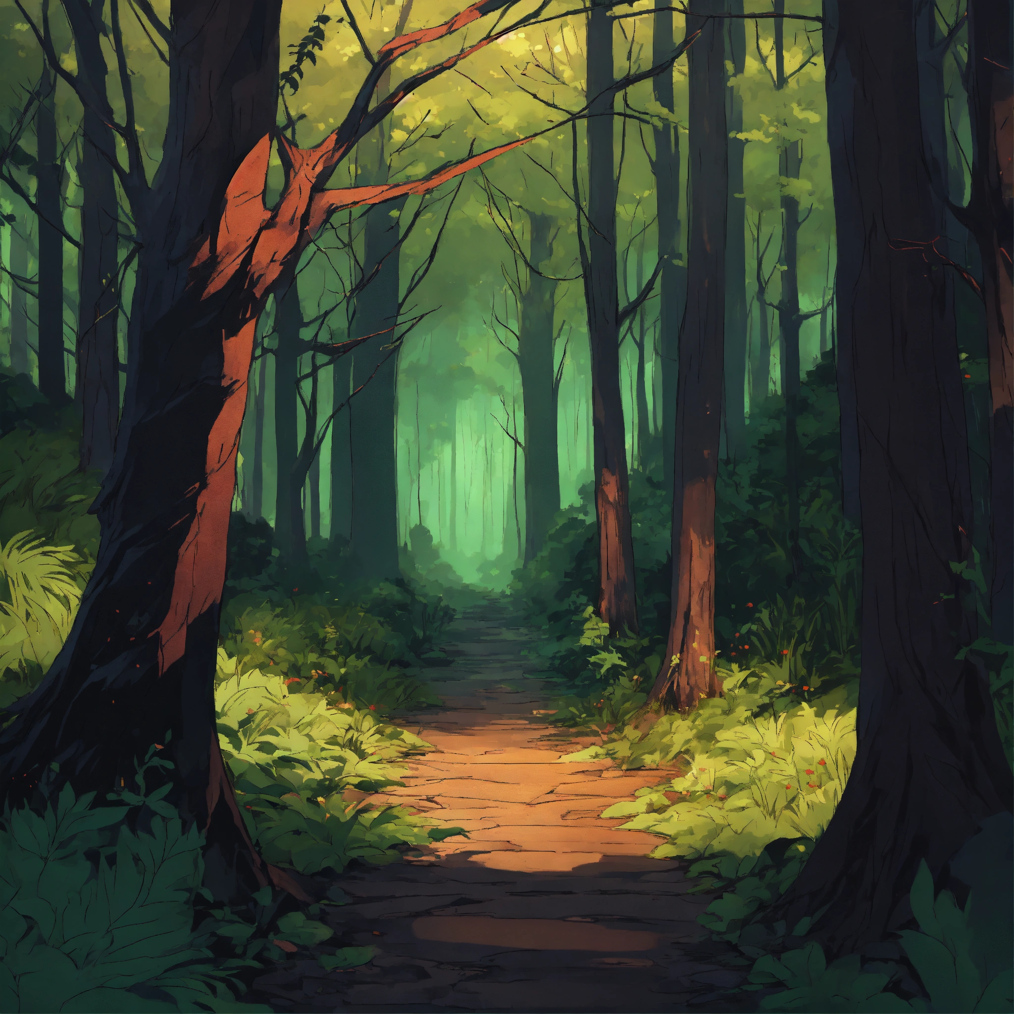 sinister in a forest. anime style.