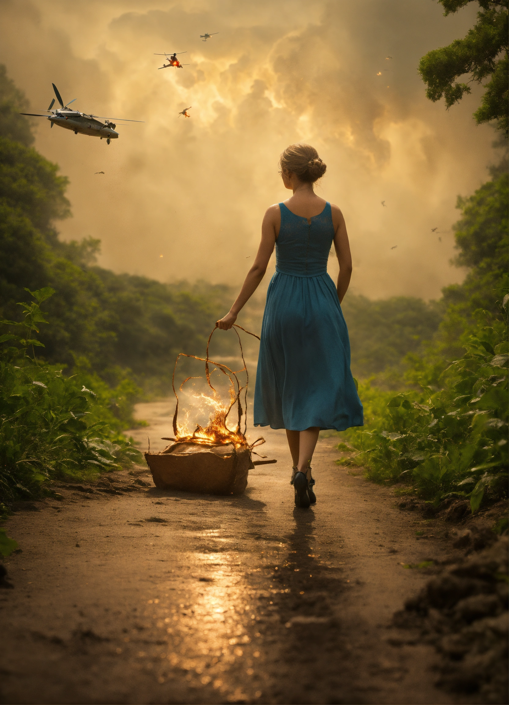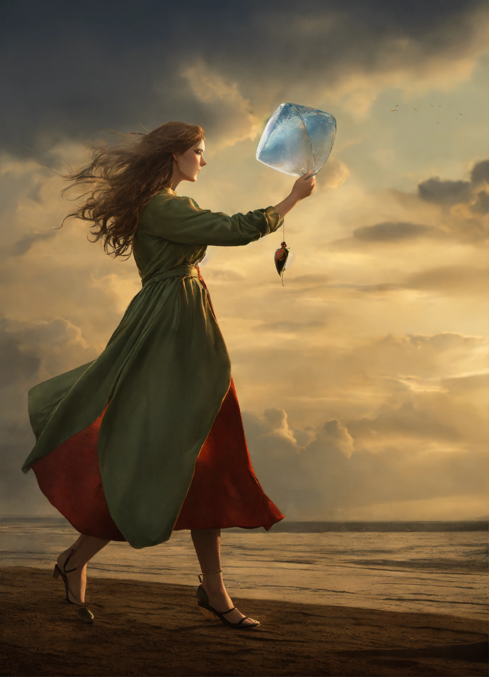 A fragile woman stops the tarnado with hand