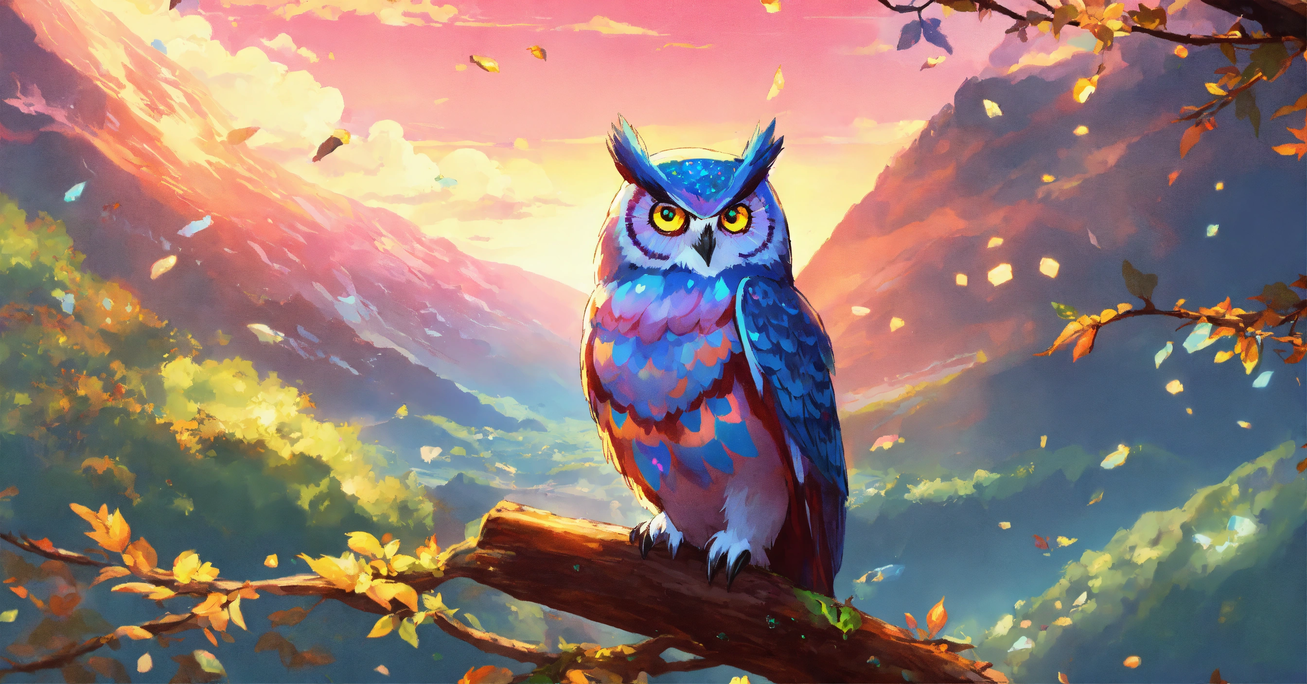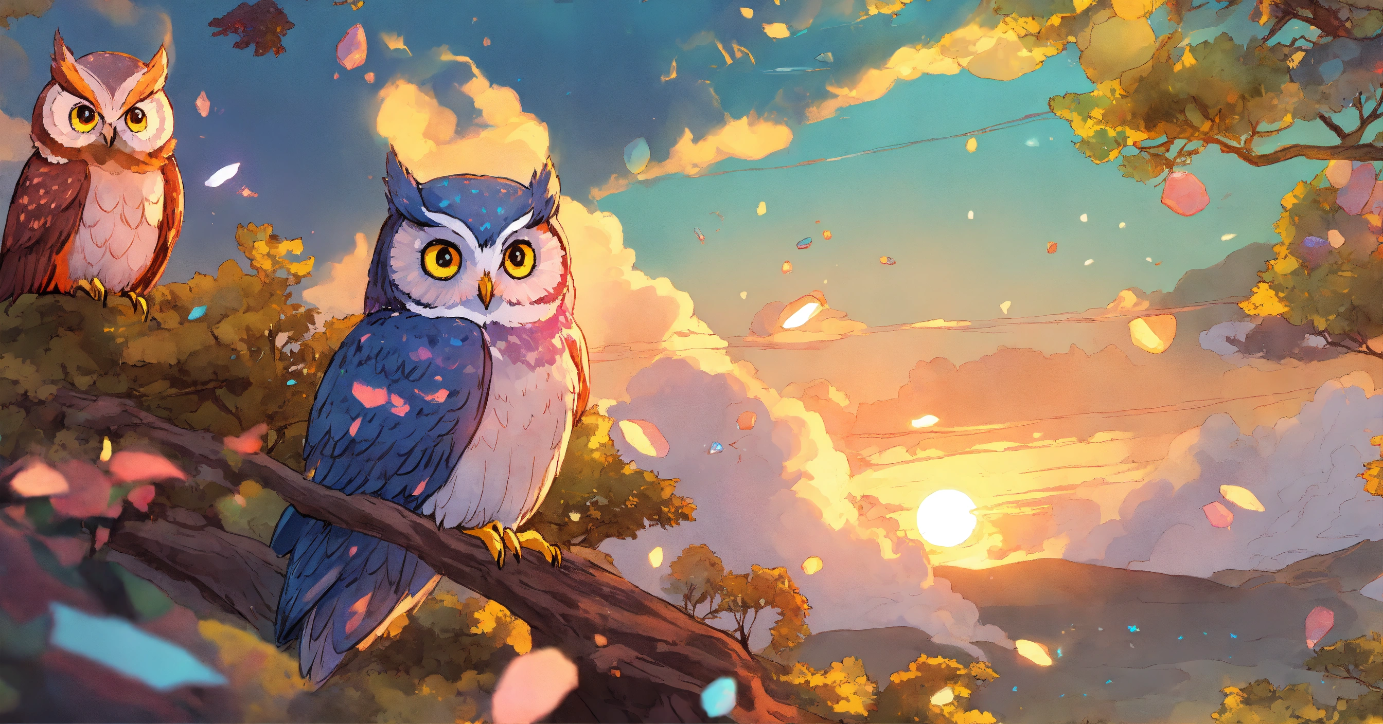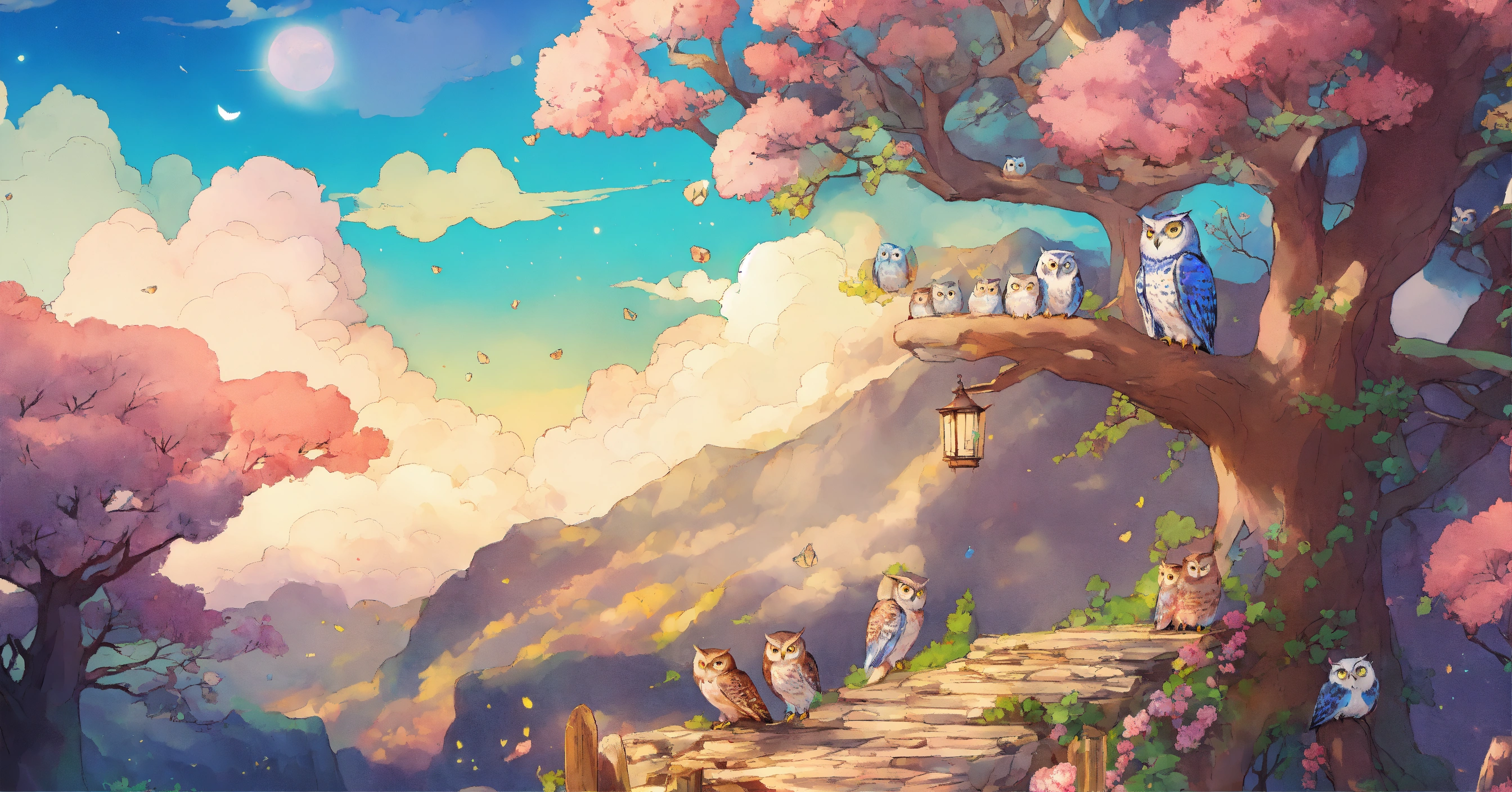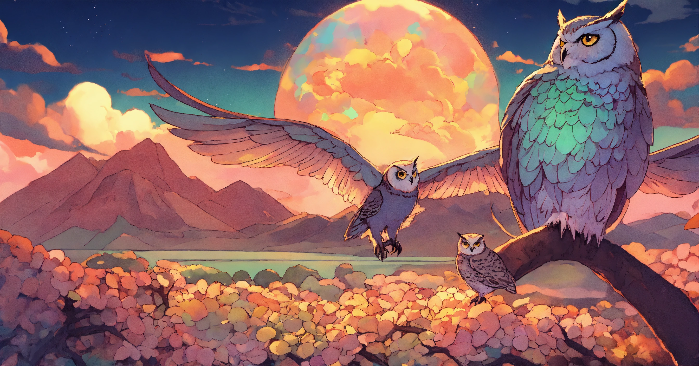 Opal stone color lots of owls illustration art