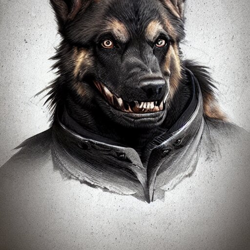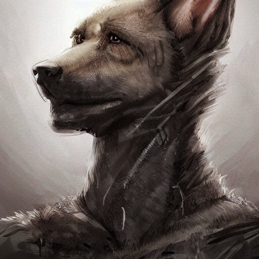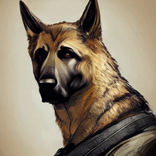 A wounded humanoid german shepherd beast - man in military style, sitting on the bed, highly detailed portrait, digital painting, artstation, concept art, smooth, sharp foccus ilustration, artstation