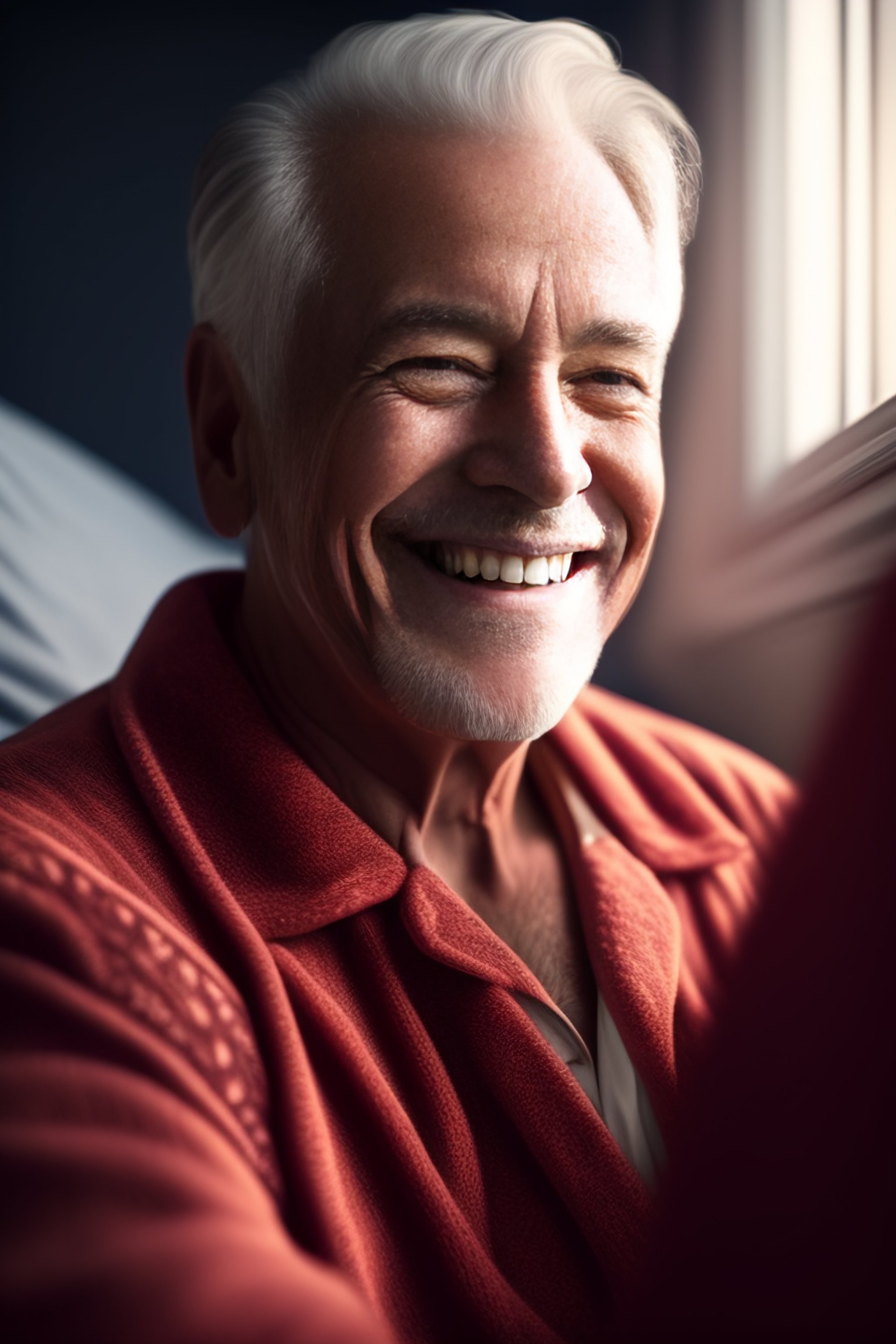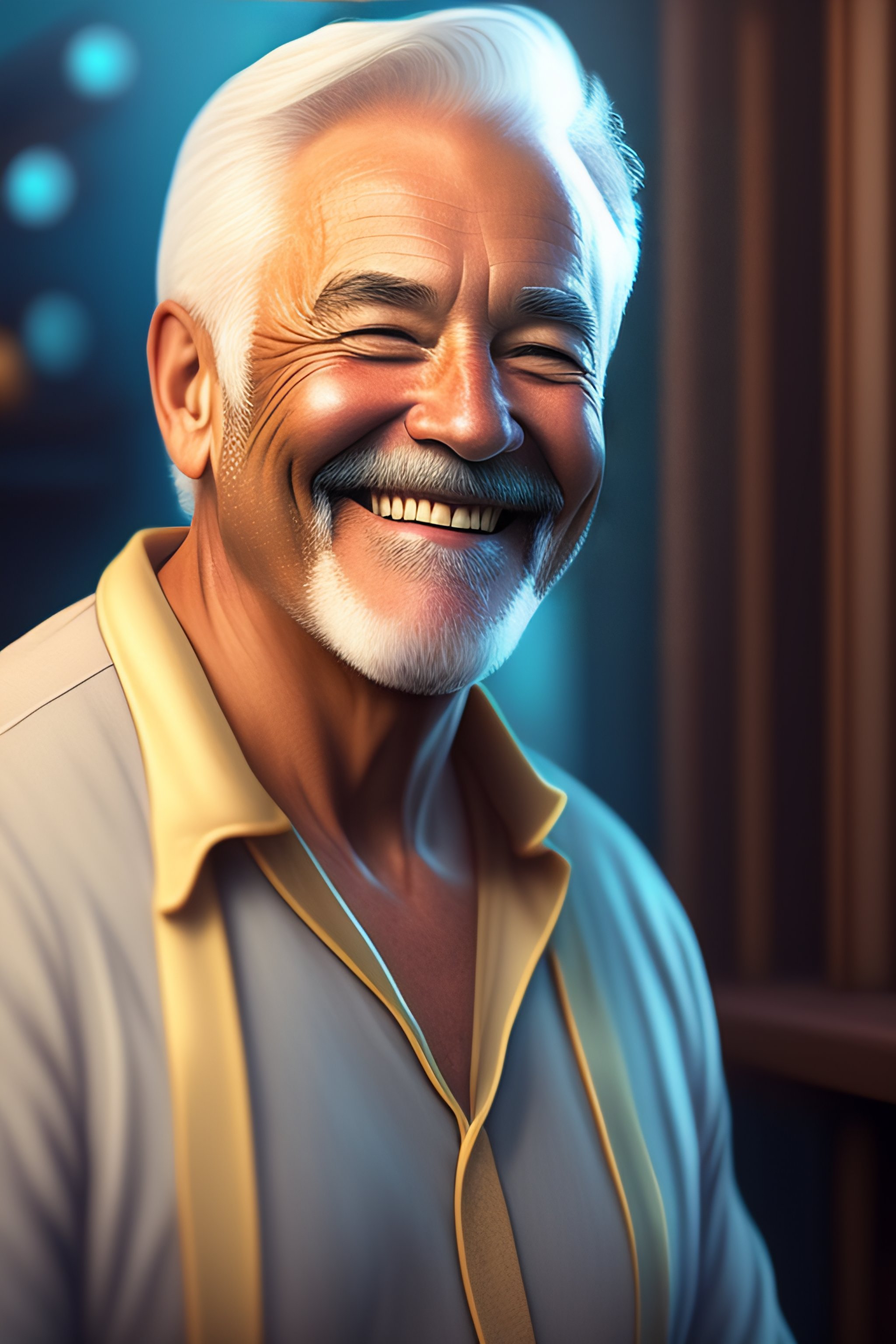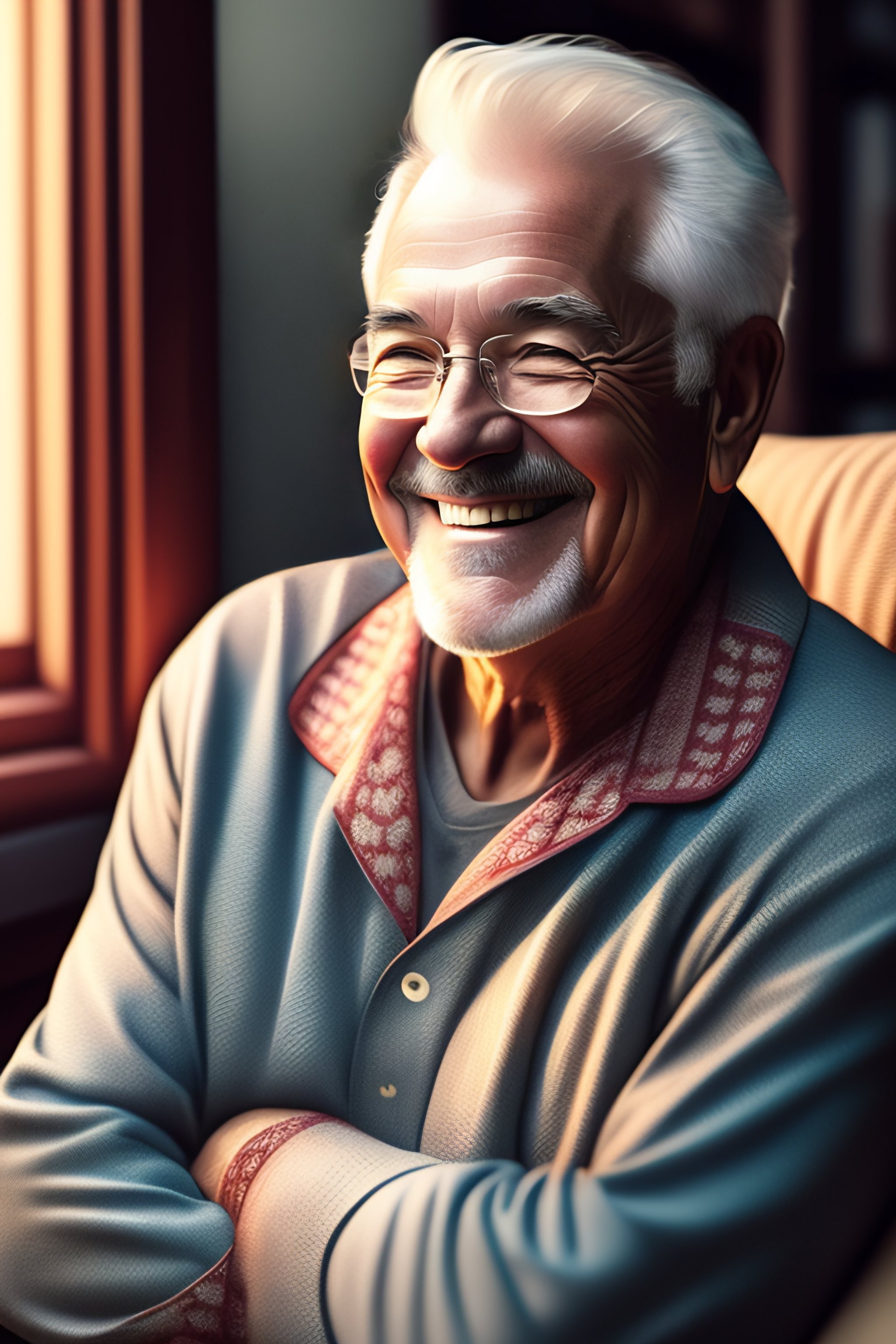 Comic book art of old guy smiling in pyjamas, sharp focus, intricate, cell shading, unreal engine, hard edge