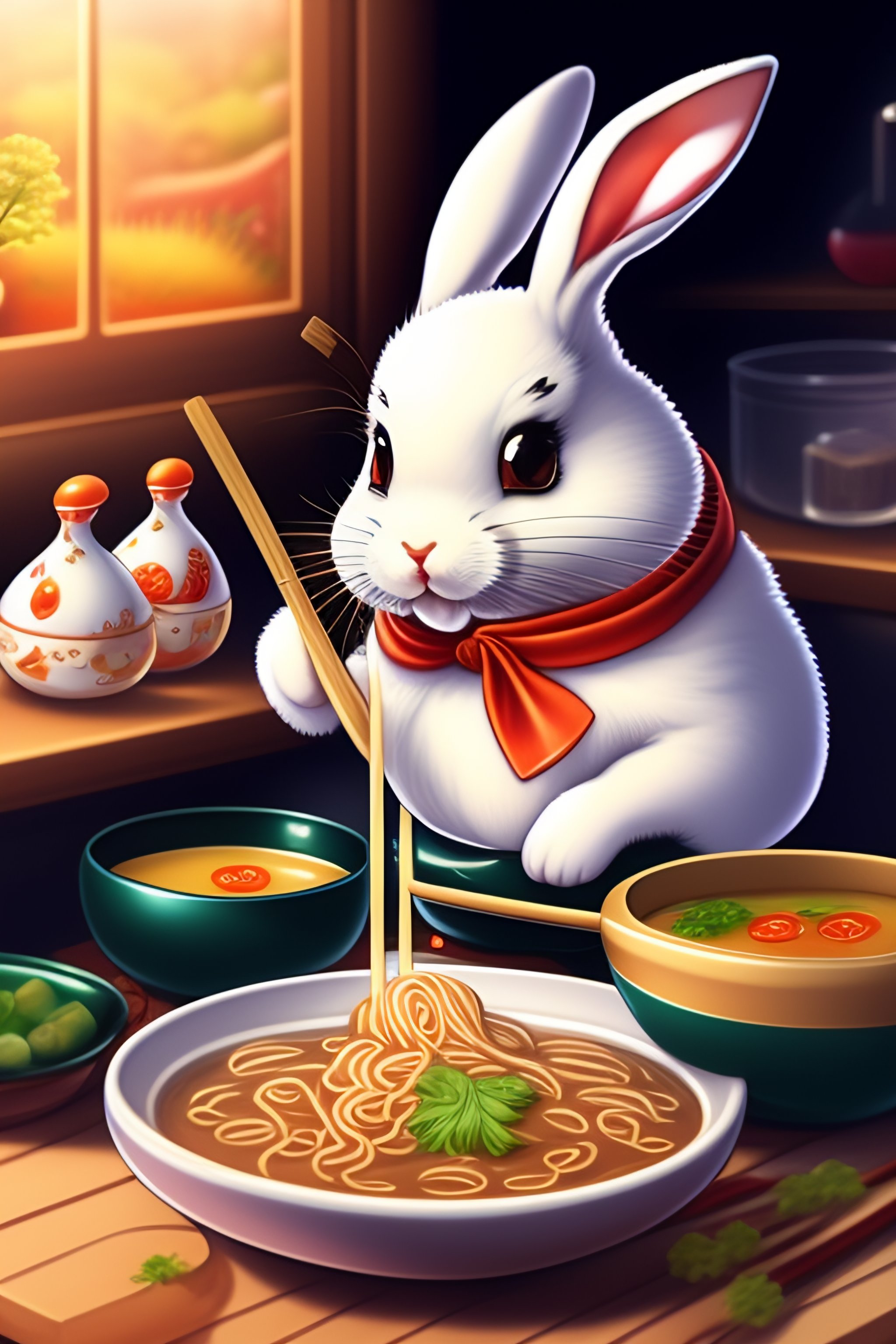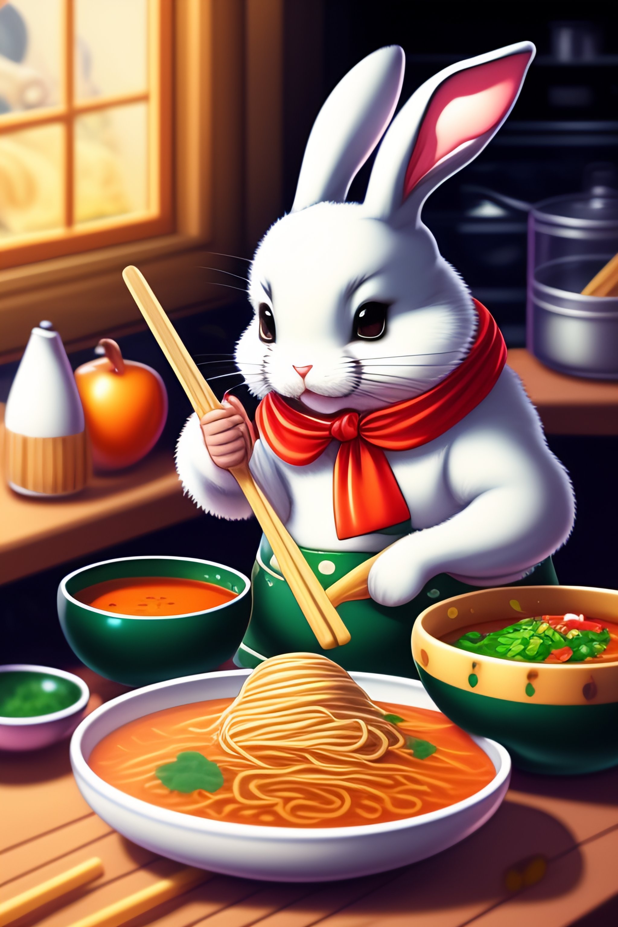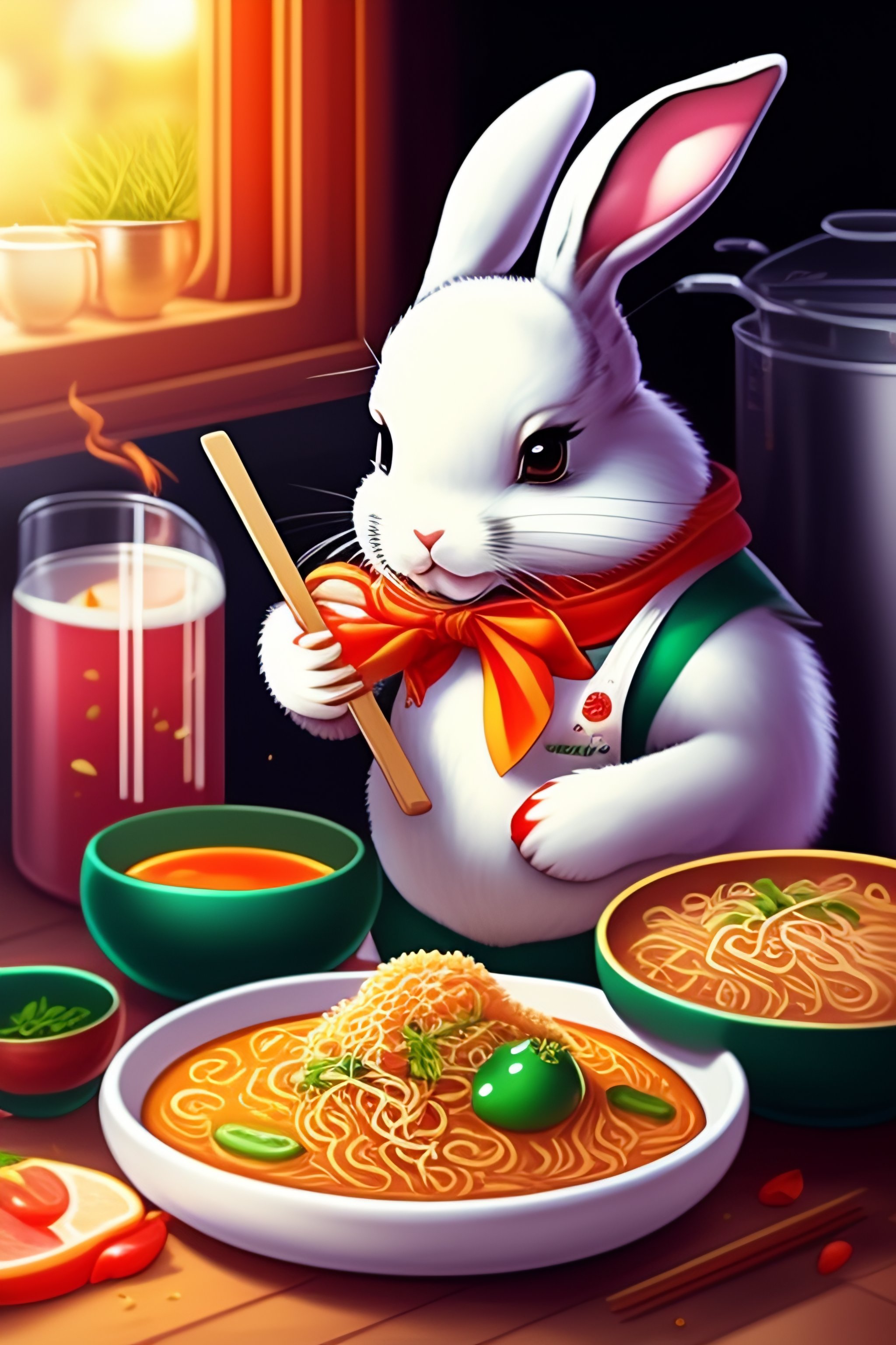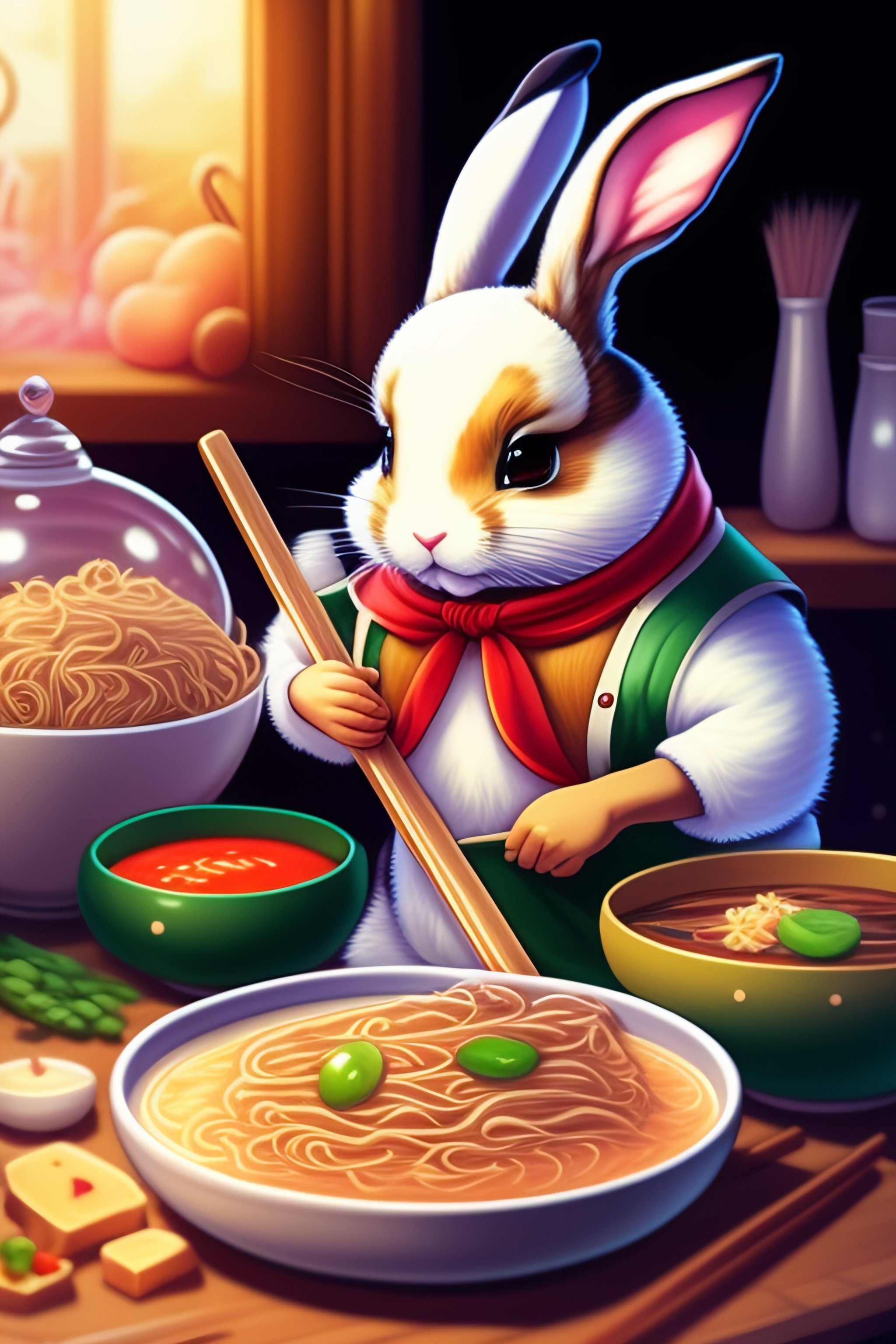 Bunny chef making ramen