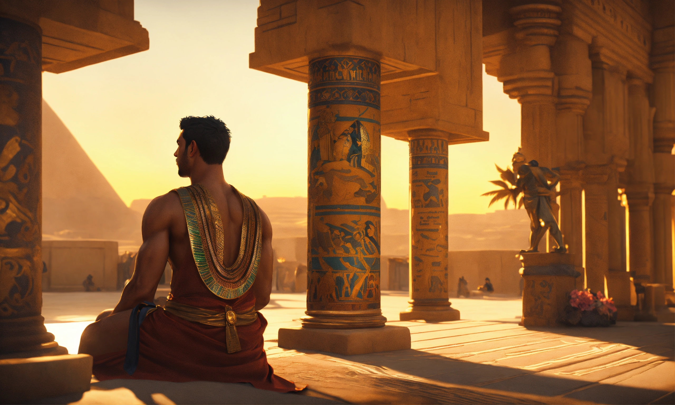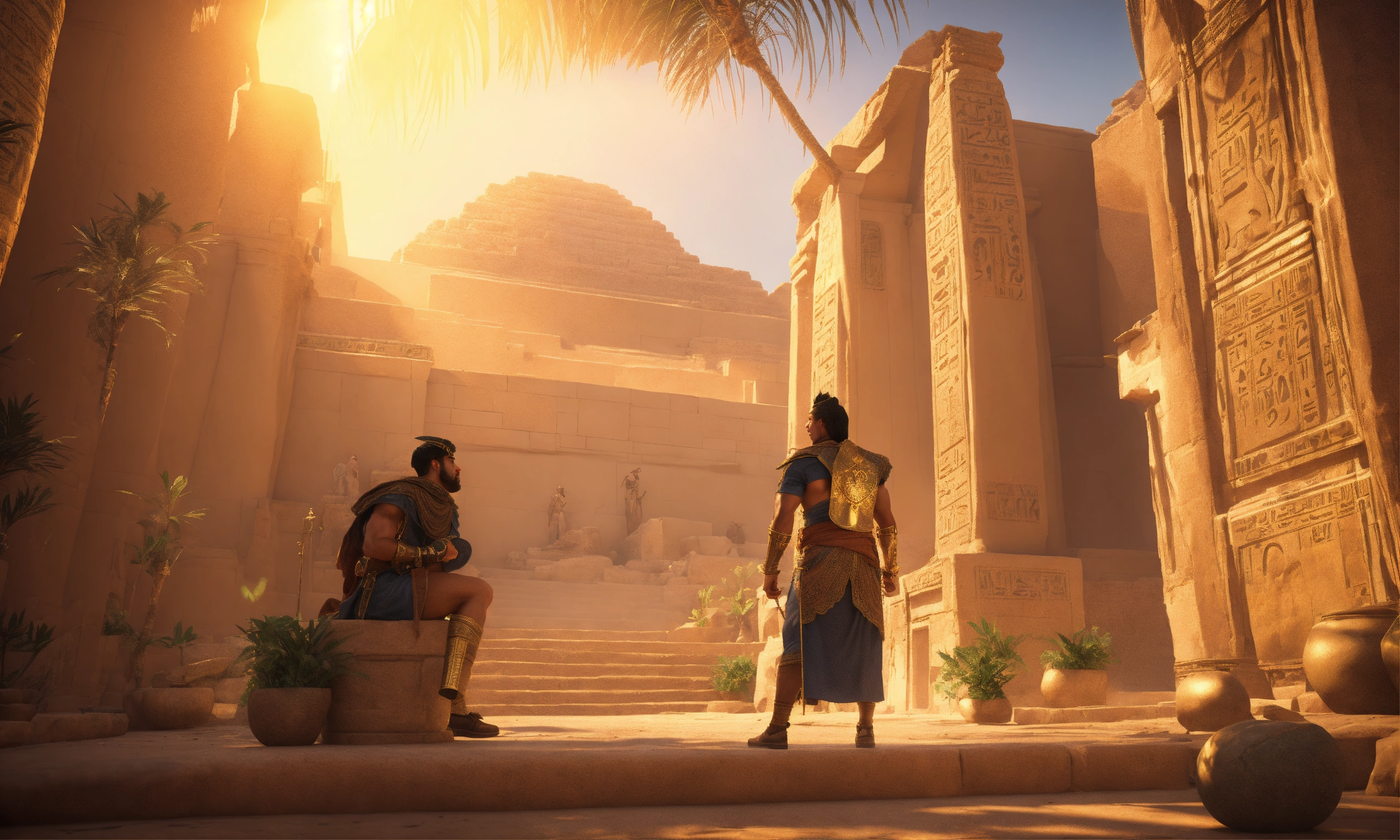Moises and rameses strong young men in egypt, cinematic lighting, complex, elegant, super highly detailed, art station, concept art, smooth, sharp focus, no blur, no dof, extreme illustration, unreal engine 5, photorealism, hd quality, resolution 8k, cinema 4d, 3d, beautiful, delicate, art by artgerm and greg rutkowski and alphonse mucha and loish and wlop