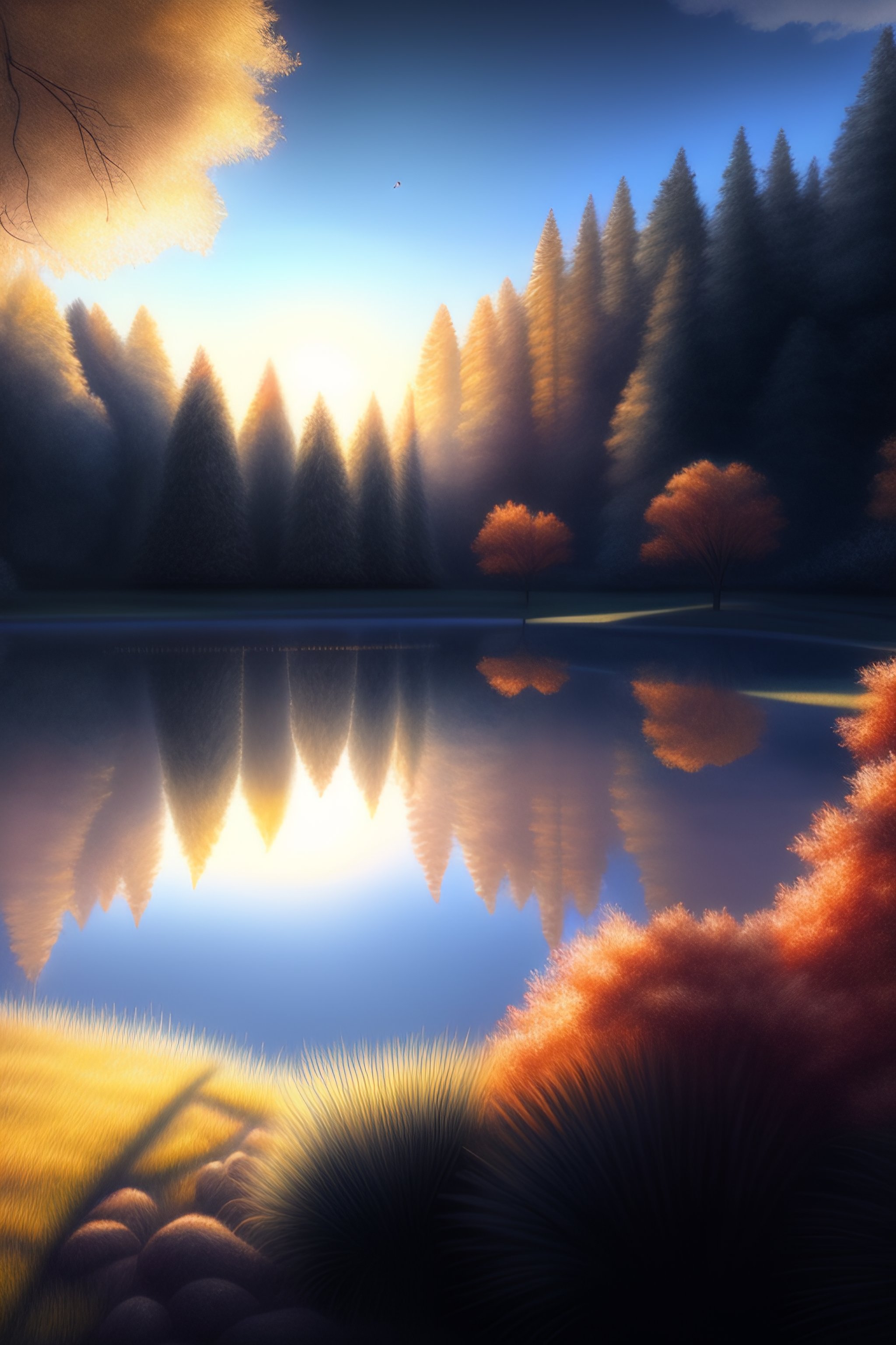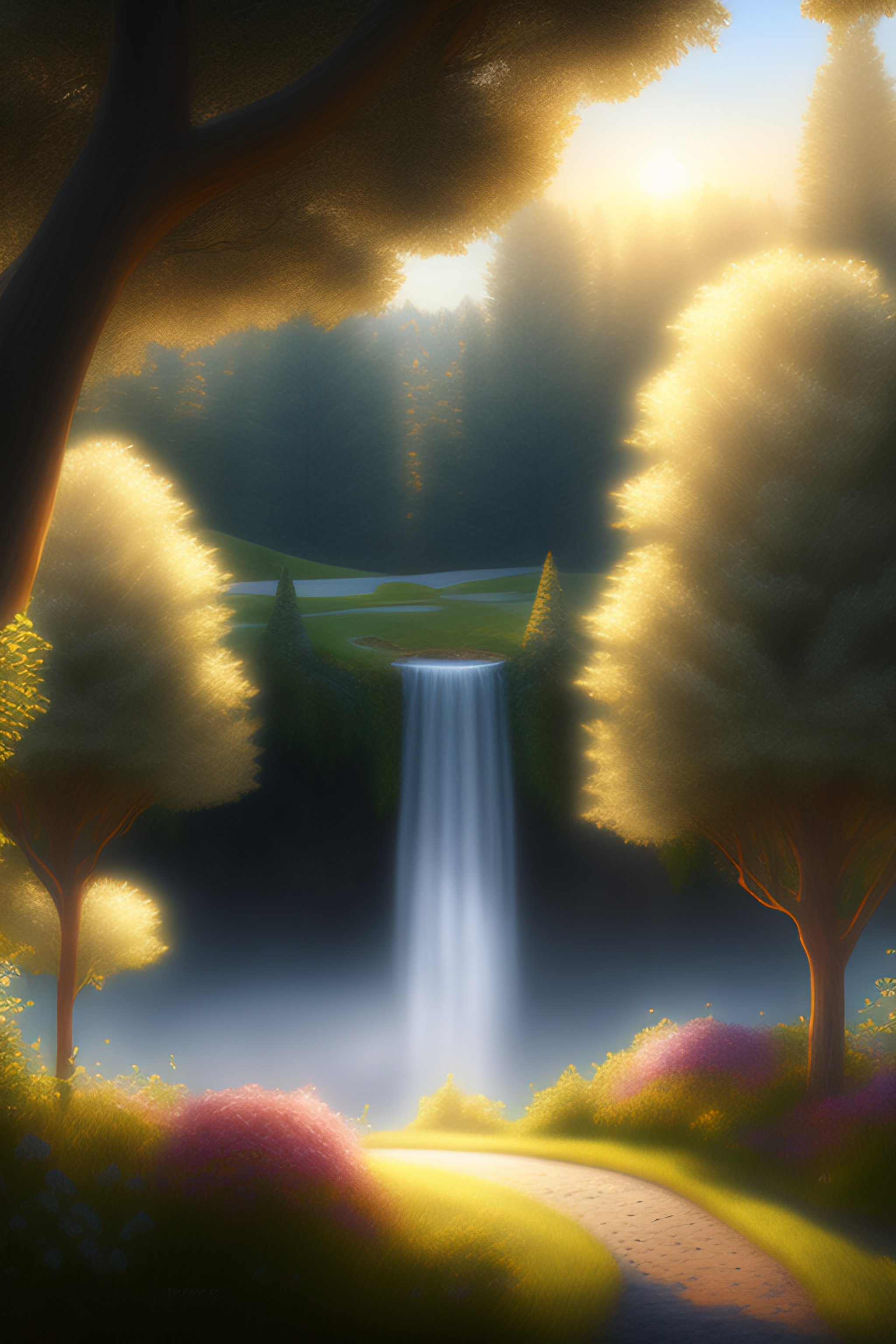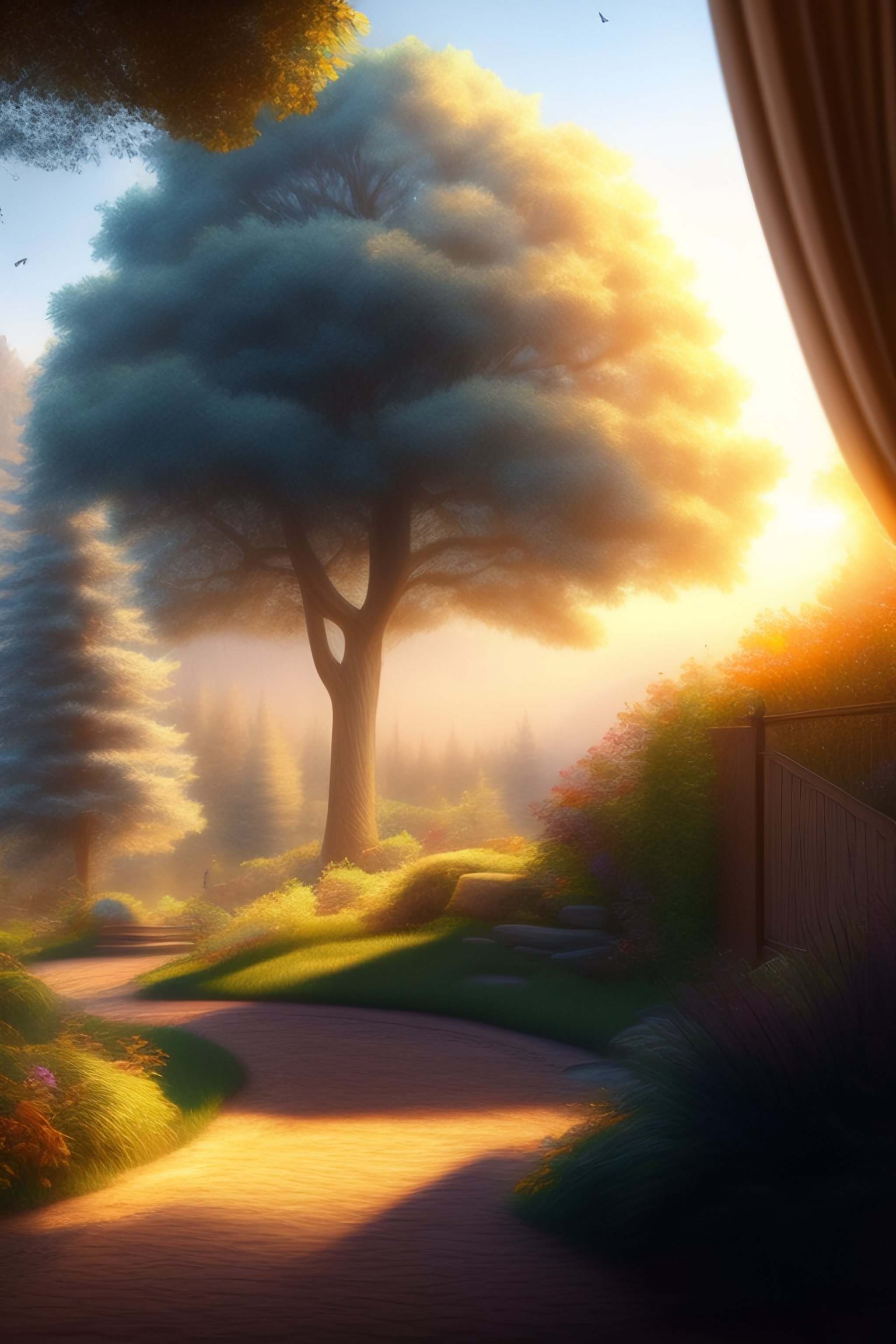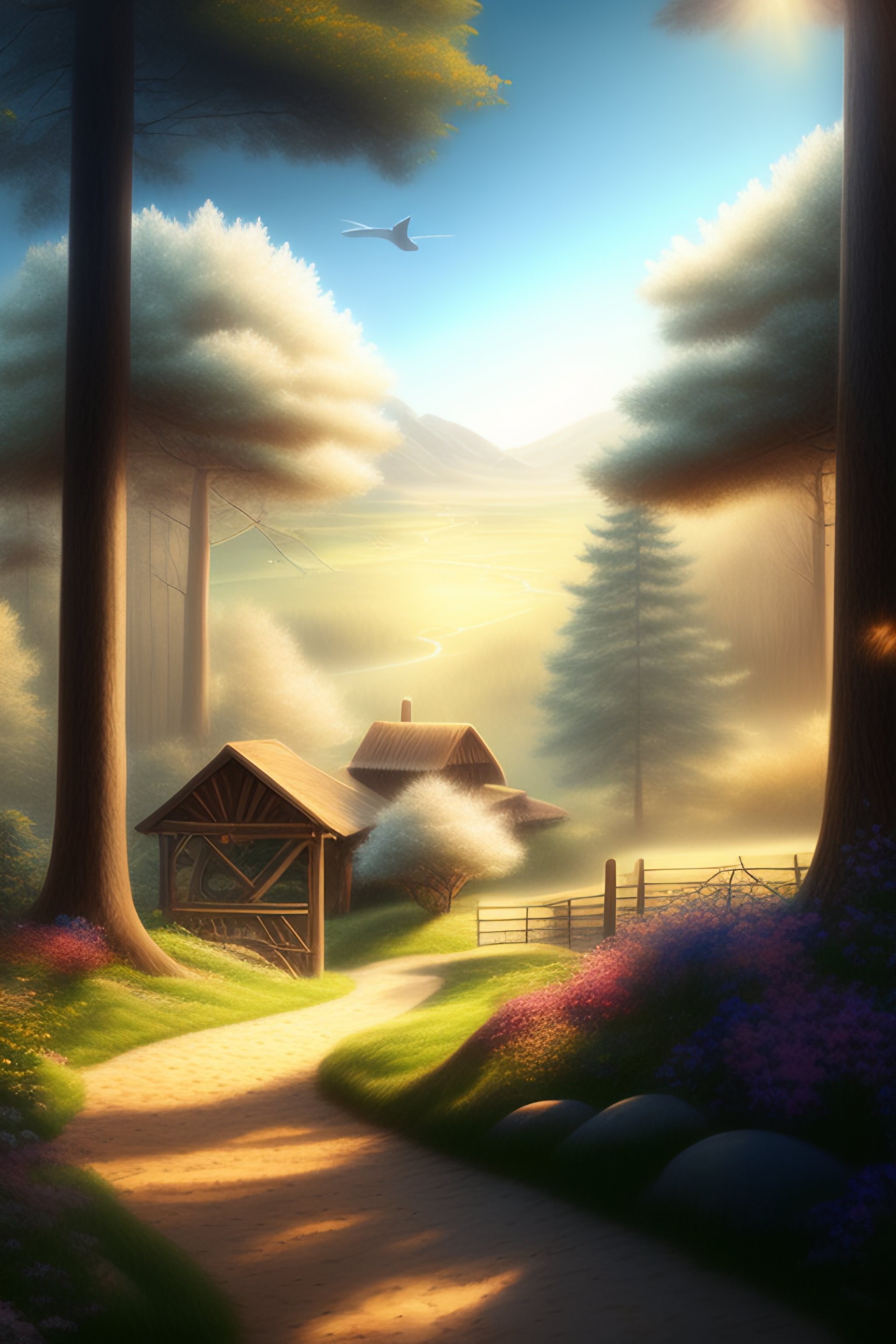 A realistic drawing of heavens scenery, warm light, intimate detail, angels around, shade, trees, animals, graphic design, rendered, extra creative, very detailed, clear image