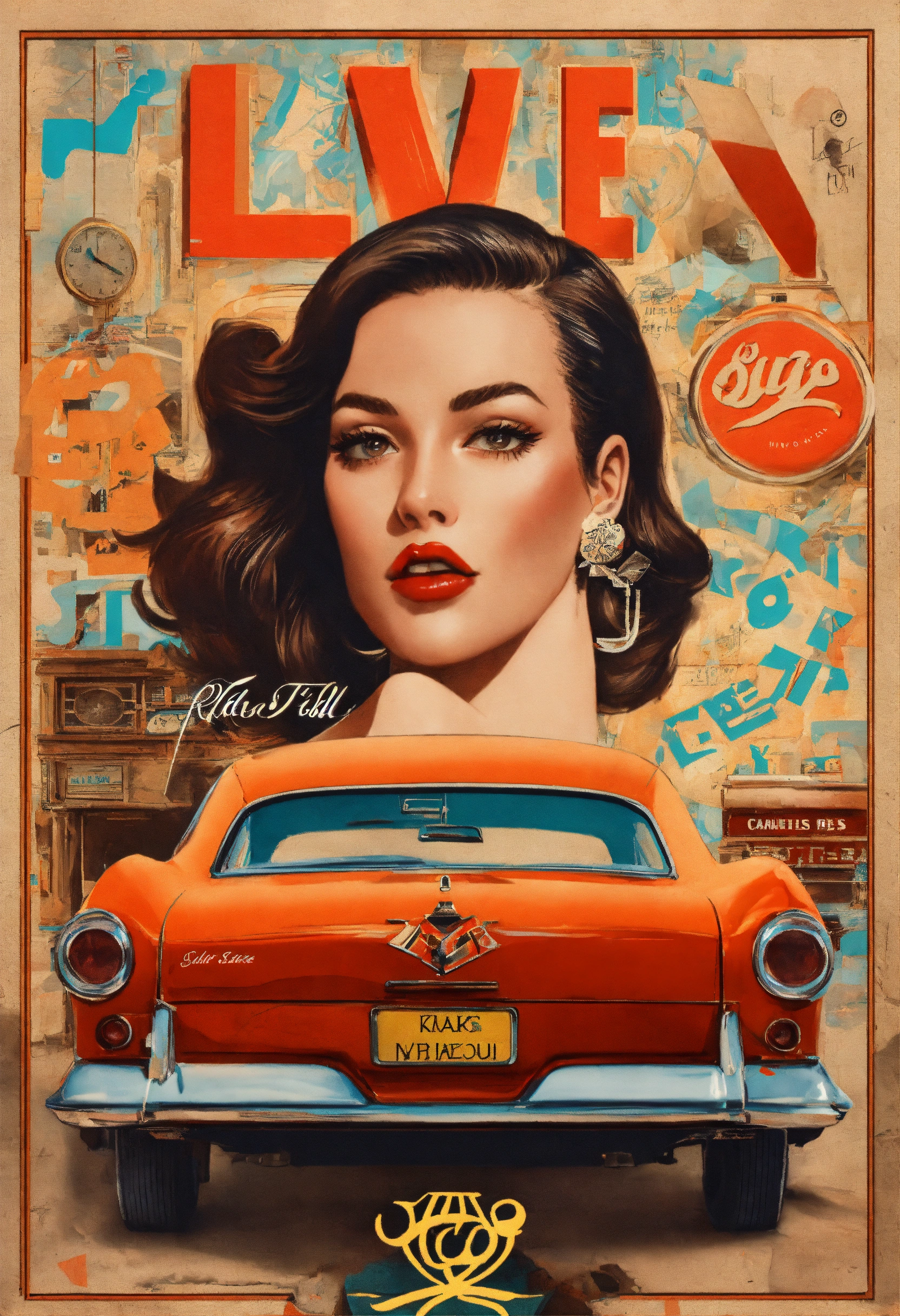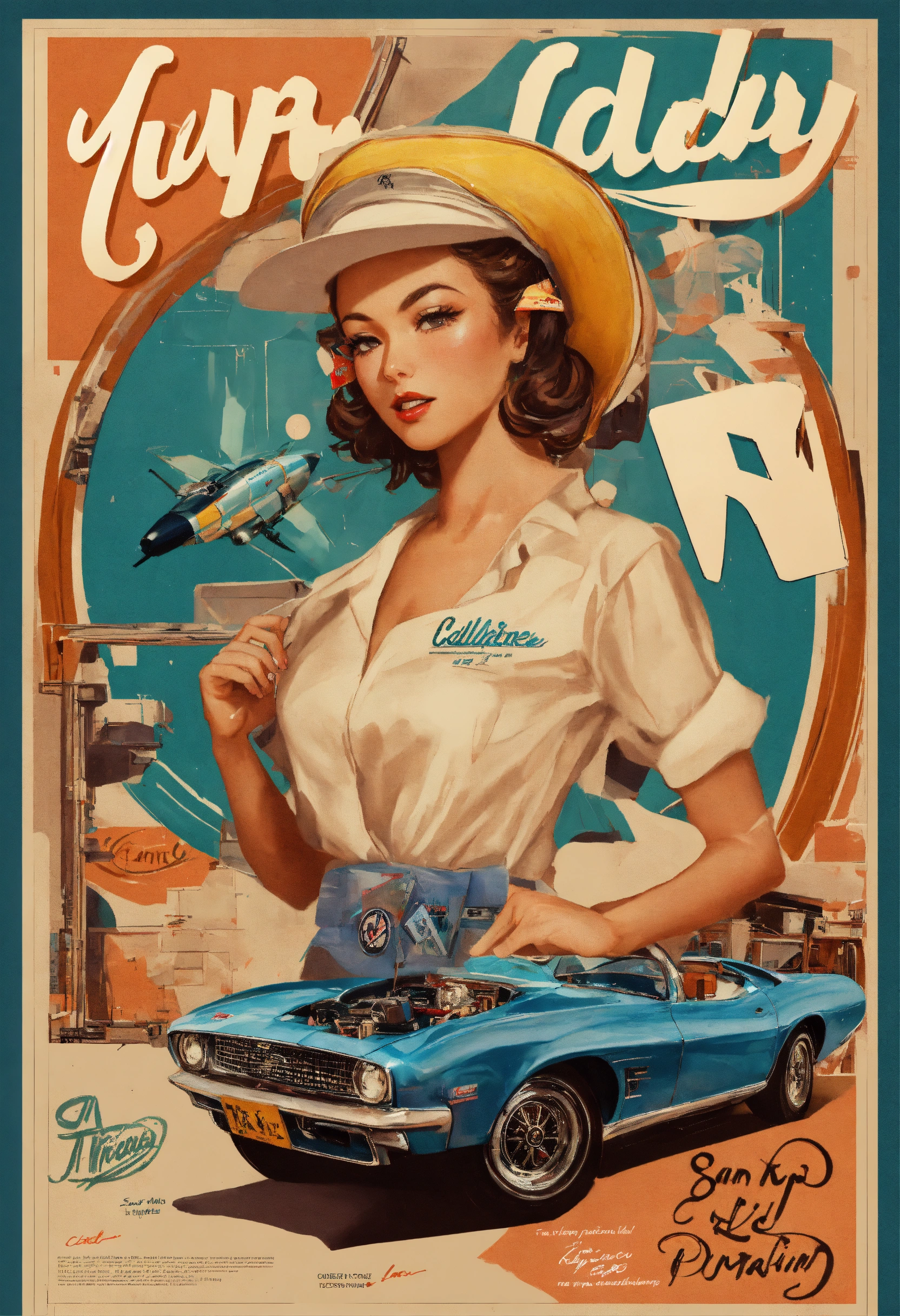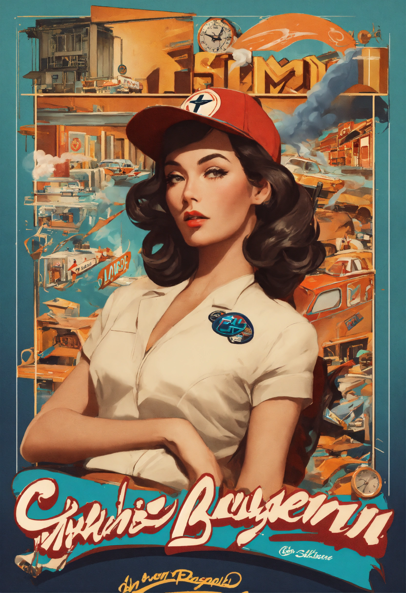 Pinups model, uap, ((collage of letters)), future|nostalgic branding, [cartoon]_smoke, knolling layout, logo concept sheet, time travel, multiple looks, letter t and b, “traybien” lettering, script, san serif, retro sticker, vintage 🛸|racing aesthetic, breeze, three dimensional expression of 2d classic layouts, modern graffiti calligraphic modern (san-serif), print and scripts, your my lady