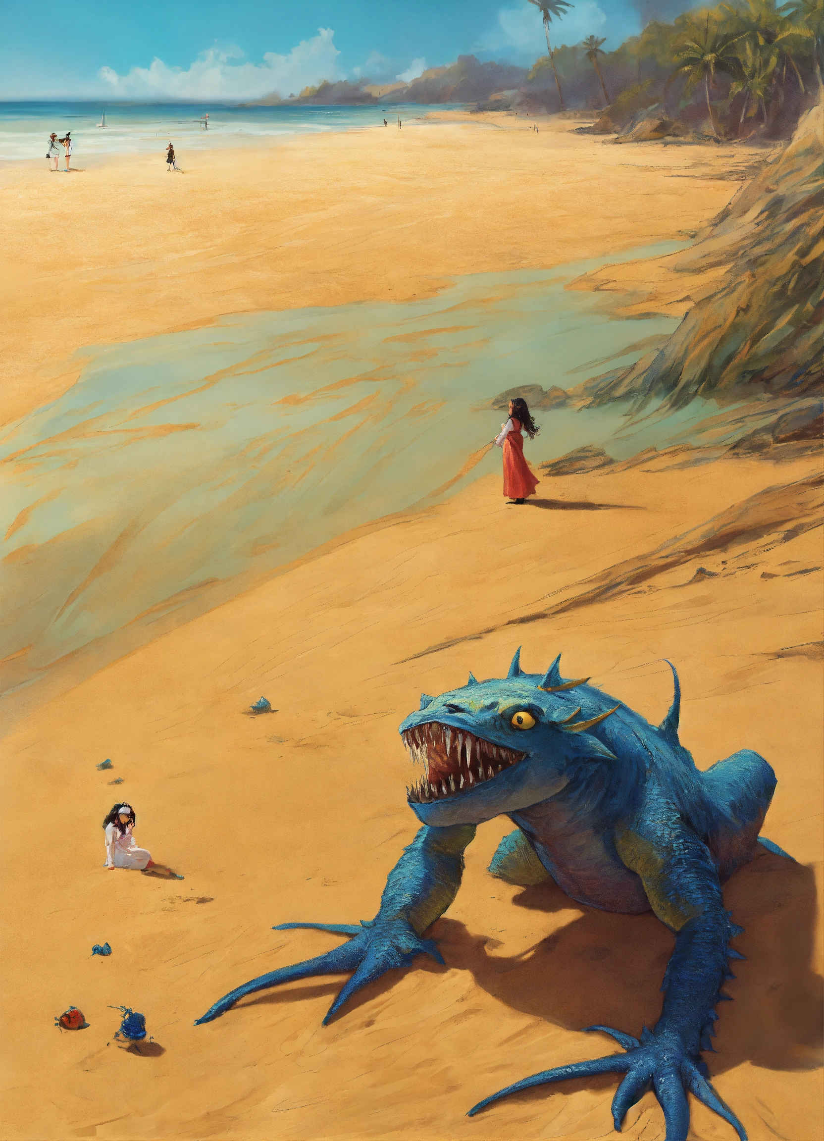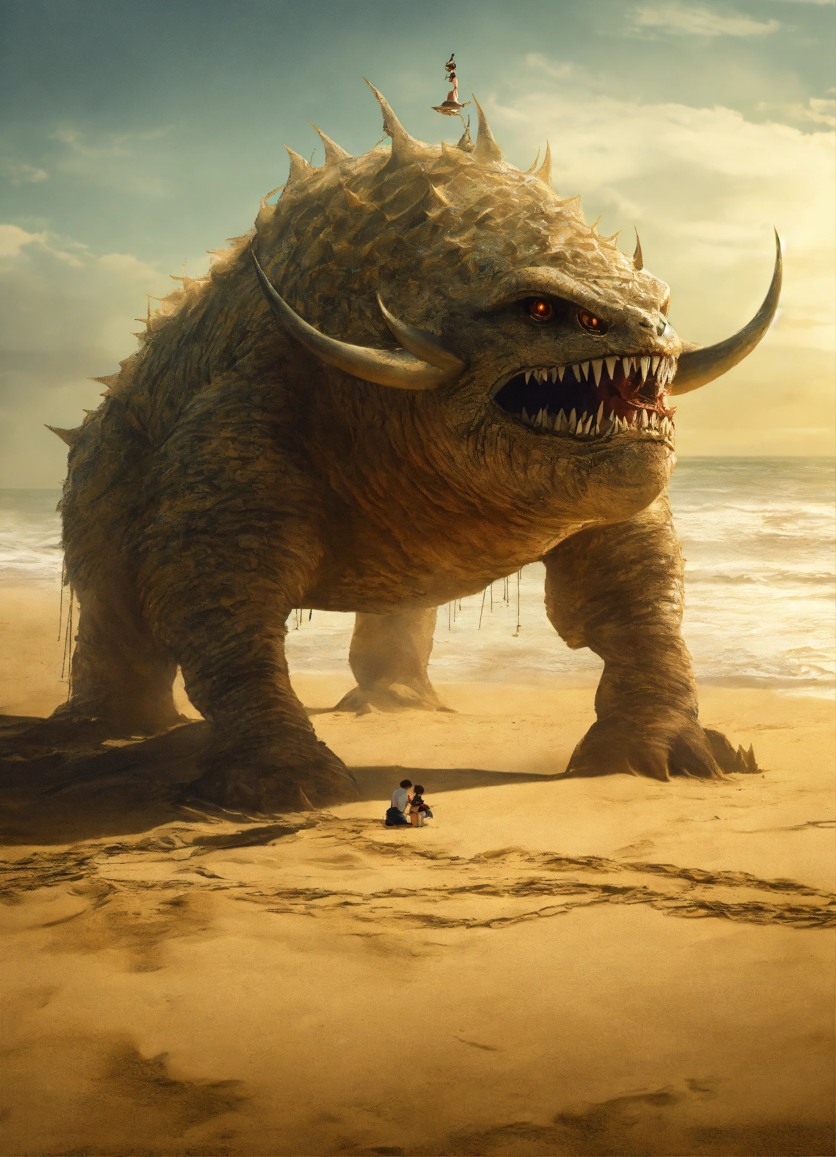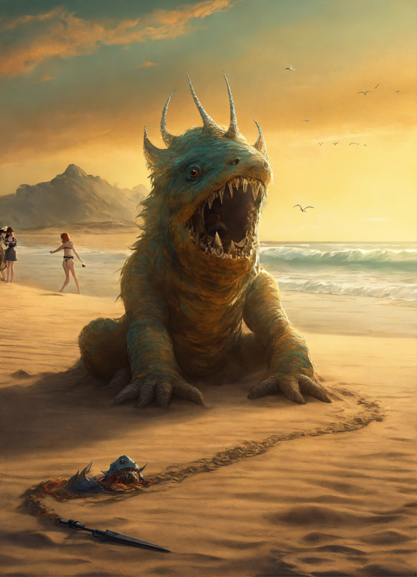 A monster under the sand on a beach, using the damsel as a decoy to become a part of 'her' and draw in unwitting prey.