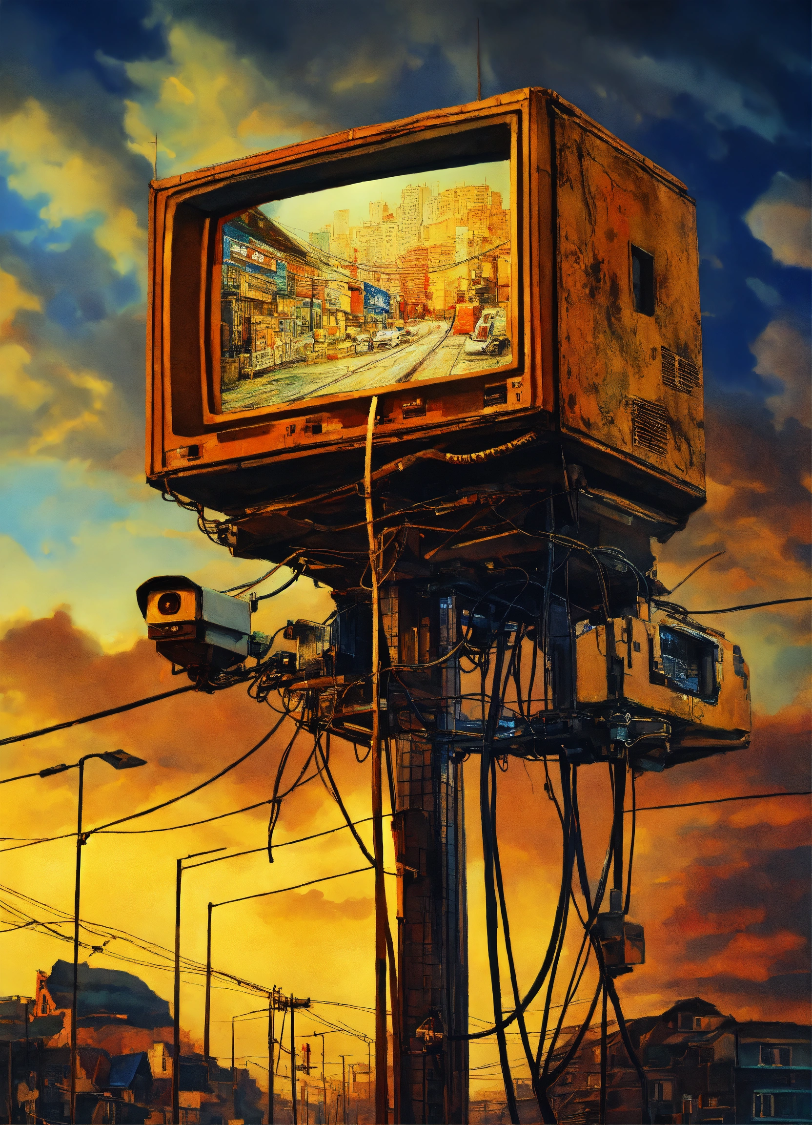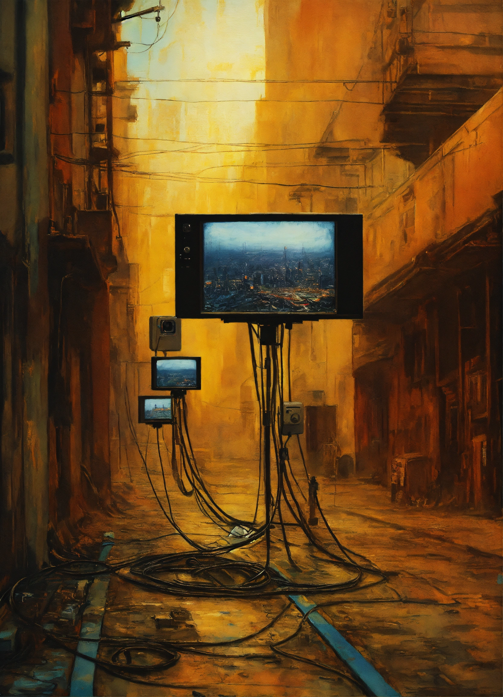 Masterpiece fine art photography about naive post internet cybernetic cctv cables dystopian painting 16k